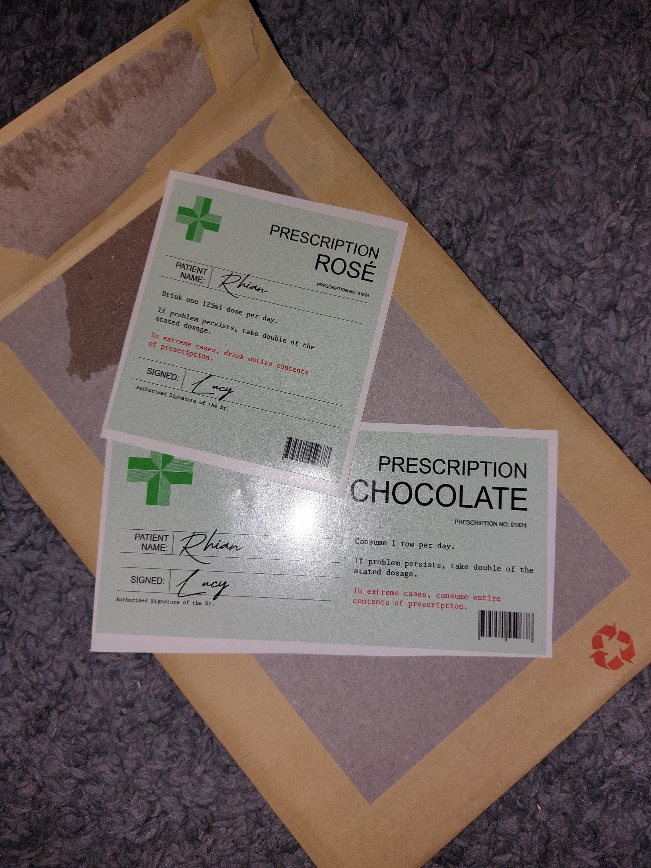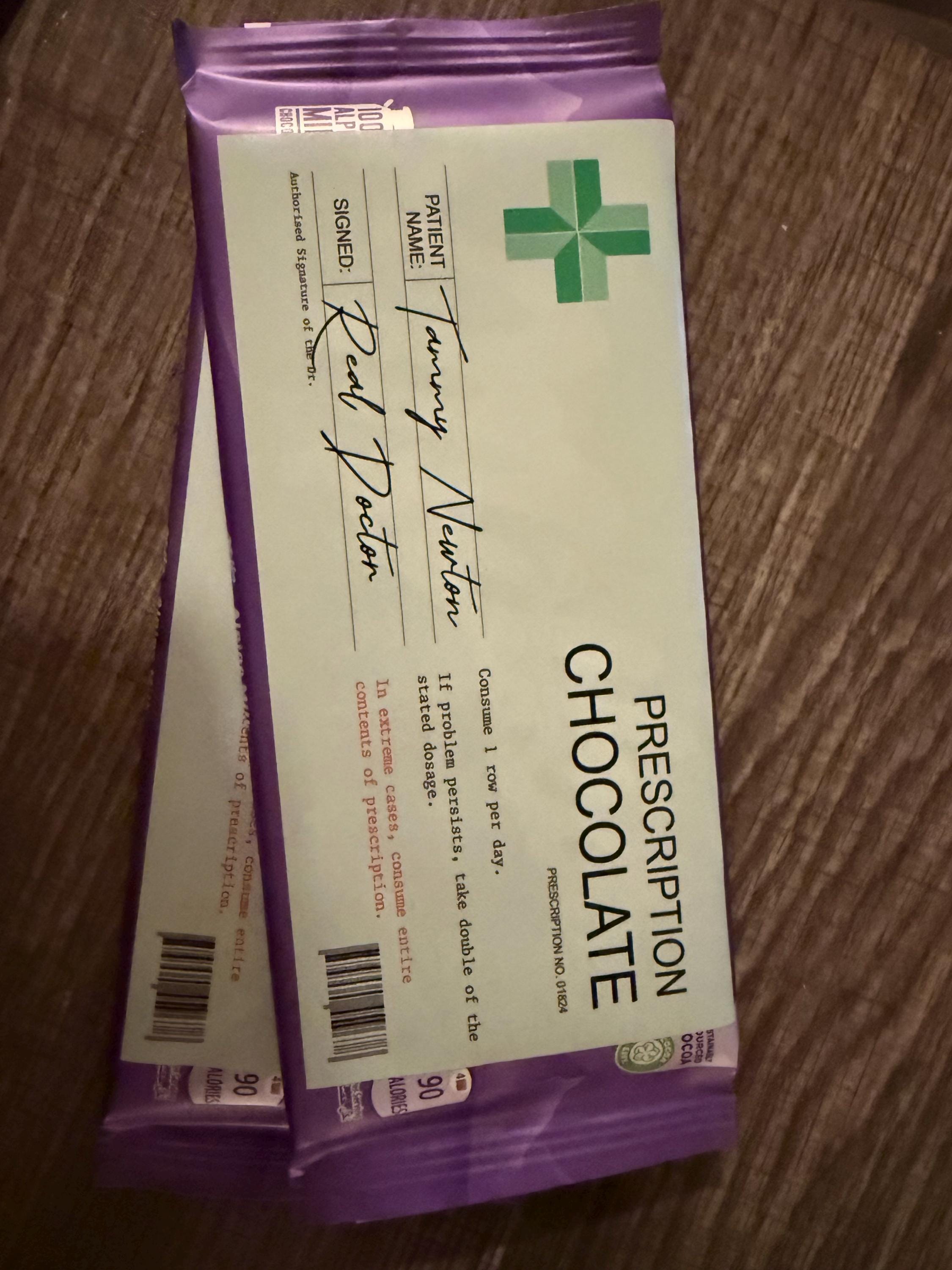 1x Personalised Prescription Chocolate Bar Label with choice of name