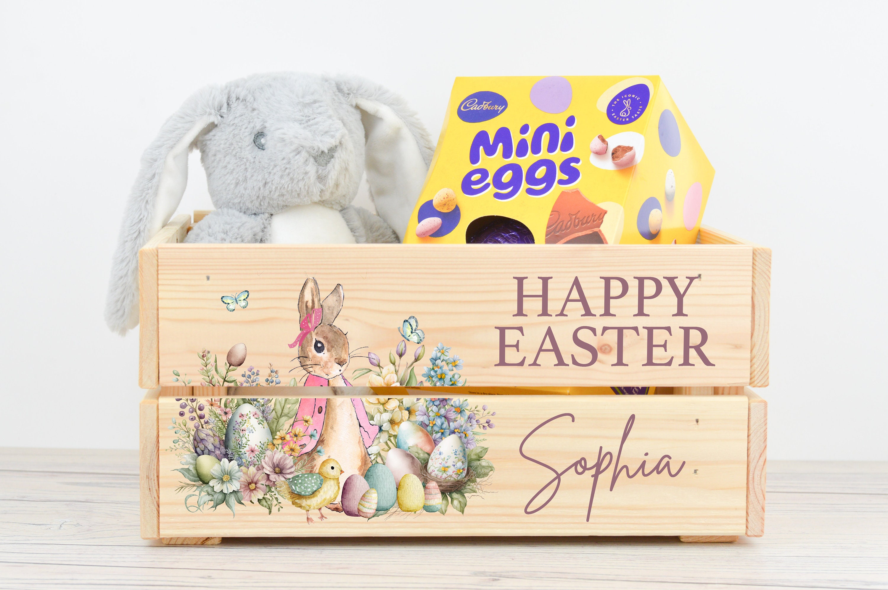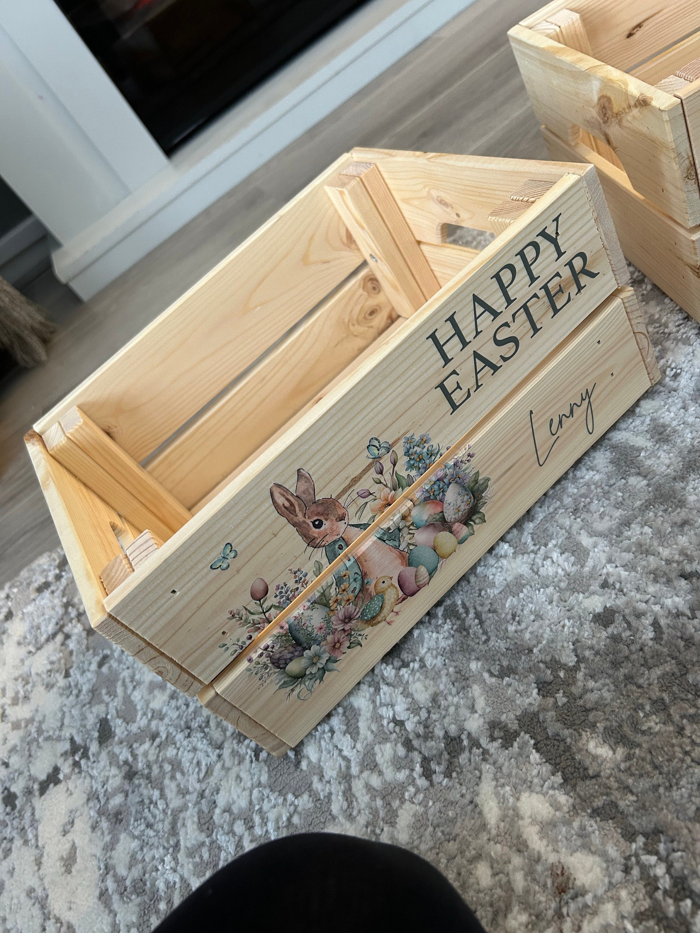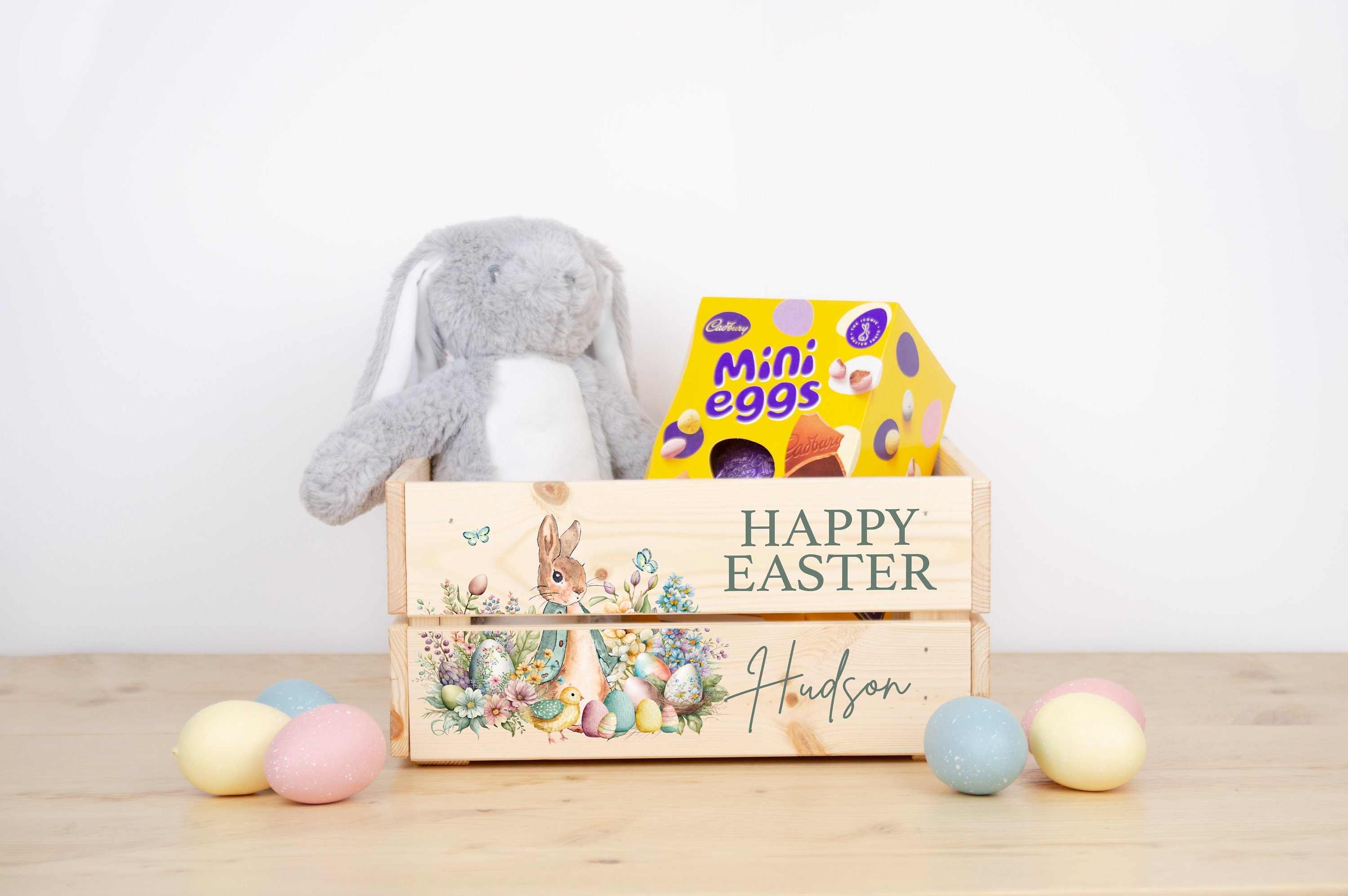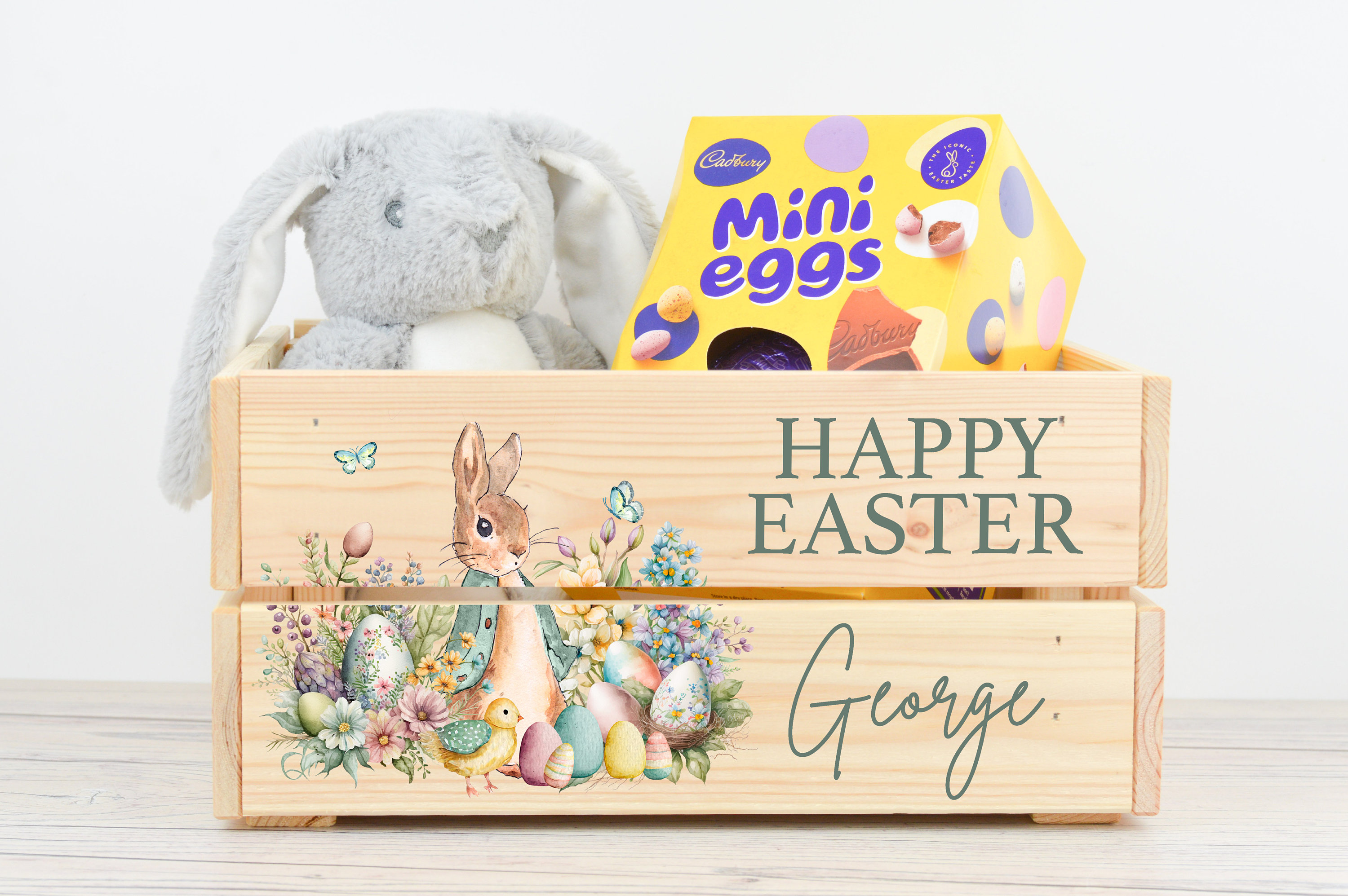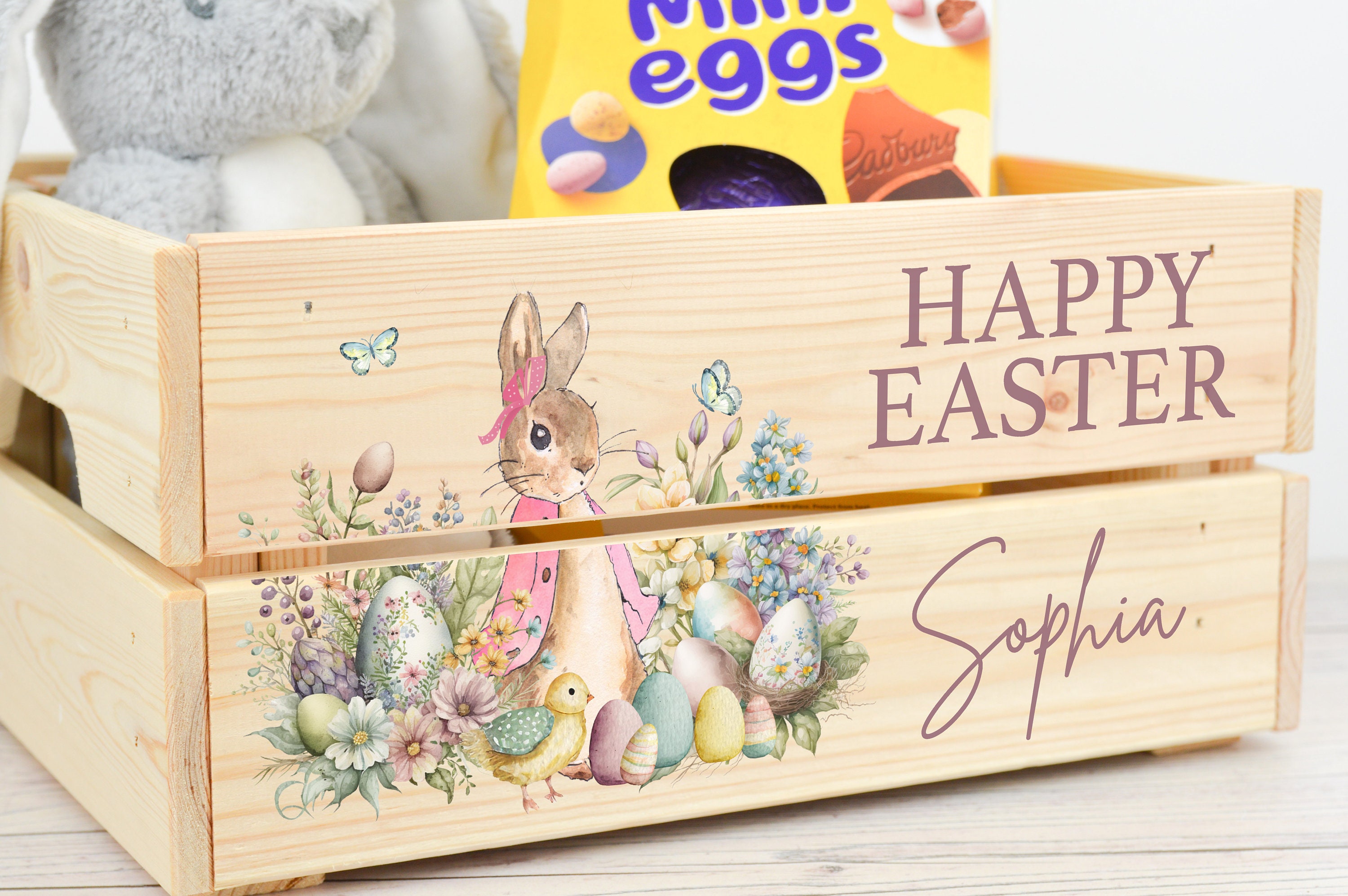These personalised Easter crates are perfect for chocolates, sweets or toys - perfect for Easter treats! These crates can be printed with any name, perfect for adding a special touch to any Easter celebration.