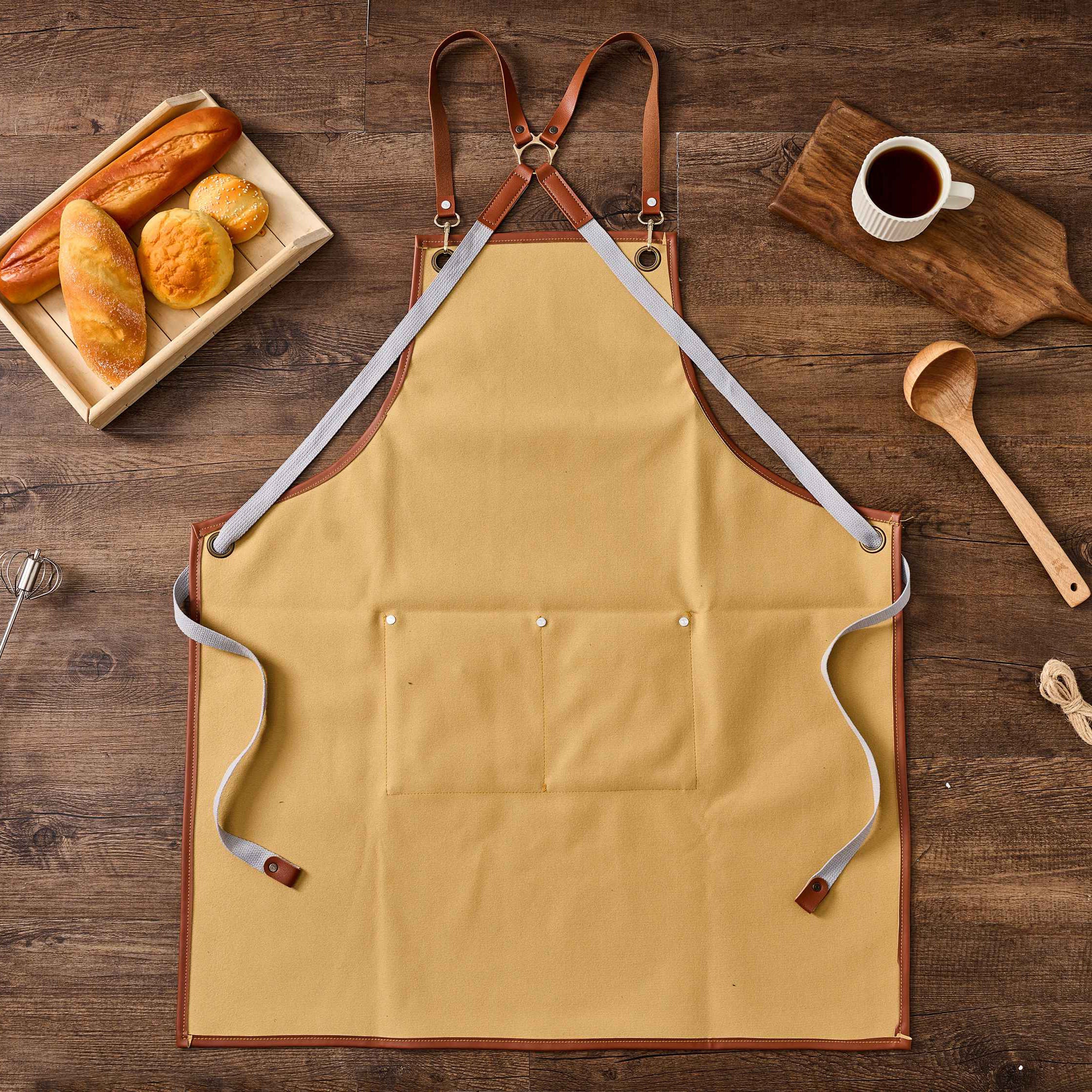 The apron has multiple pockets to keep cooking utensils and tools within easy reach, making it convenient to use.