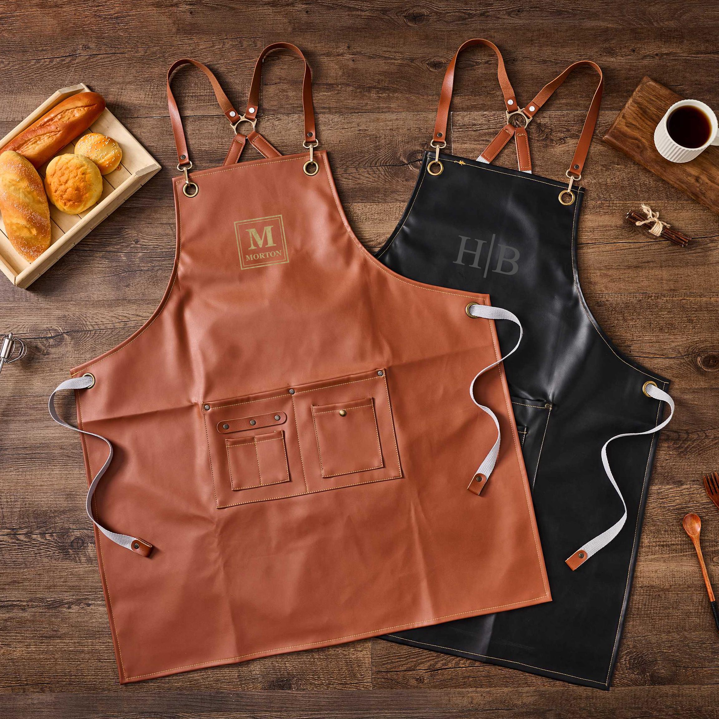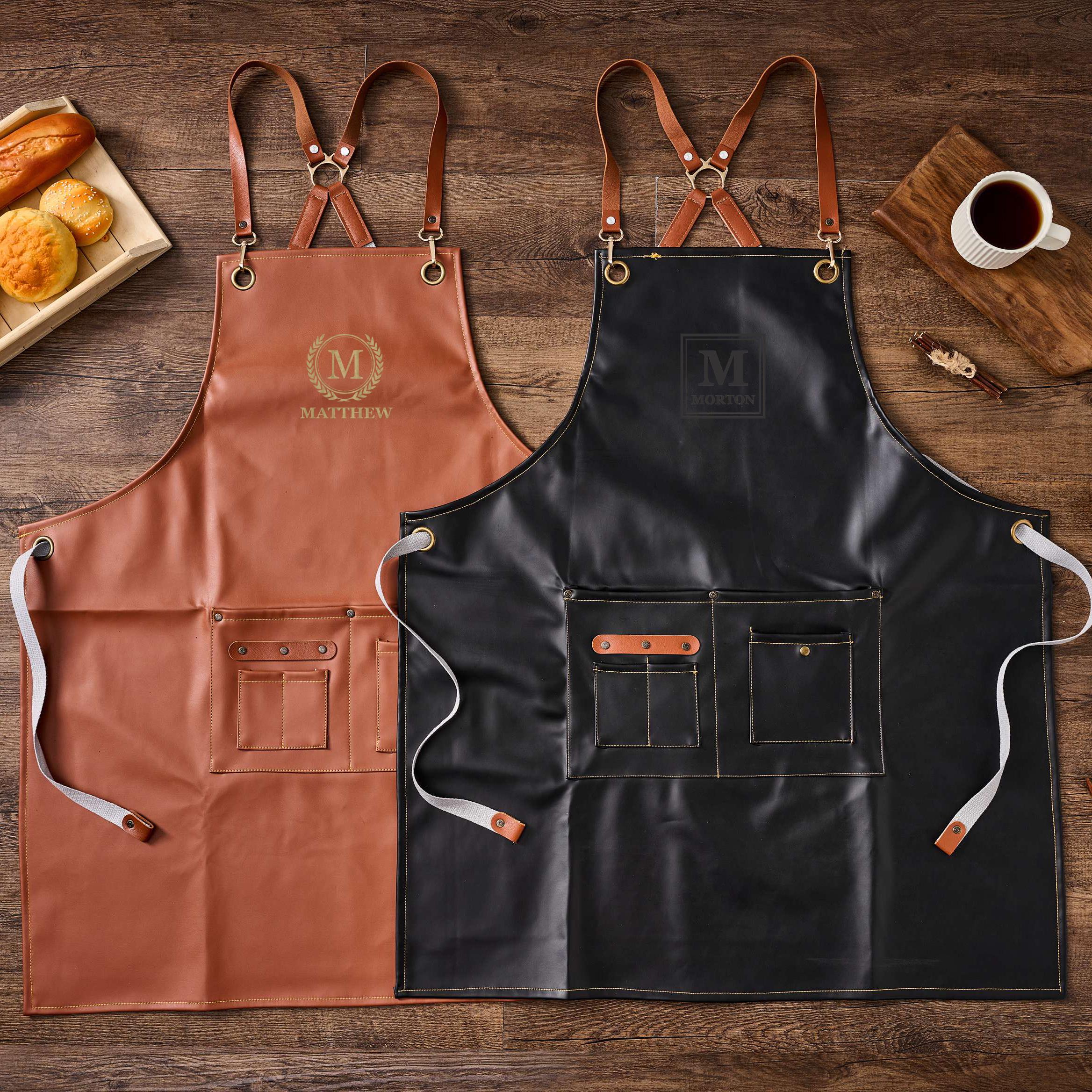 Personalized Bar Apron, PU Leather Workshop Apron with Pockets, Custom Gift for Him, Engraved Kitchen Apron, Barbeque Apron, Bartender Apron