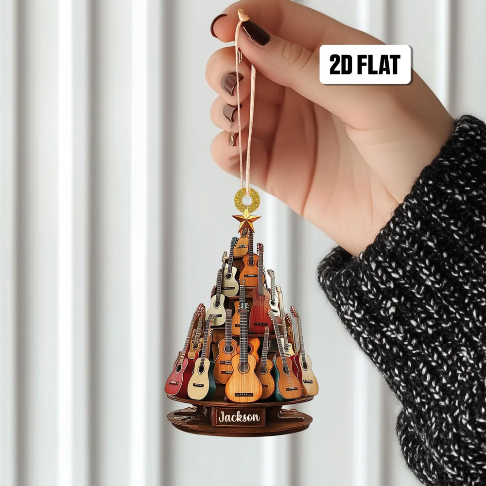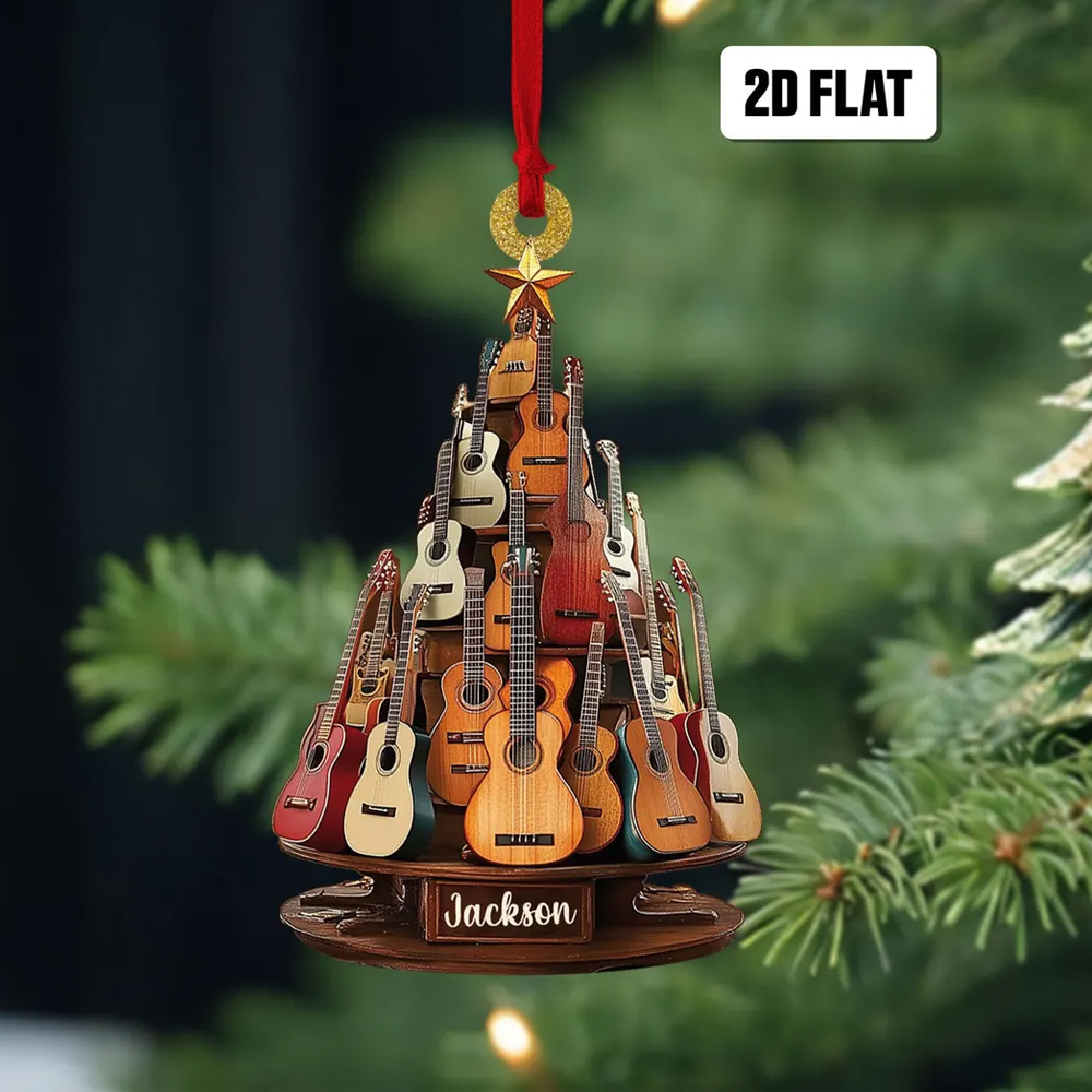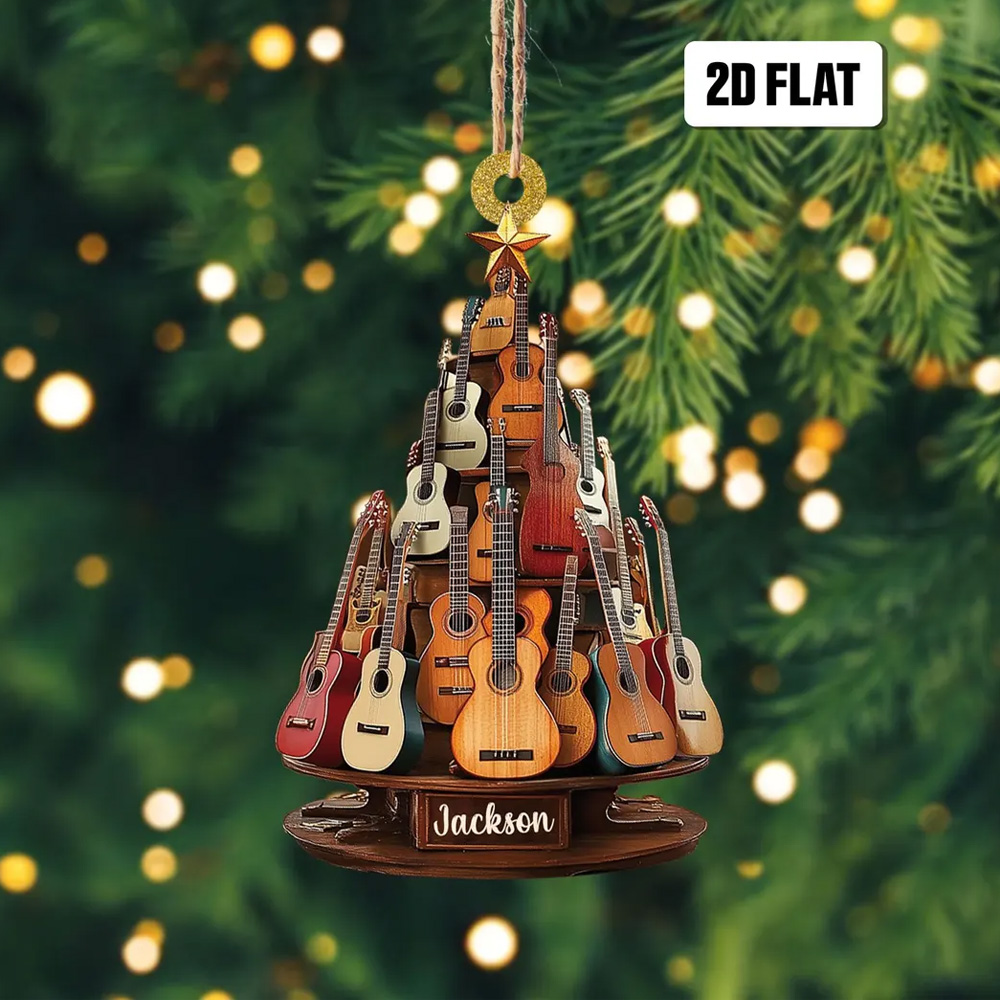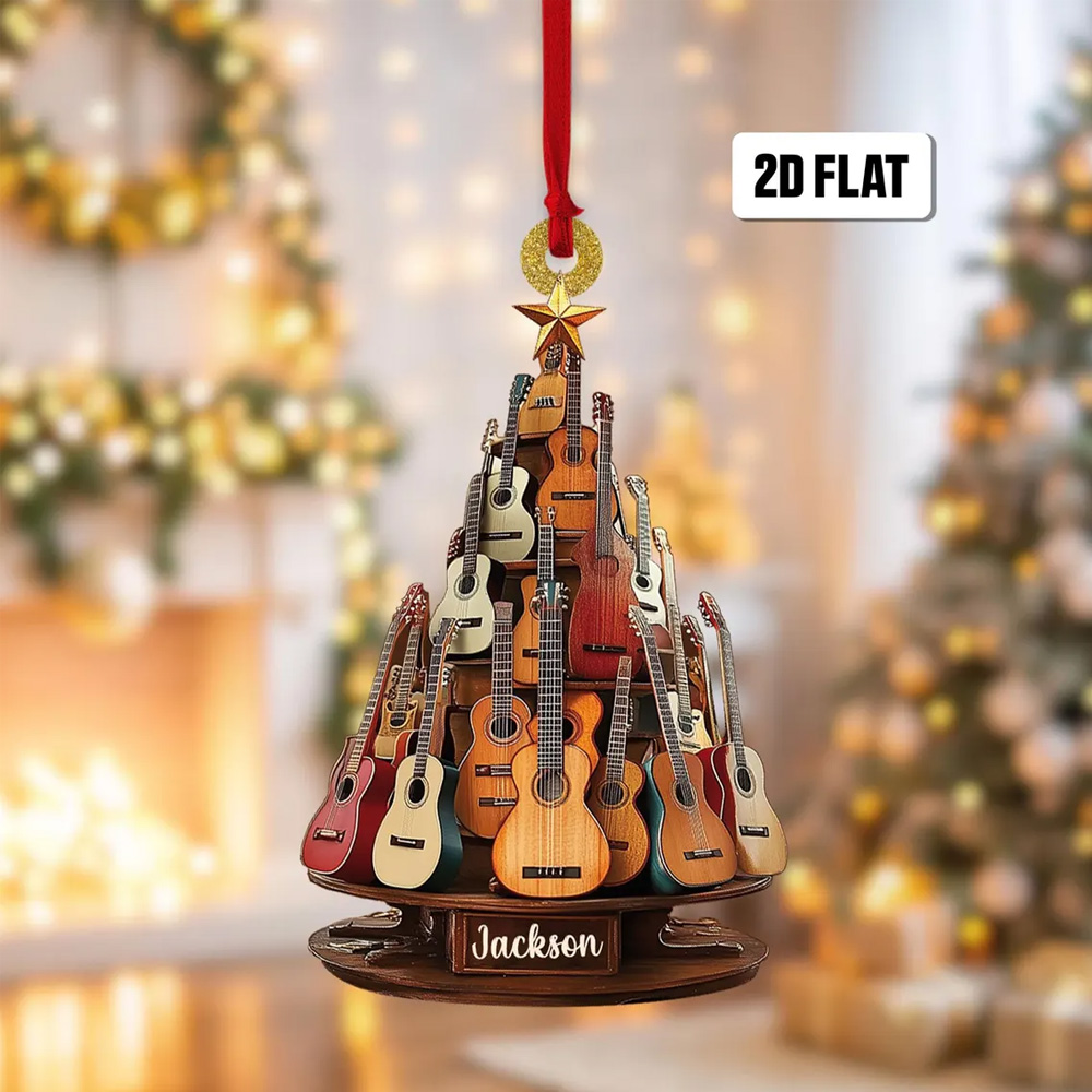 Guitar Christmas Ornament - Crafted with attention to detail, the flat design allows for easy display on walls or shelves, showcasing your passion in style. Customize it with your name, a favorite quote, or a special date to create a one-of-a-kind tribute to your musical journey.