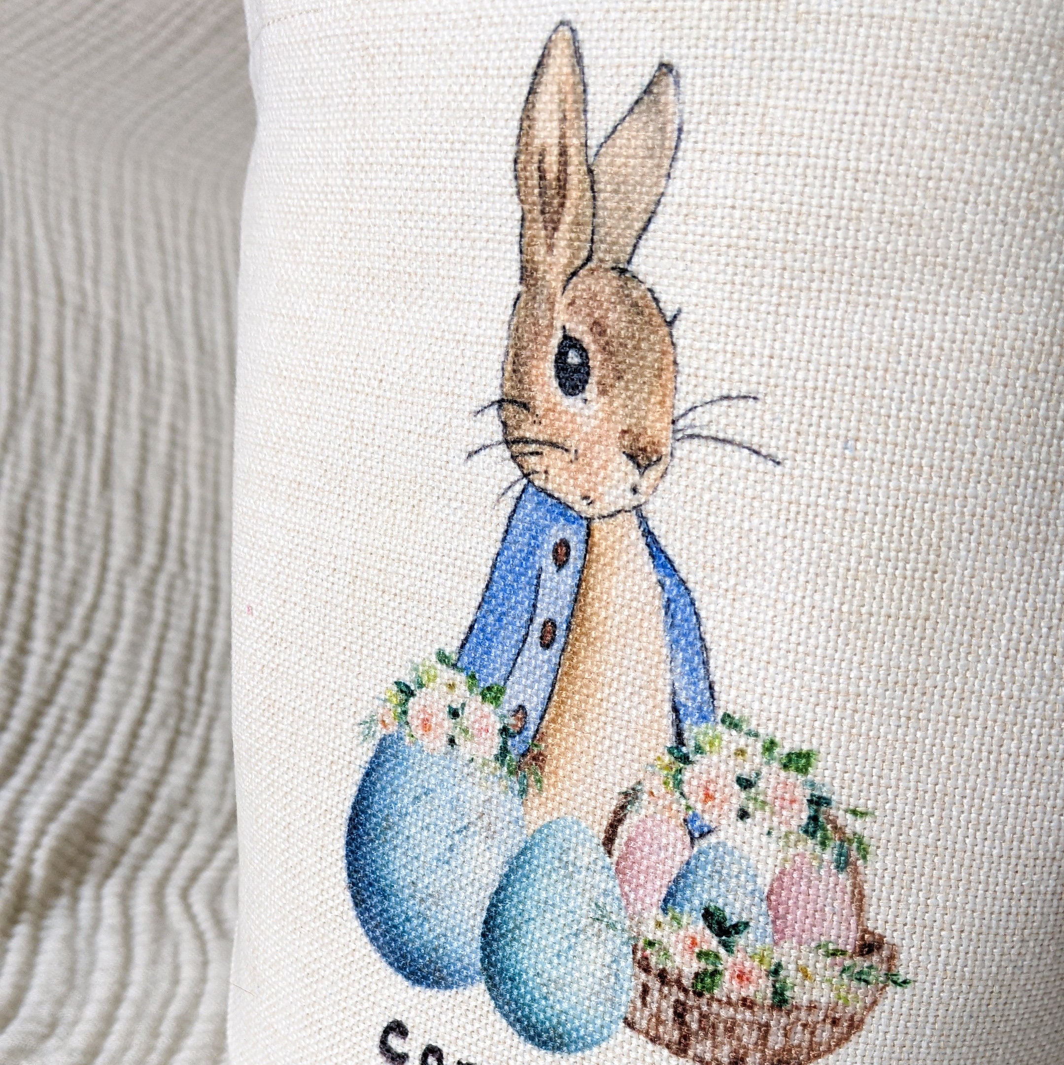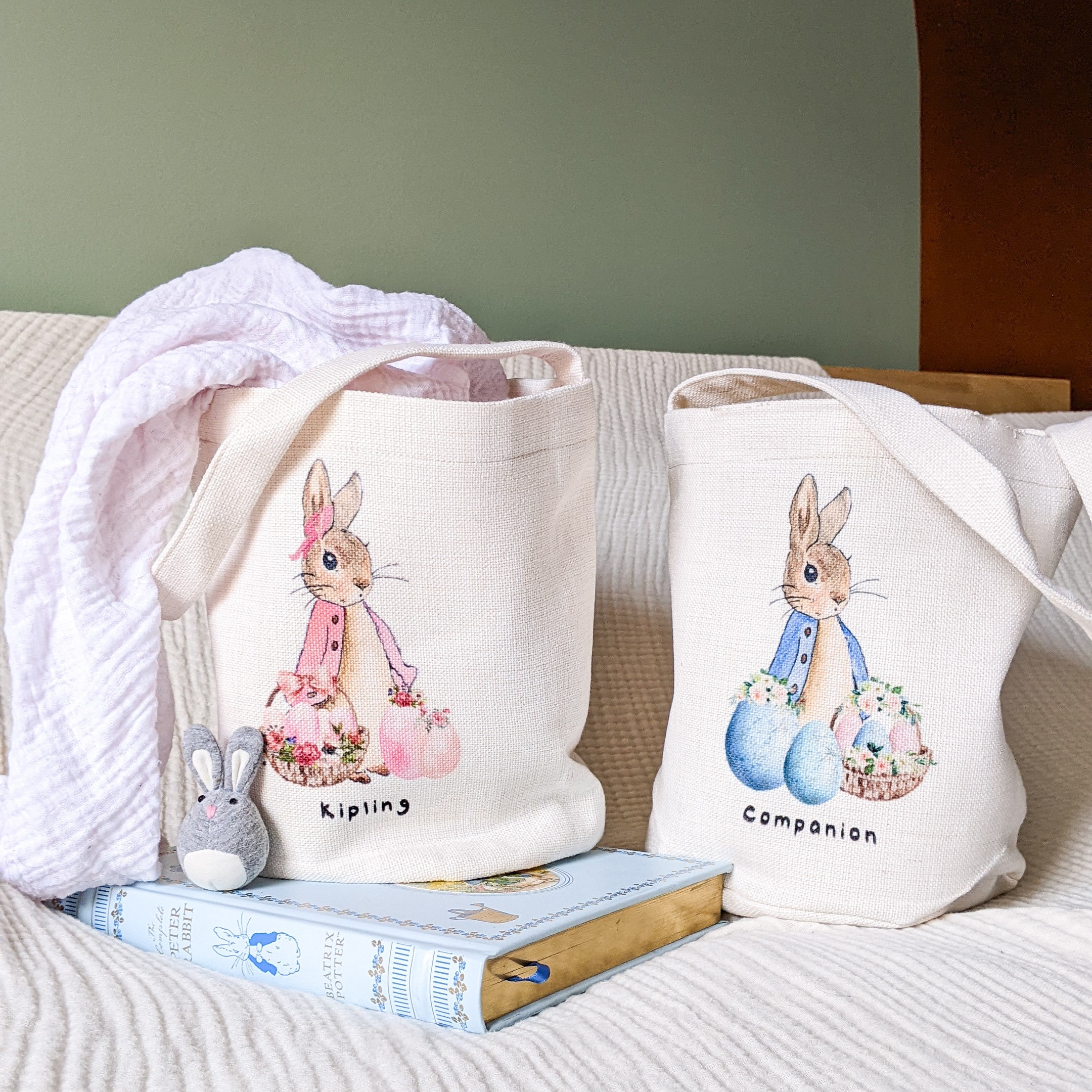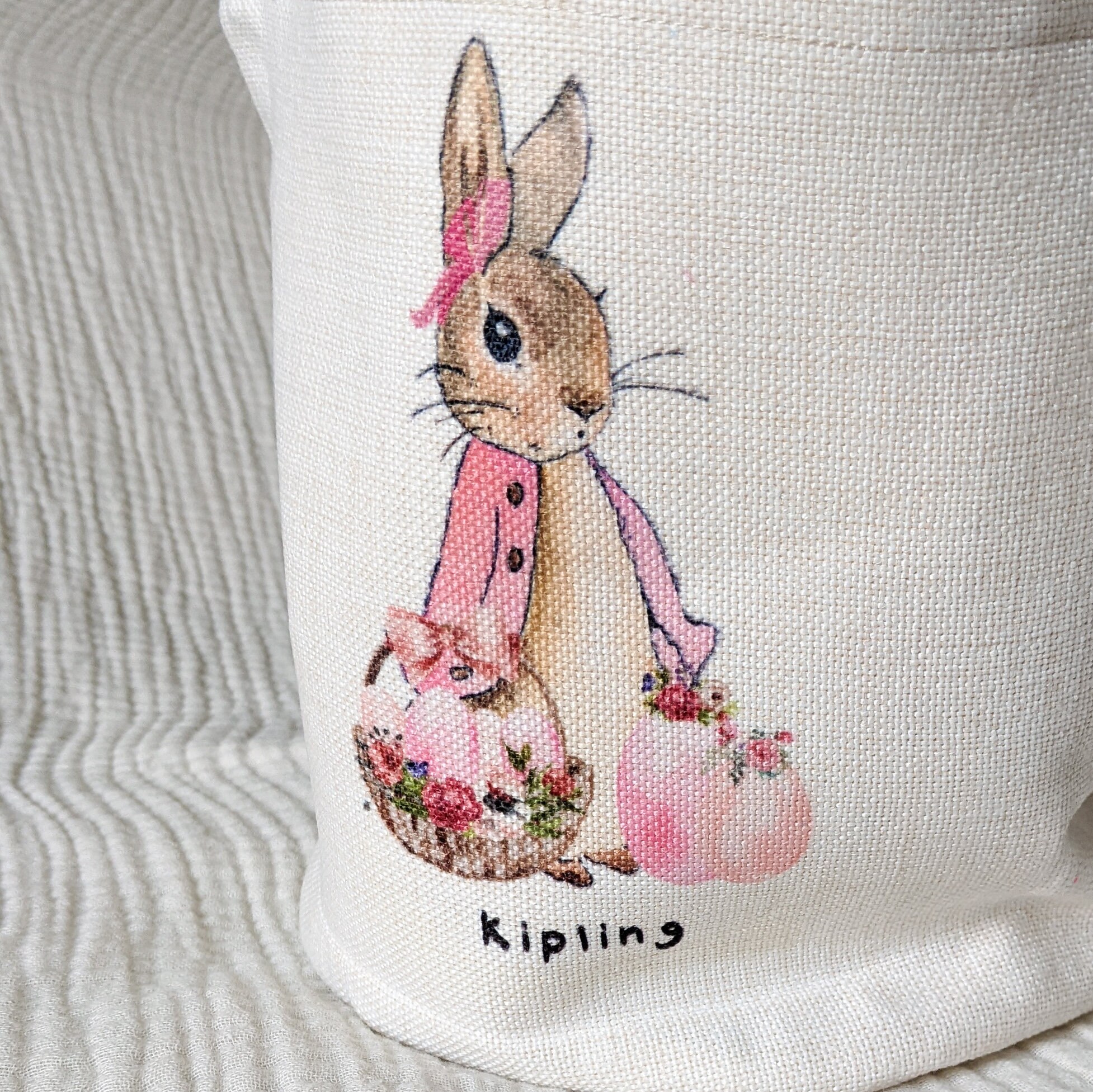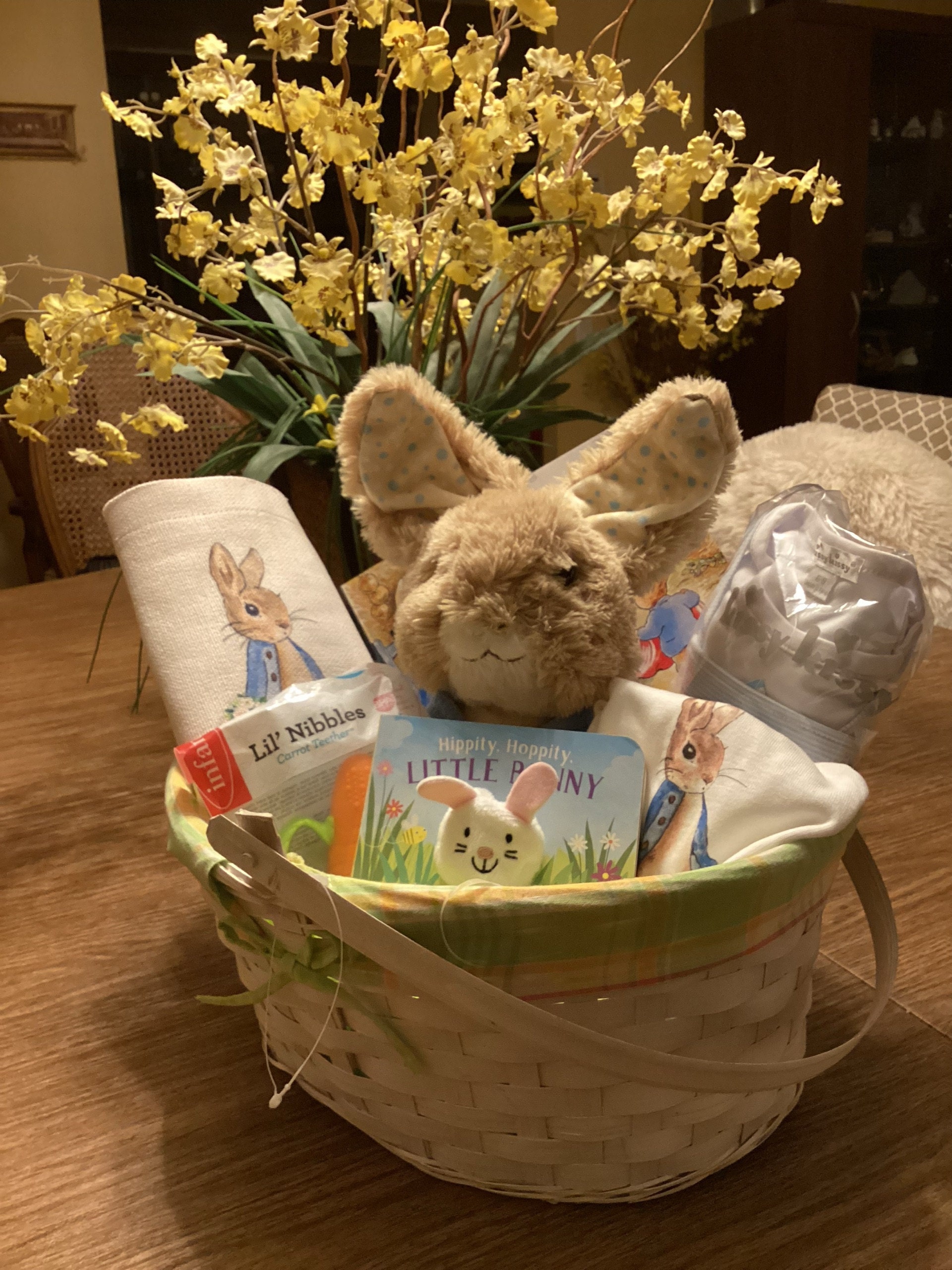 Customize an Easter Basket! The perfect gift for a first Easter, or first time celebrating together, or to have a memorable family gathering. The basket is functionable for holding gifts Easter morning, or for an Easter egg hunt, or other creative uses. The ink transfered image will last without cracking or fading for this item to be folded away as a meaningful keepsake.