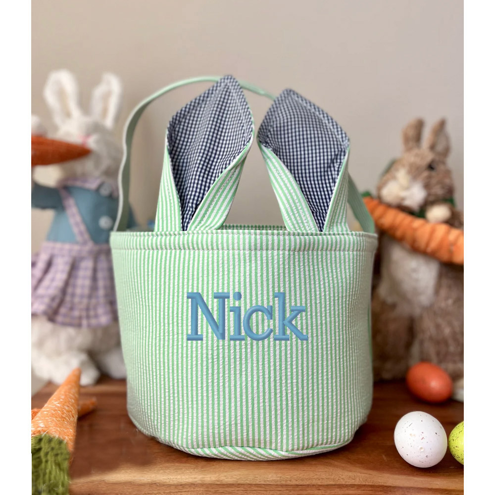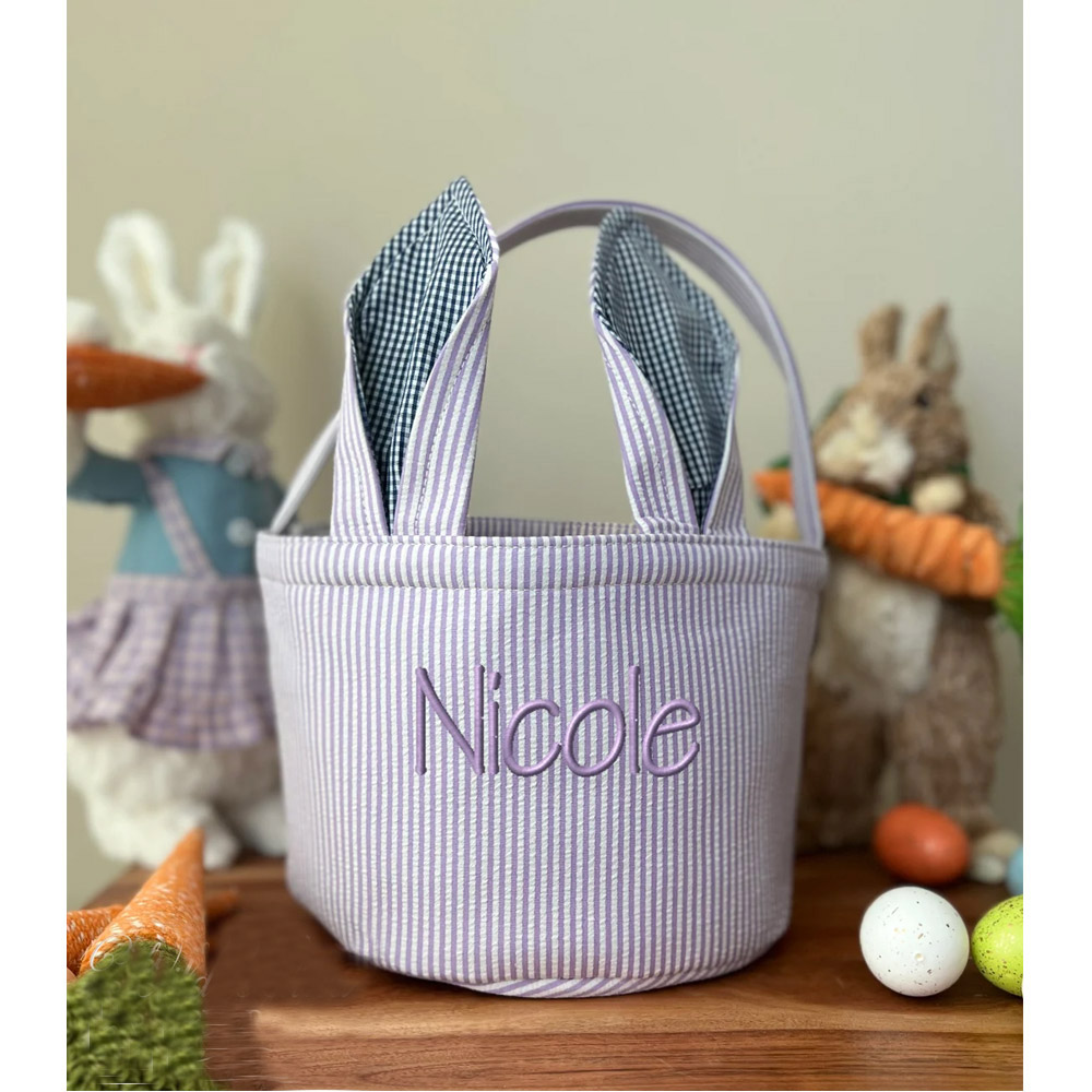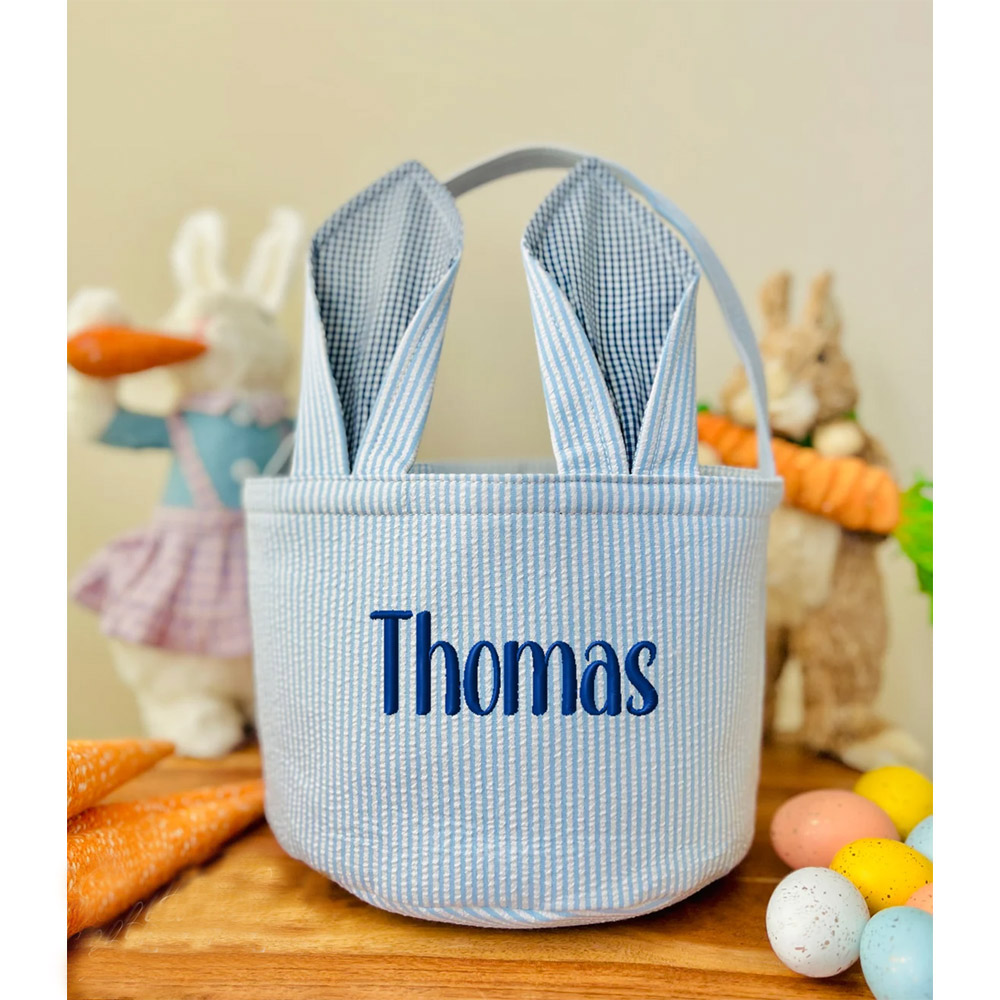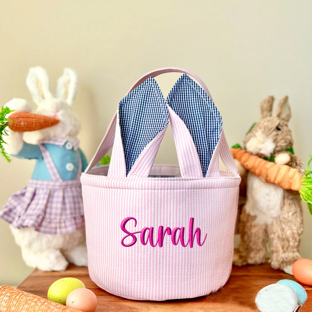 The Personalized Easter Basket with Floppy Ears is a delightful choice for celebrating Easter! This basket is made from soft seersucker fabric and features adorable floppy ears that add a playful touch. It can be beautifully embroidered with a child's name, making it a unique keepsake for years to come. This basket combines functionality with charm and is perfect for holding Easter treats, eggs, and toys. Ideal for children of all ages, it makes for a thoughtful Easter gift to enhance their holiday festivities and create lasting memories!