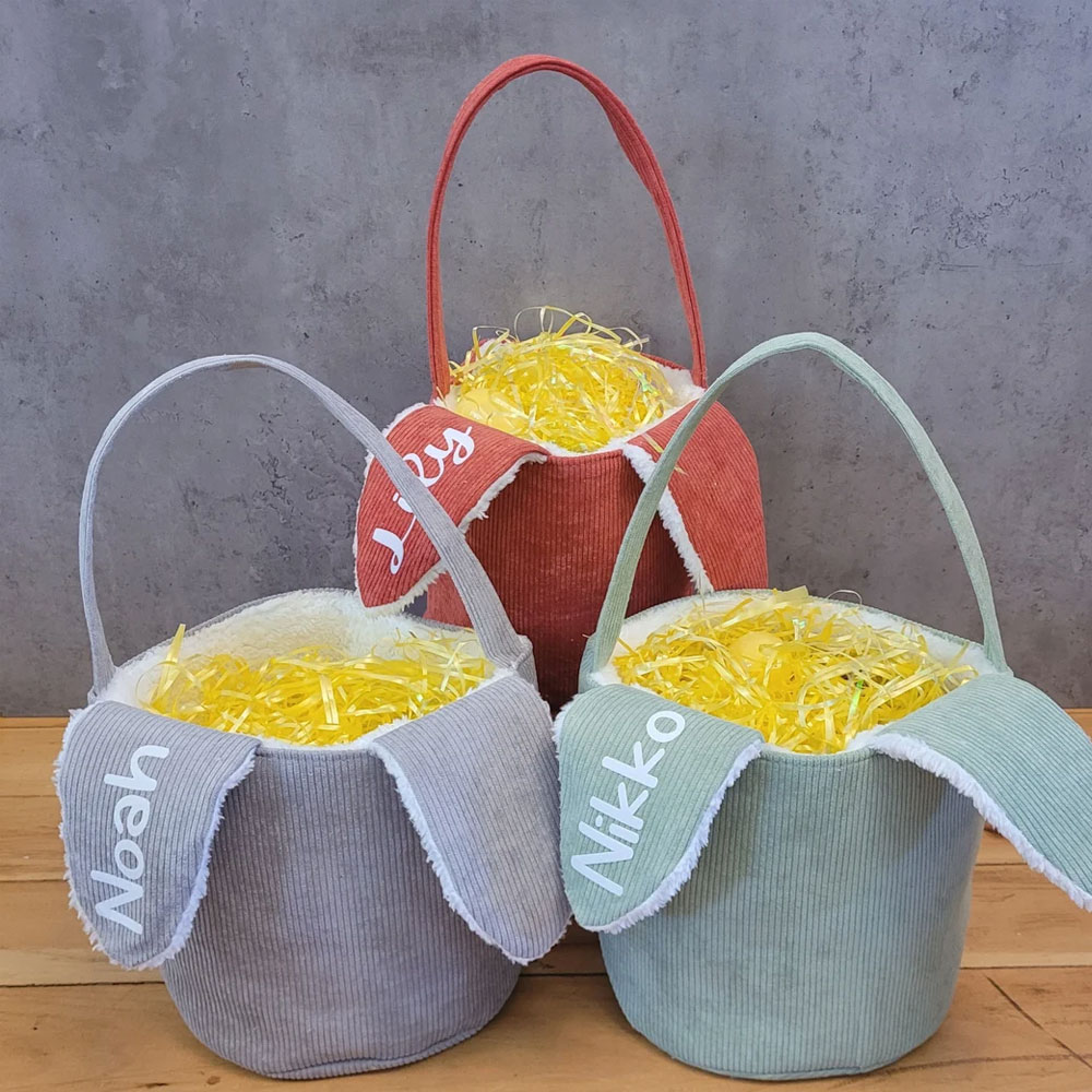 Perfect gift - Made from high-quality corduroy, ensuring durability and a soft feel, perfect for little hands. A thoughtful and personalized gift that can be used year after year, creating lasting family traditions. Delight your little ones this Easter with a Personalized Easter Basket that they'll treasure for years to come!