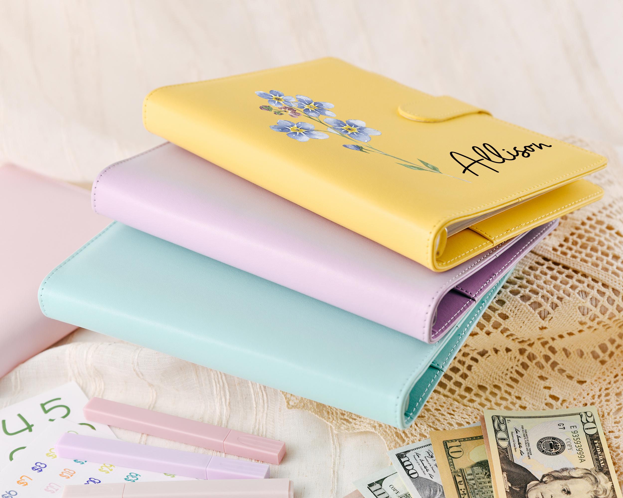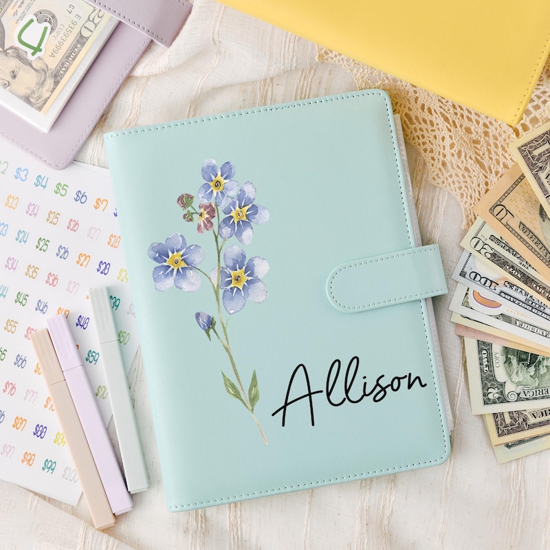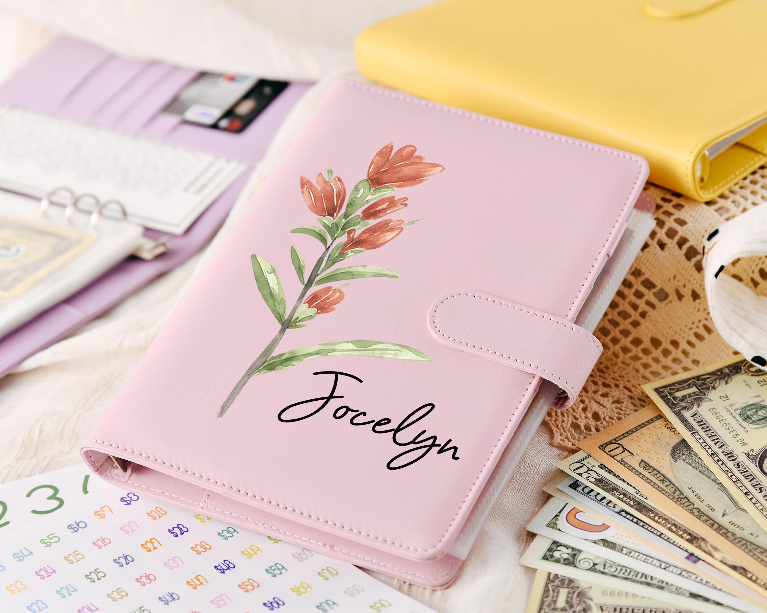Personalized floral 100 envelopes money saving challenge binder, can record children's growth records.