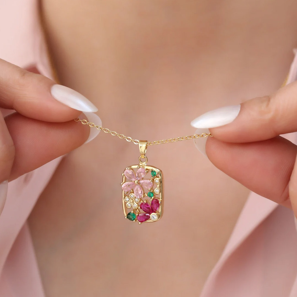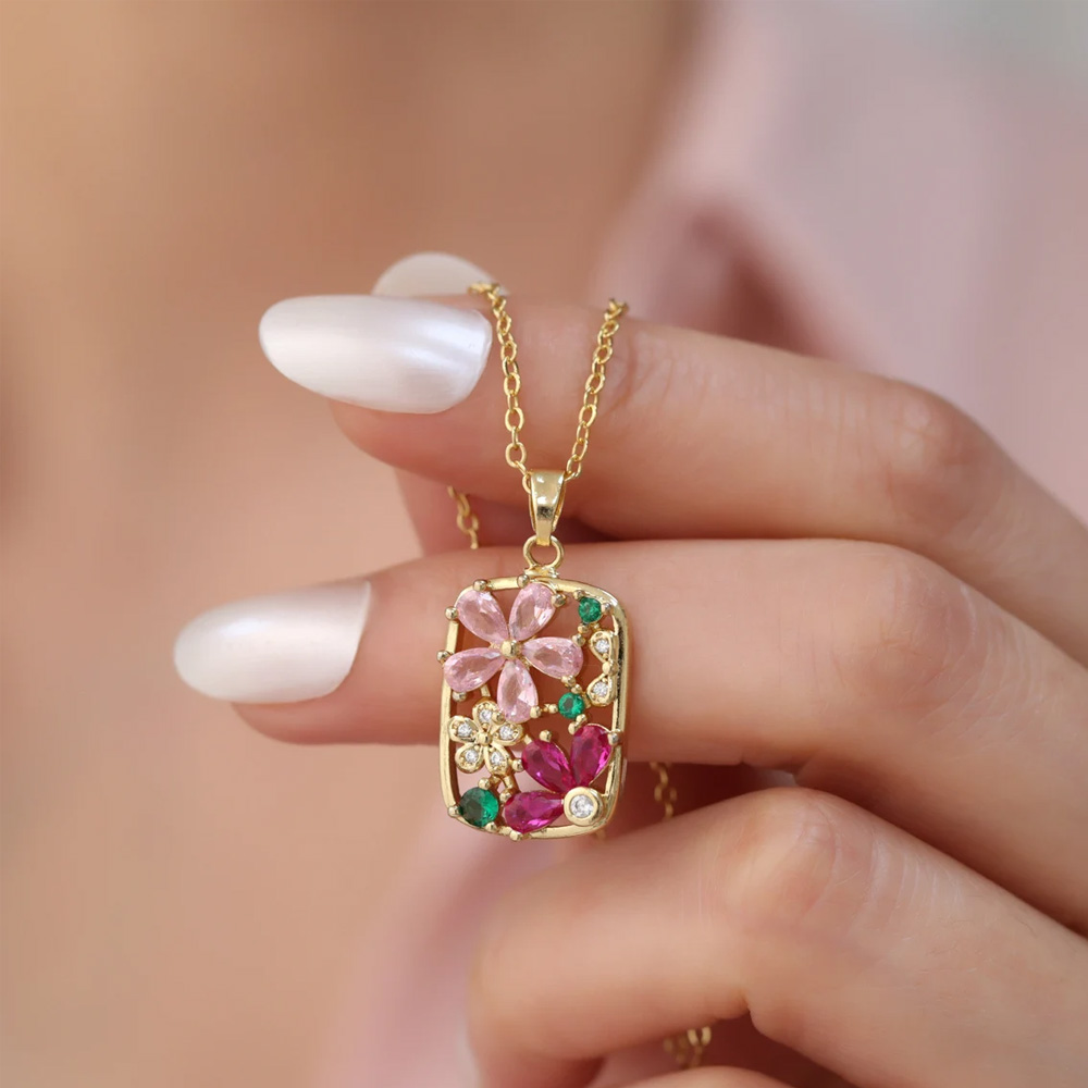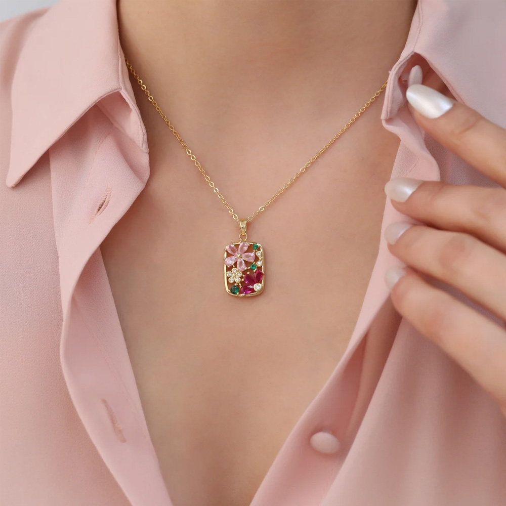 The intricate floral design is meticulously handcrafted, capturing the delicate petals and vibrant hues of a real bloom.The chain ensures a comfortable and versatile fit, allowing you to showcase this elegant pendant with ease.