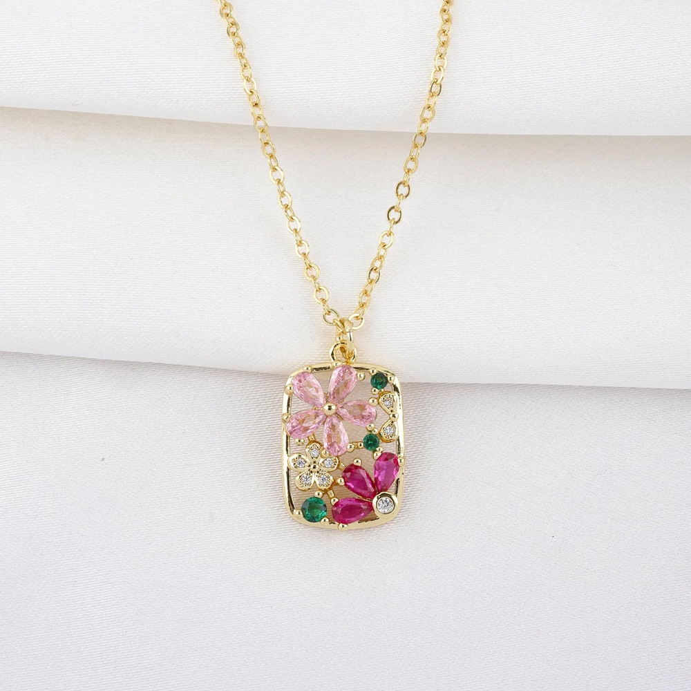 Elevate your style with this enchanting gold flower pendant necklace. Crafted from gleaming metal, this delicate piece features a stunning pink flower charm that adds a touch of natural beauty to any outfit.