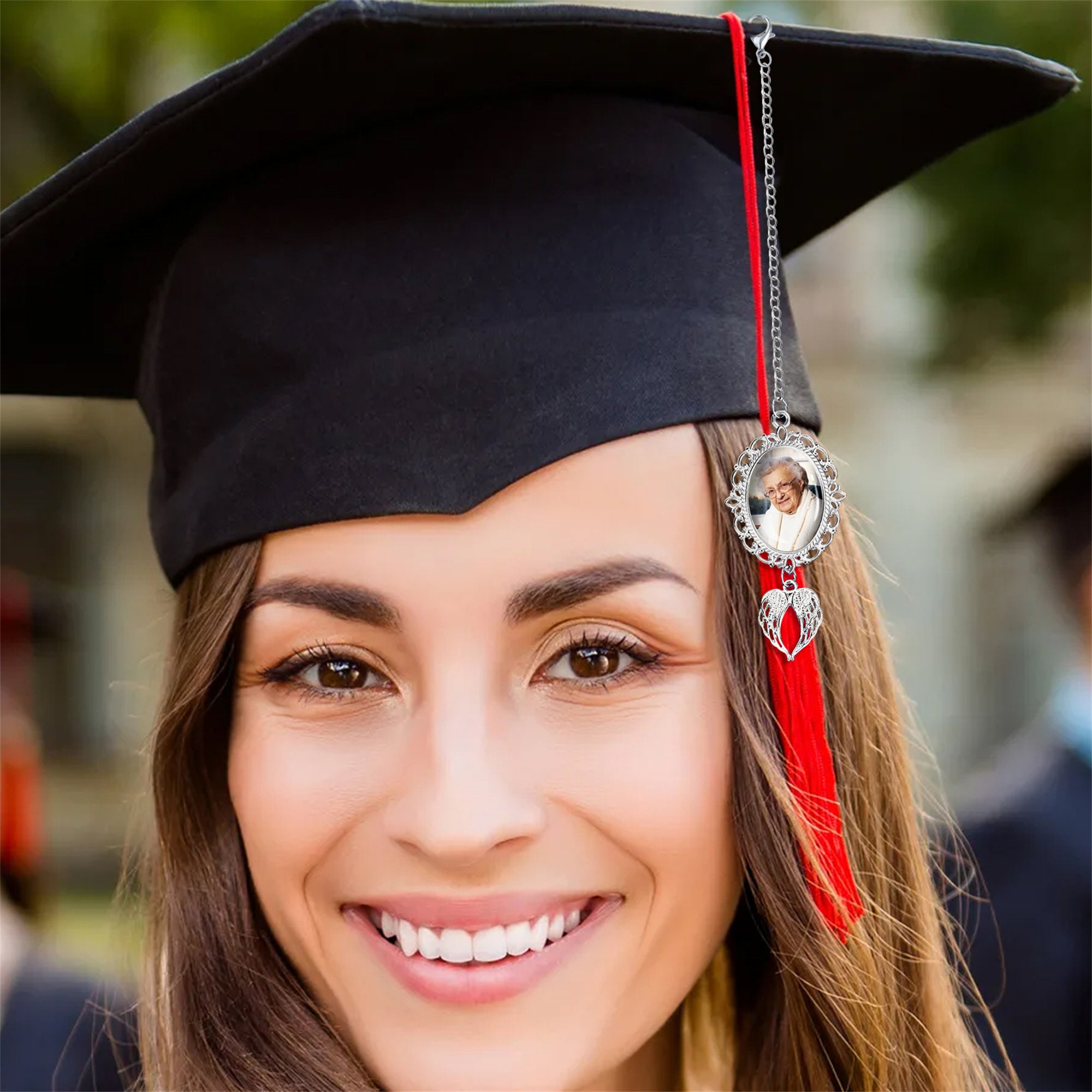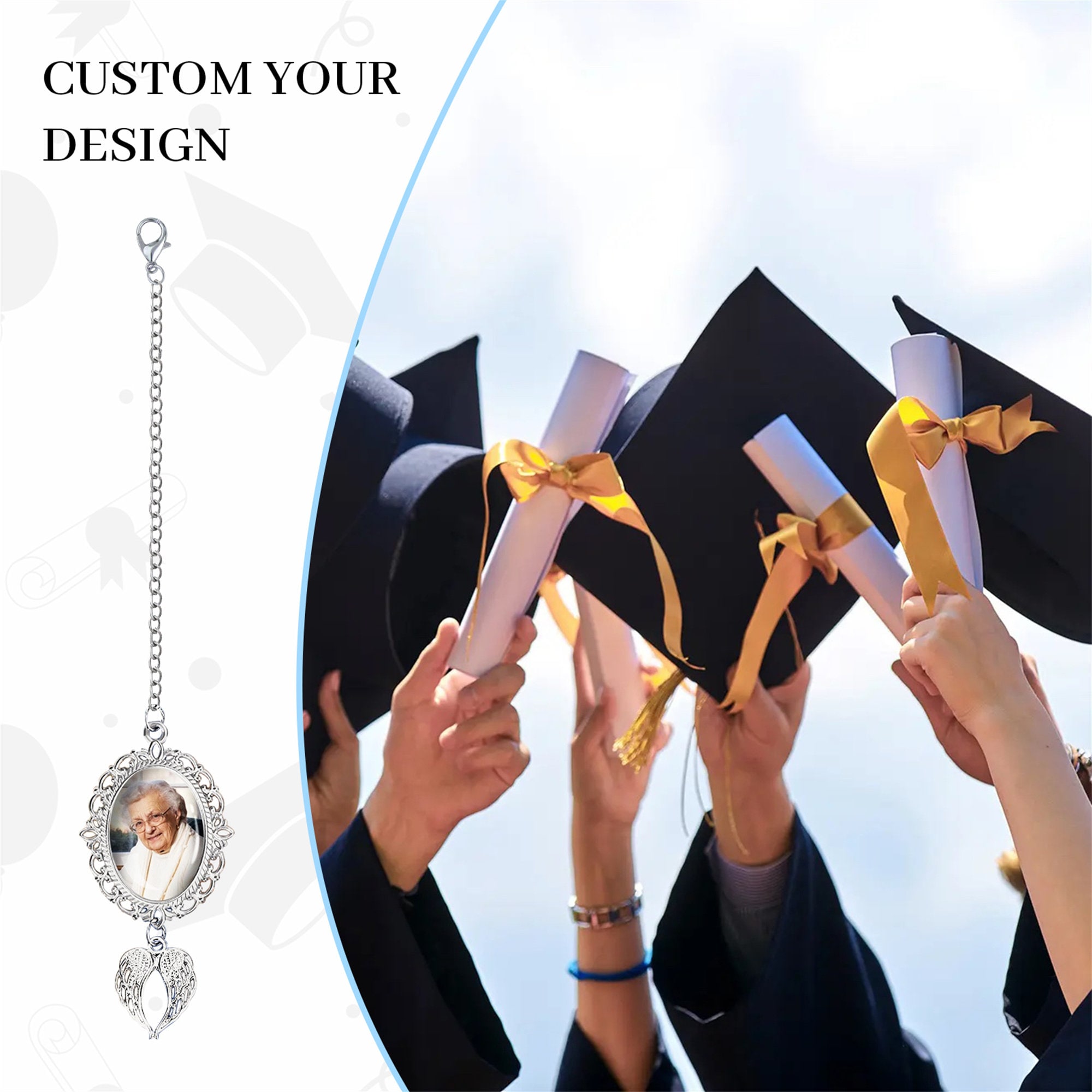 ☀Crafted with meticulous attention to detail, this graduation tassel features a delicate charm with angel wings, symbolizing guidance, protection, and the soaring ambitions of your academic journey. The charm can be beautifully adorned with the chosen photos, encapsulating the cherished memories and friendships built throughout your educational endeavors.