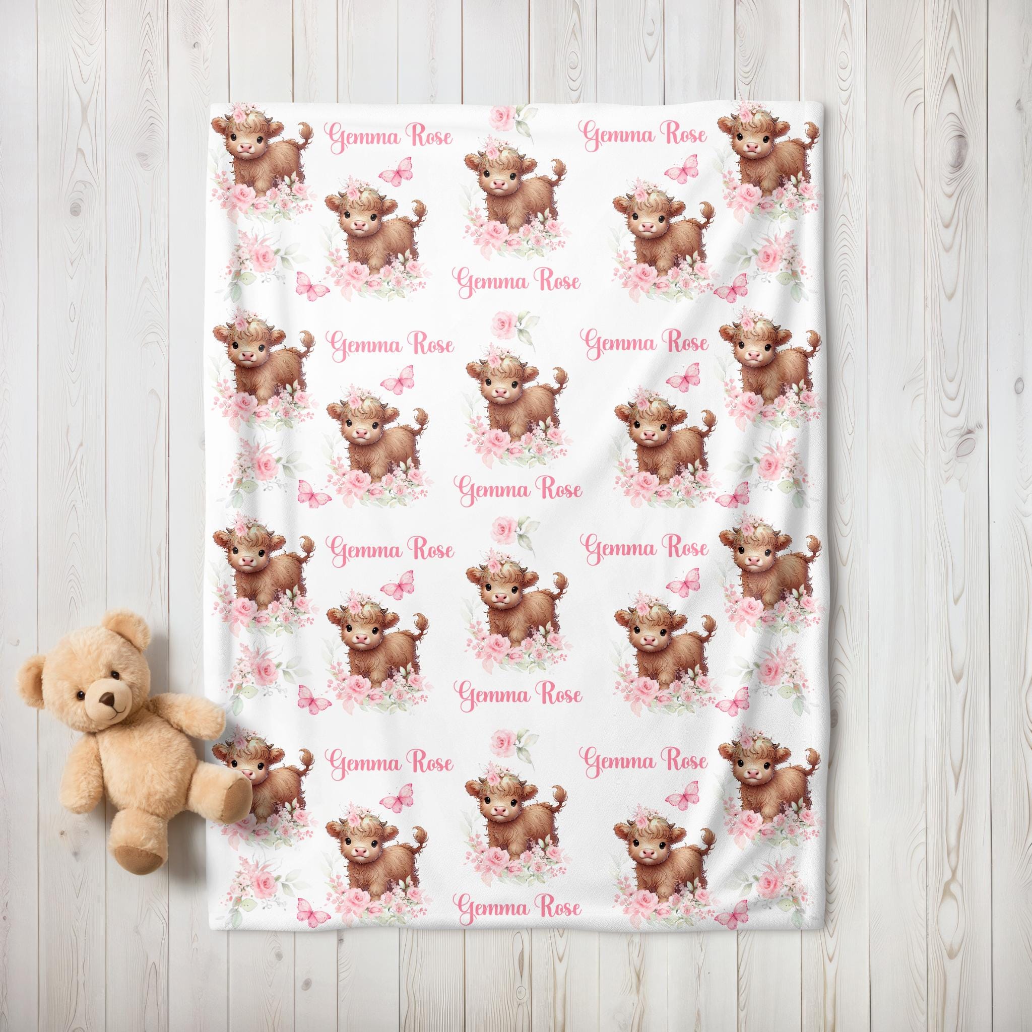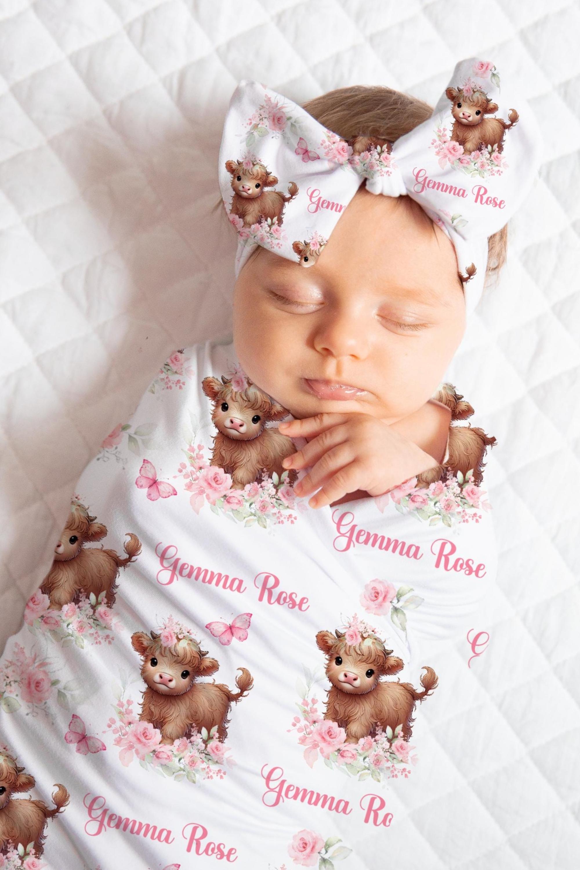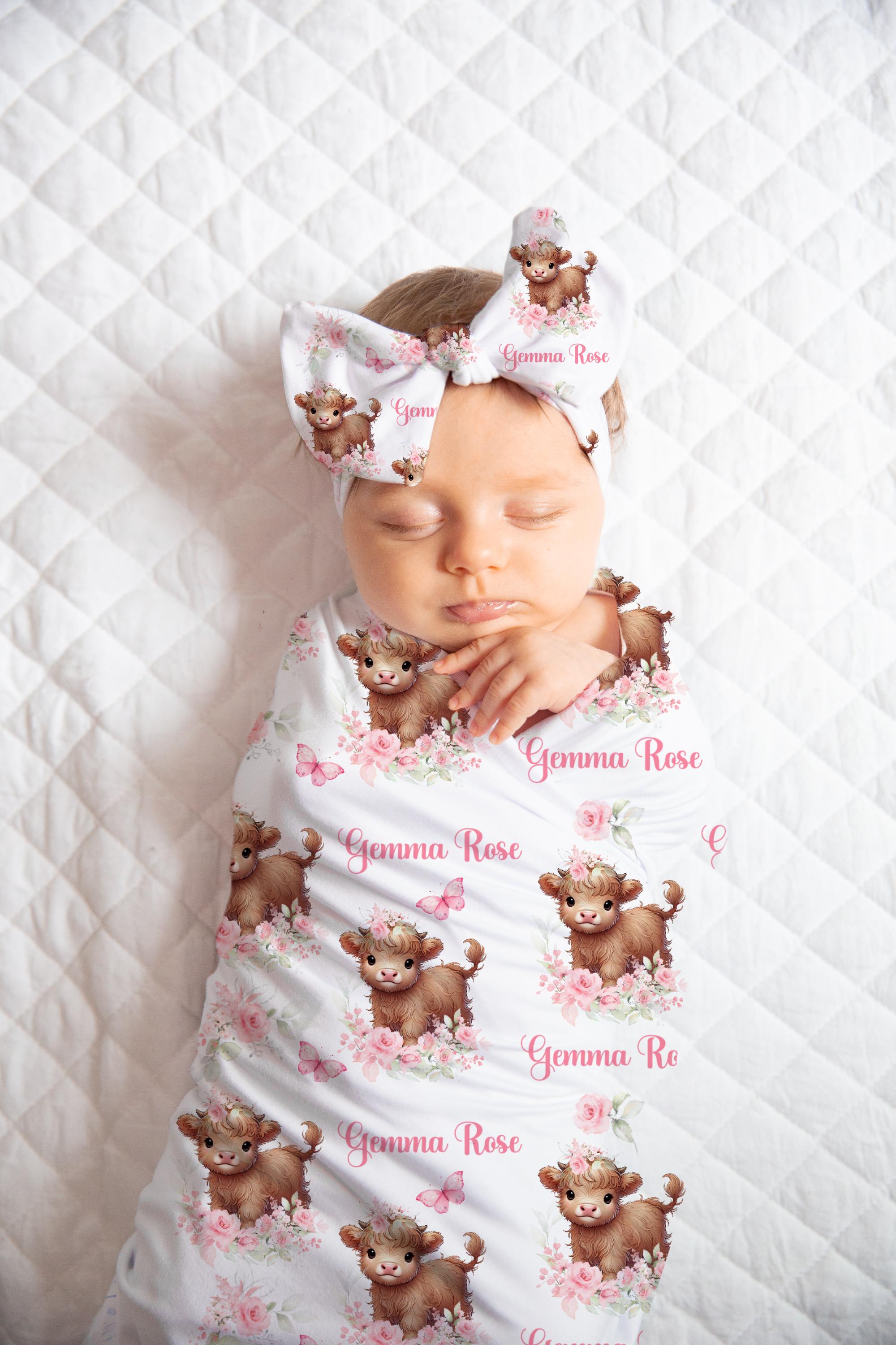 HIGHLAND COW BABY GIRL BLANKET - SWADDLE SET BABY GIFT 1863 You will love to wrap your newborn in style with their own super cute baby blanket. This blanket is perfect to cuddle your newborn, for tummy time, stroller use, or to keep baby warm and cozy. This adorable blanket would also make the perfect baby shower gift for new moms!