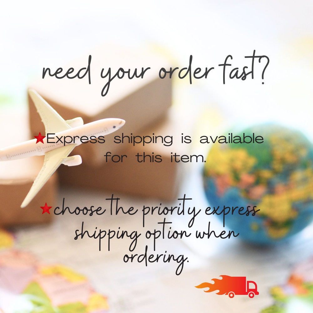 *There are no returns on custom orders, so make sure you have all your info correct, and feel free to ask any questions!:)