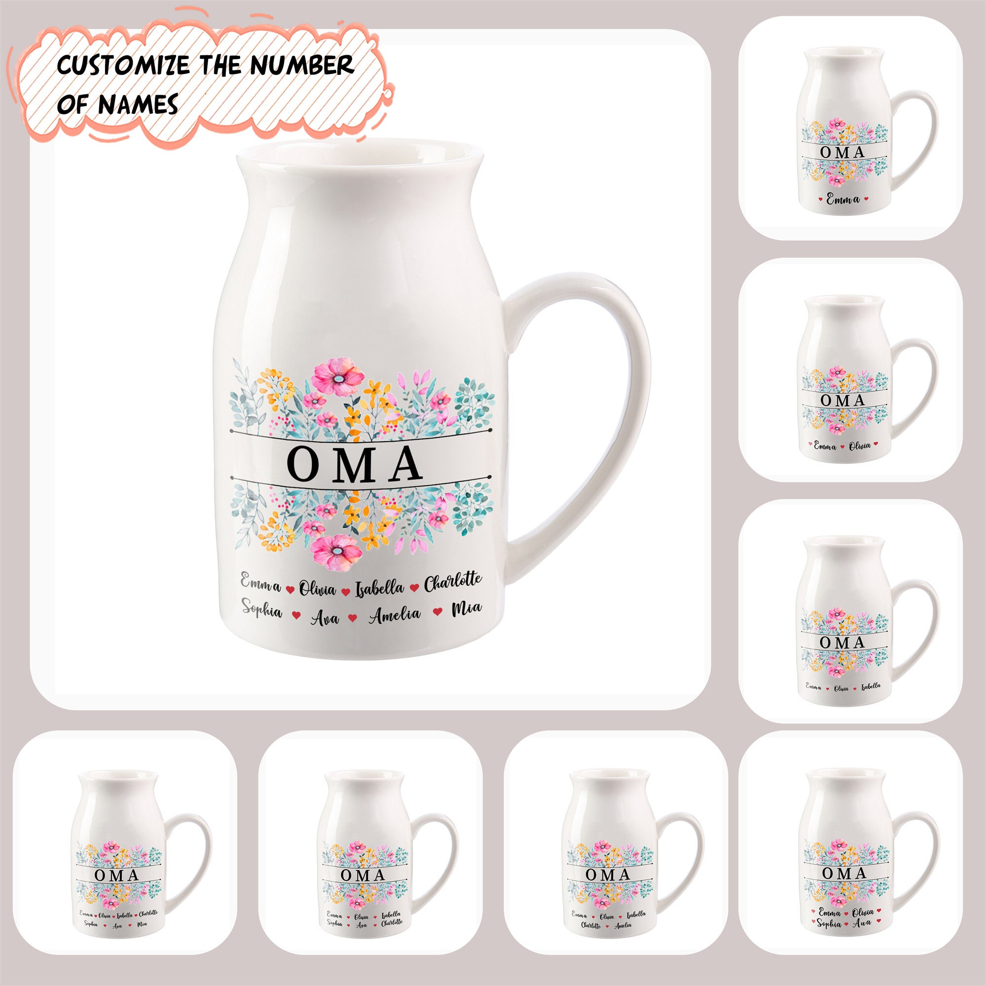 Personalized Mom and Child Name Vase, Customized Vase Gift for Mom, Grandma Gift, Customized Mom Birthday Jug Vase