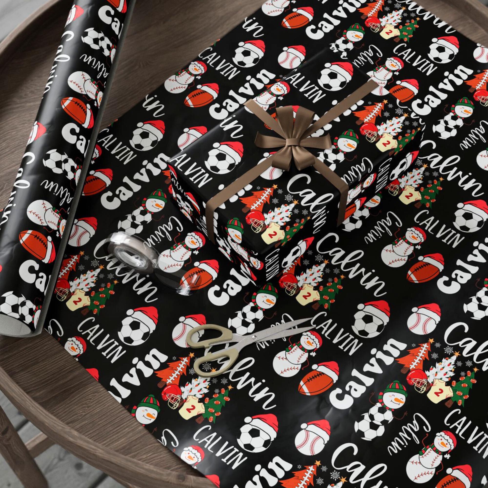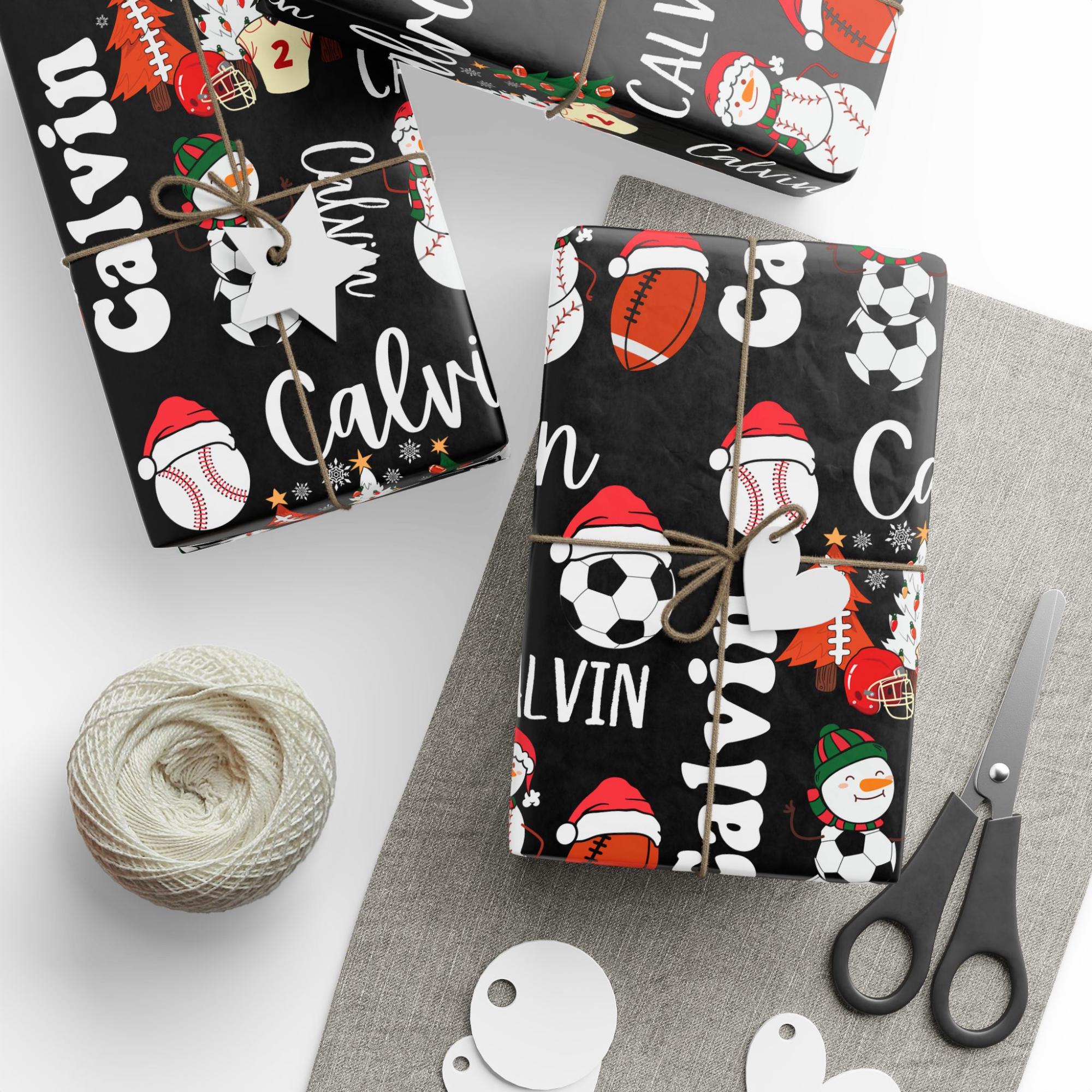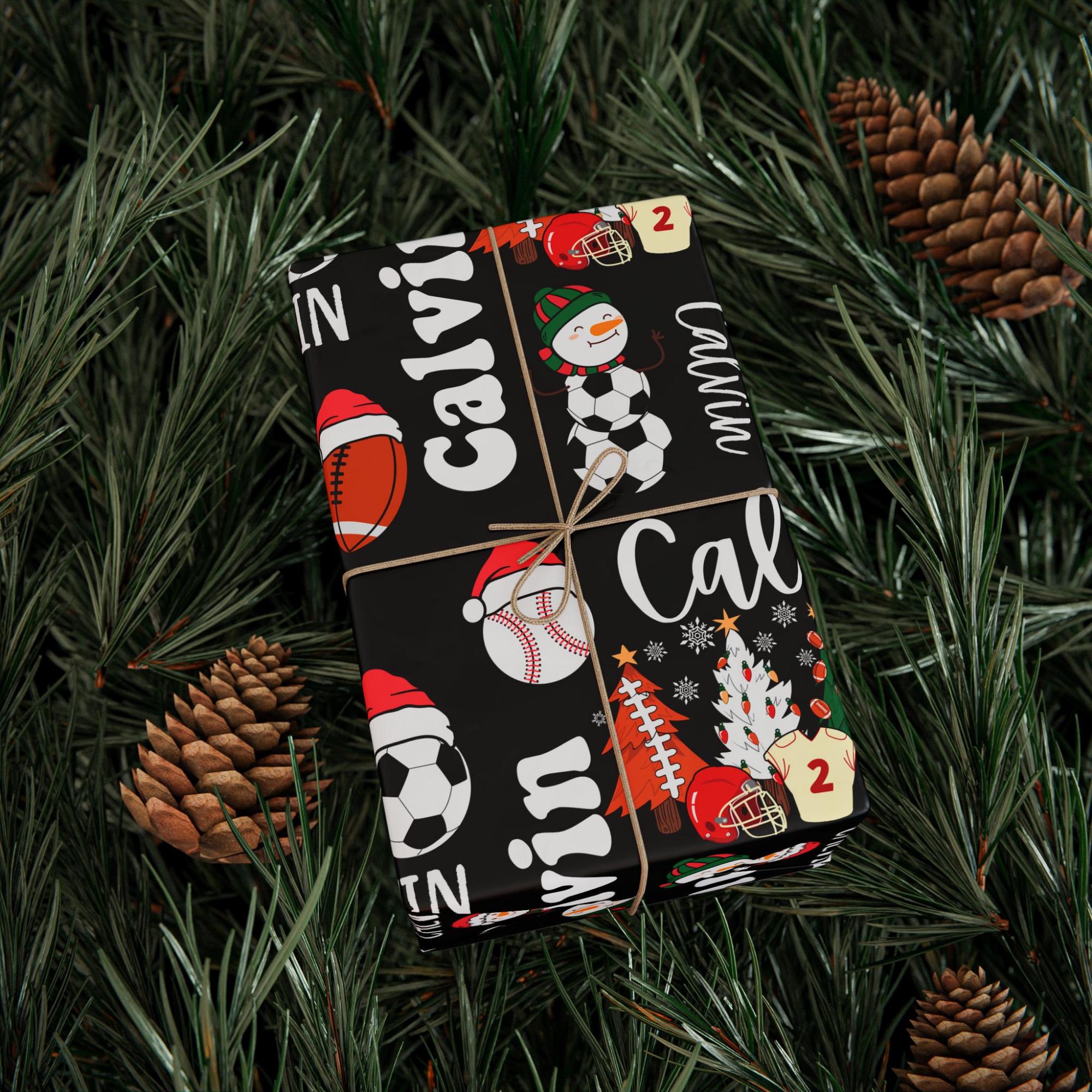 Make your gifts even more memorable with our custom black football, baseball, and rugby Christmas wrapping paper—featuring Christmas sports graphics. Add your name for a personal touch, making each gift a keepsake. Perfect for holiday celebrations, Secret Santa exchanges, or surprises under the tree, this festive wrapping paper brings timeless charm and vintage Christmas magic to every package.