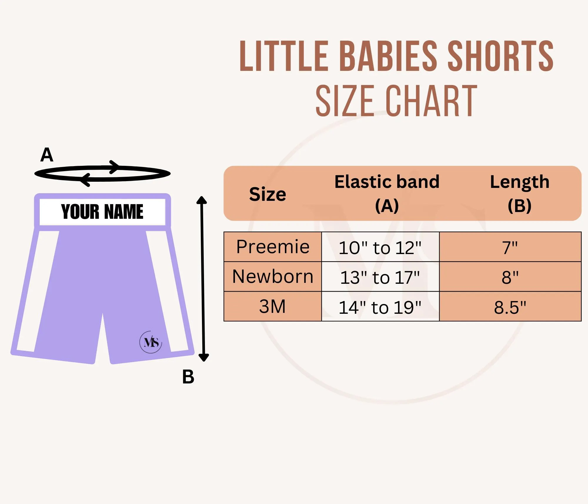 - Newborn: 12" waist (extends to 14"), 7.5" pants length (for babies weighing 8/9 lbs or less)