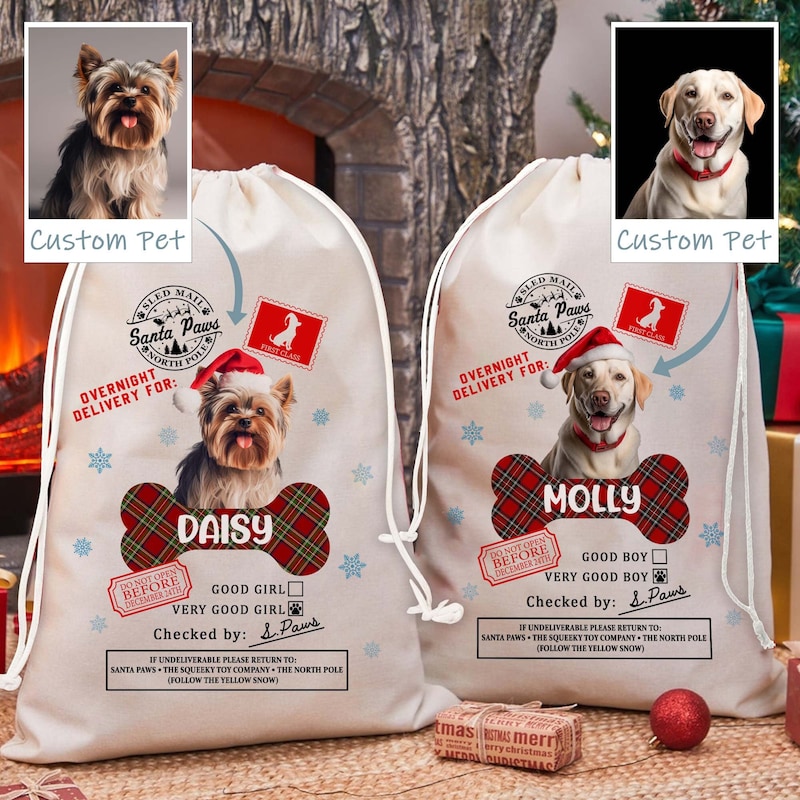 Personalized Christmas Santa Bag, Custom Pet Christmas Gift Bag, Christmas Gift Bag, Christmas Gift Bag for Cats and Dogs