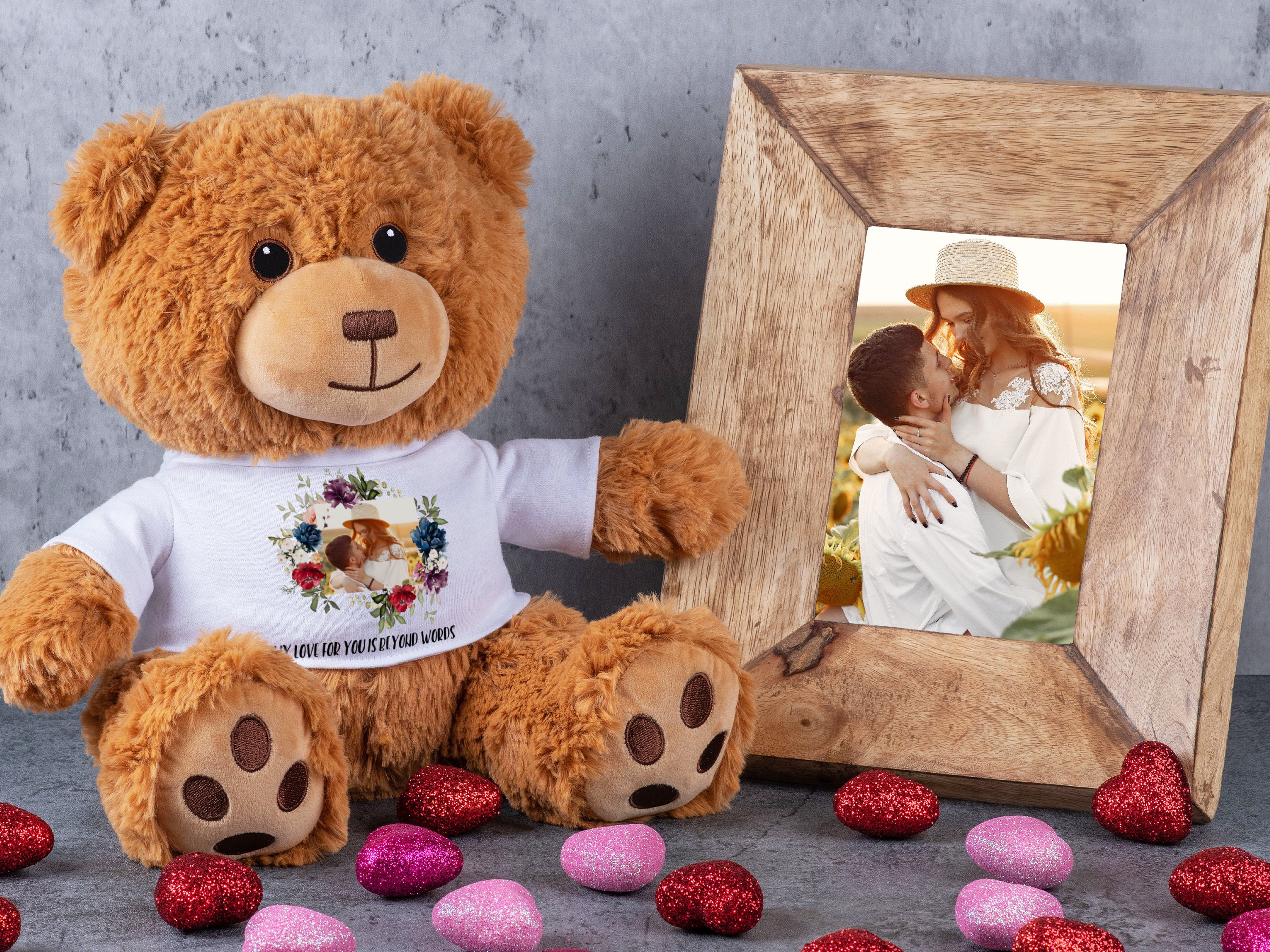 📸 **Custom Photo Delight:** Immortalize your favorite memories by adding a custom photo to your teddy bear's shirt, creating a unique and heartwarming gift.