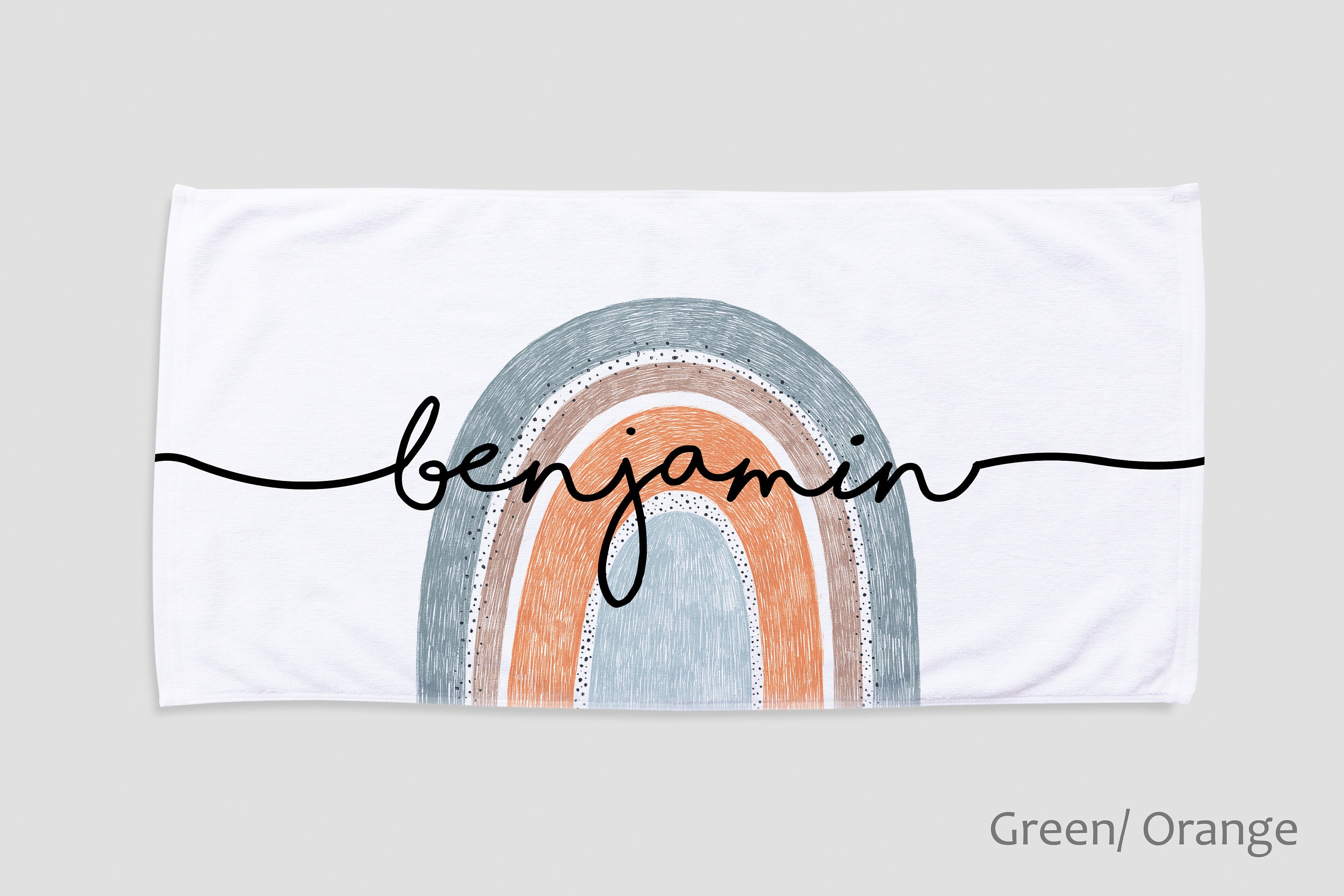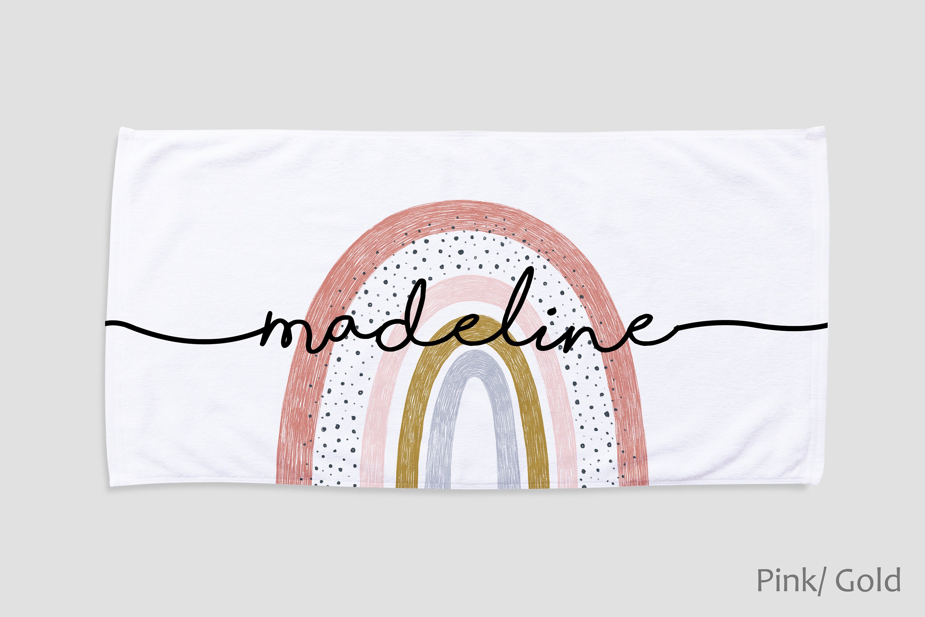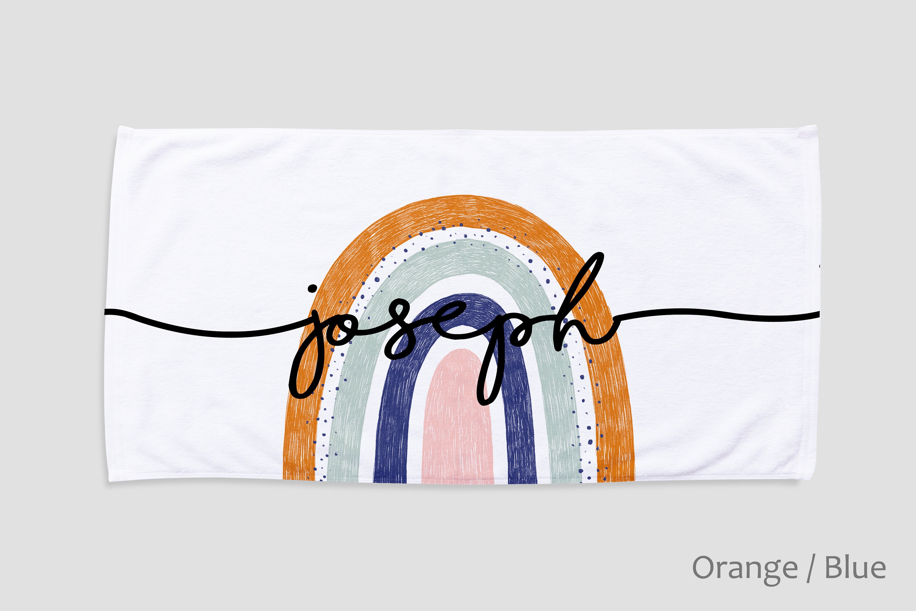 This large rainbow design custom high quality beach towel. It is made of absorbent, quick drying soft 50% cotton fabric, perfect for the beach, spa and home. The personalized beach towel features a super soft 50% polyester fleece on the front and a 50% cotton terry premium backing on the back. The printed graphic is printed from edge to edge on the fleece side in vibrant full color using our unique printing process, making it durable and will not fade or bleed! Our premium custom beach towels are available in two sizes*: 27.5" x 55" and 31.5" x 63". Perfect for relaxing and staying dry all day in style. The back is pure white soft absorbent cotton that dries quickly and easily.