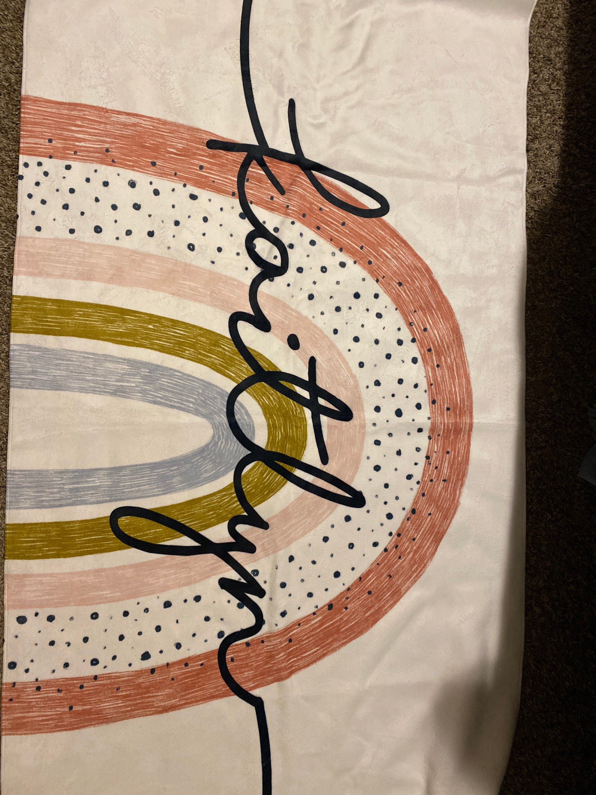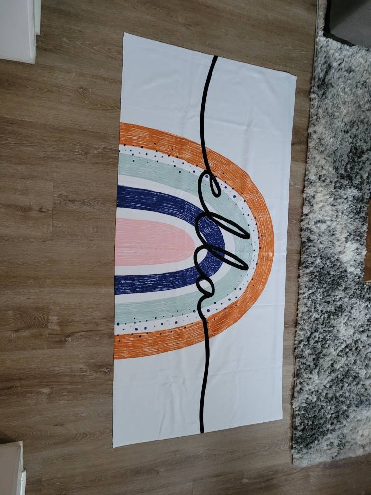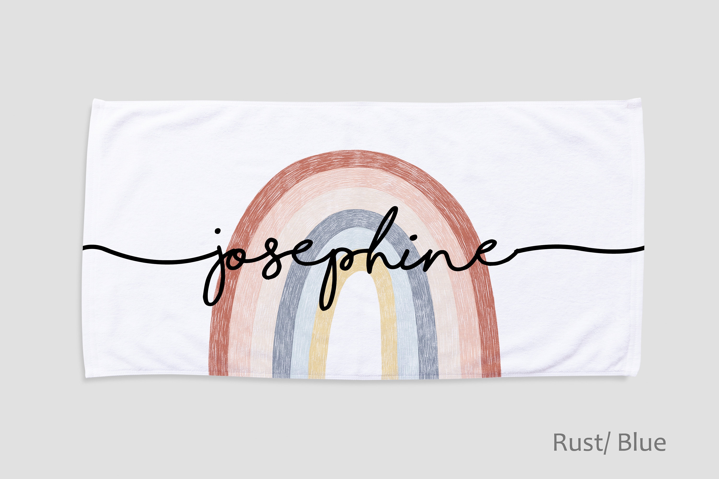 This large rainbow design custom high quality beach towel. It is made of absorbent, quick drying soft 50% cotton fabric, perfect for the beach, spa and home. The personalized beach towel features a super soft 50% polyester fleece on the front and a 50% cotton terry premium backing on the back. The printed graphic is printed from edge to edge on the fleece side in vibrant full color using our unique printing process, making it durable and will not fade or bleed! Our premium custom beach towels are available in two sizes*: 27.5" x 55" and 31.5" x 63". Perfect for relaxing and staying dry all day in style. The back is pure white soft absorbent cotton that dries quickly and easily.