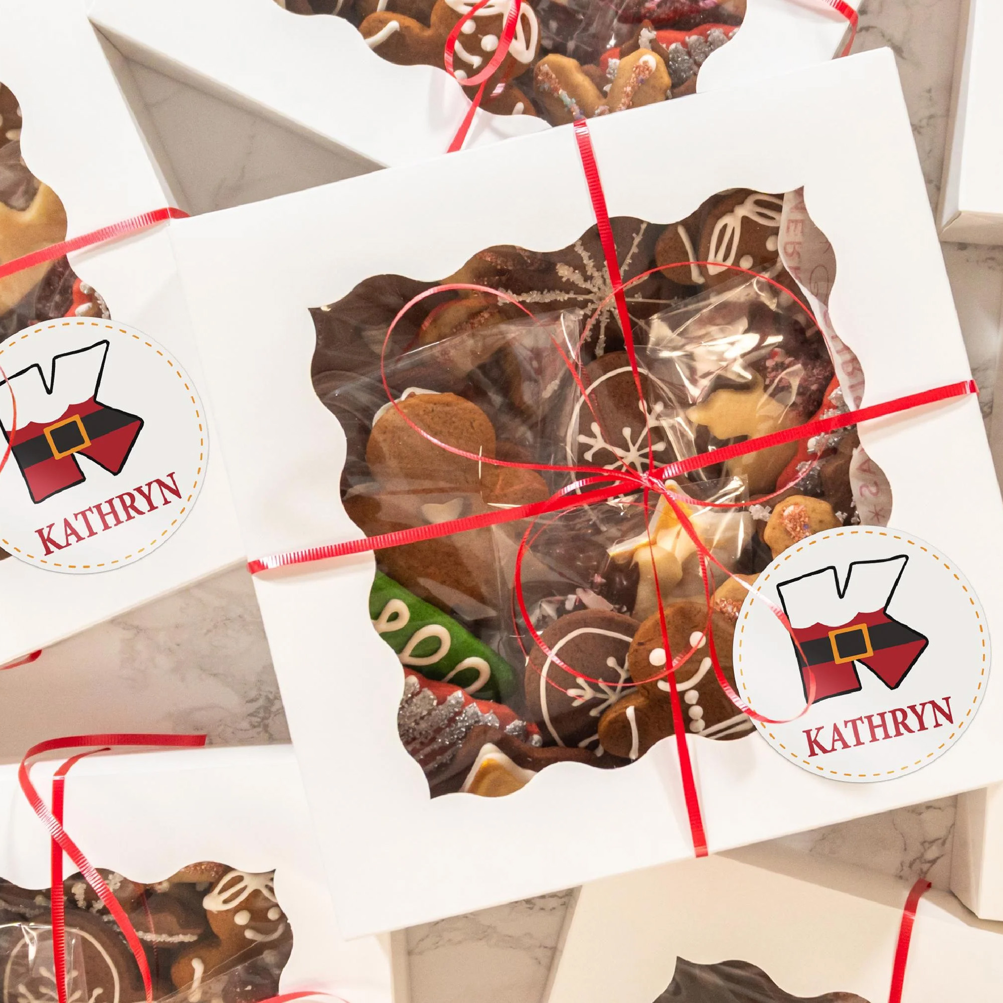 Add a special touch to your holiday gifts with our adorable Christmas round stickers for kids! Each sticker features a fun, festive design with your child's initials. Choose from Santa, Elf, Gingerbread, or Pine Tree themes to match your holiday spirit.