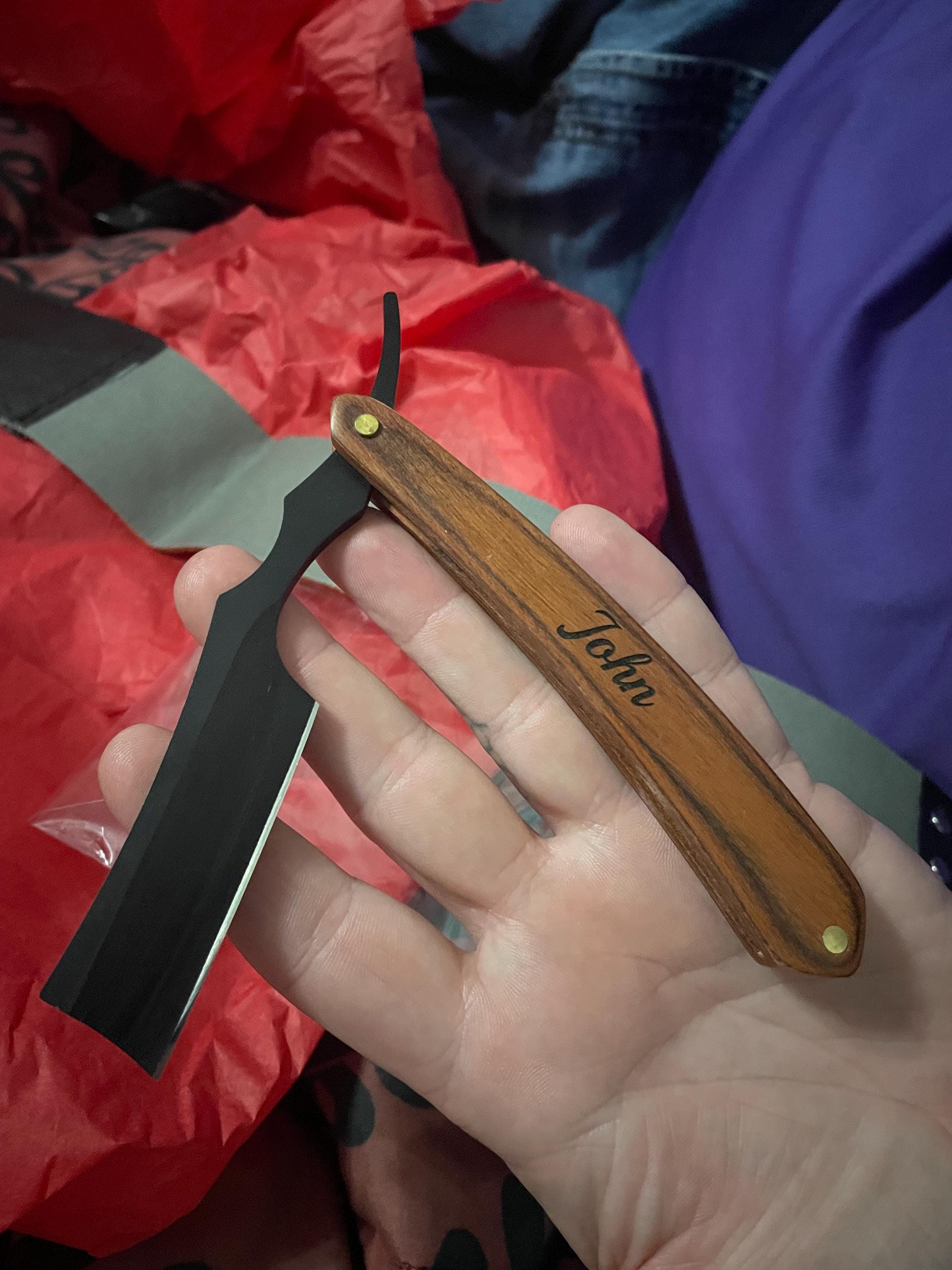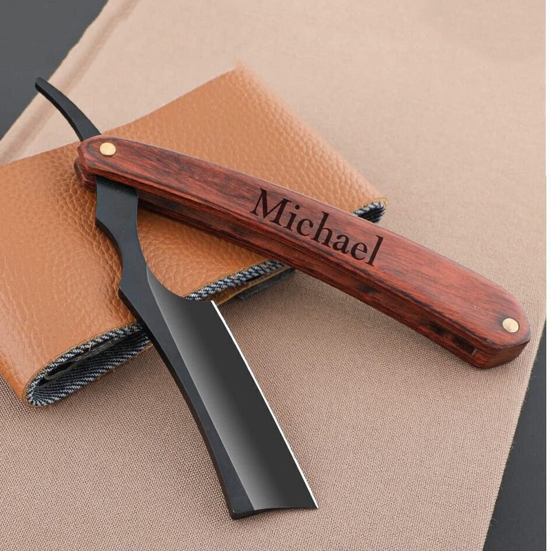 Give the dapper gentleman in your life the perfect grooming accessory with our personalized wooden straight razor.