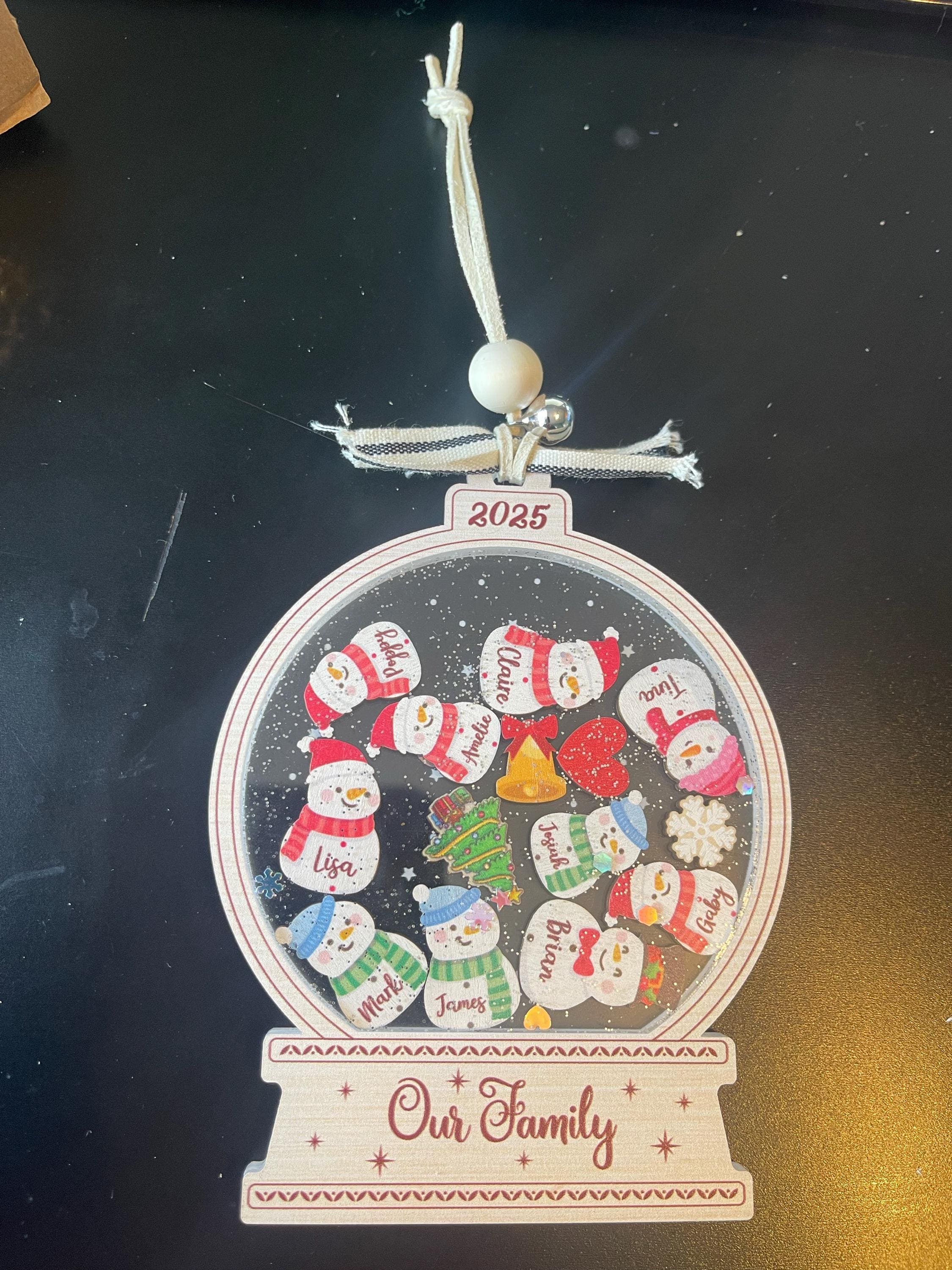 Up to 10 names can be customized. Christmas tree, snowflake, bell and heart shapes are available by default.