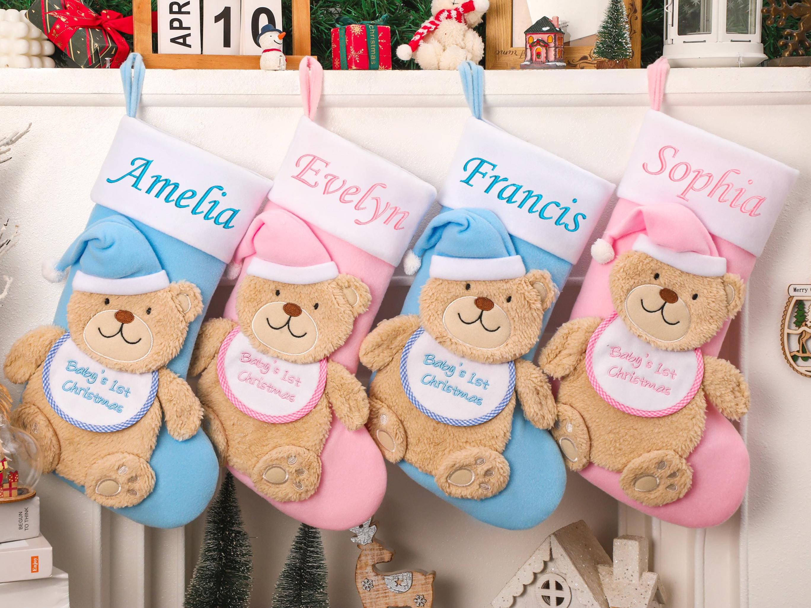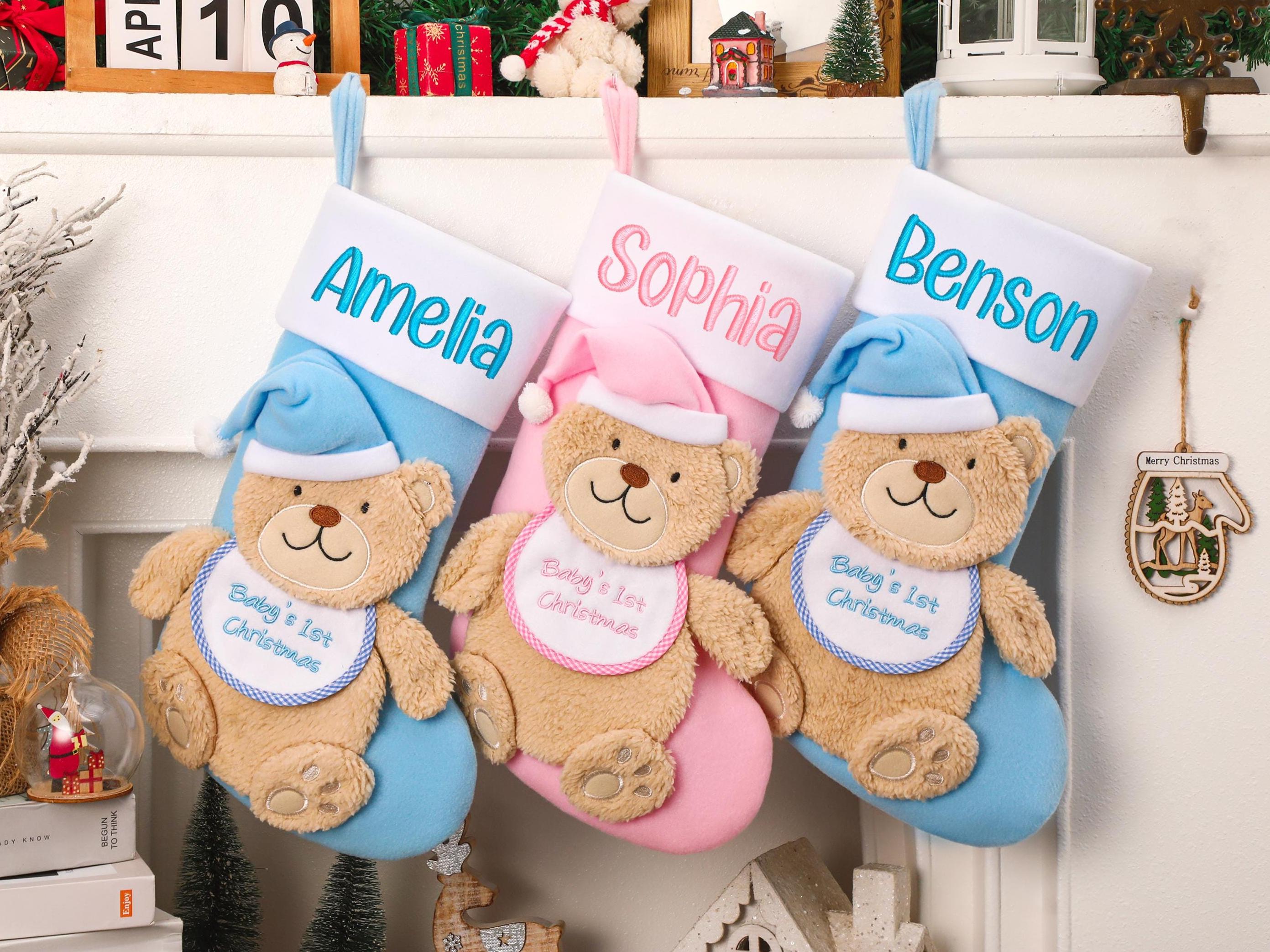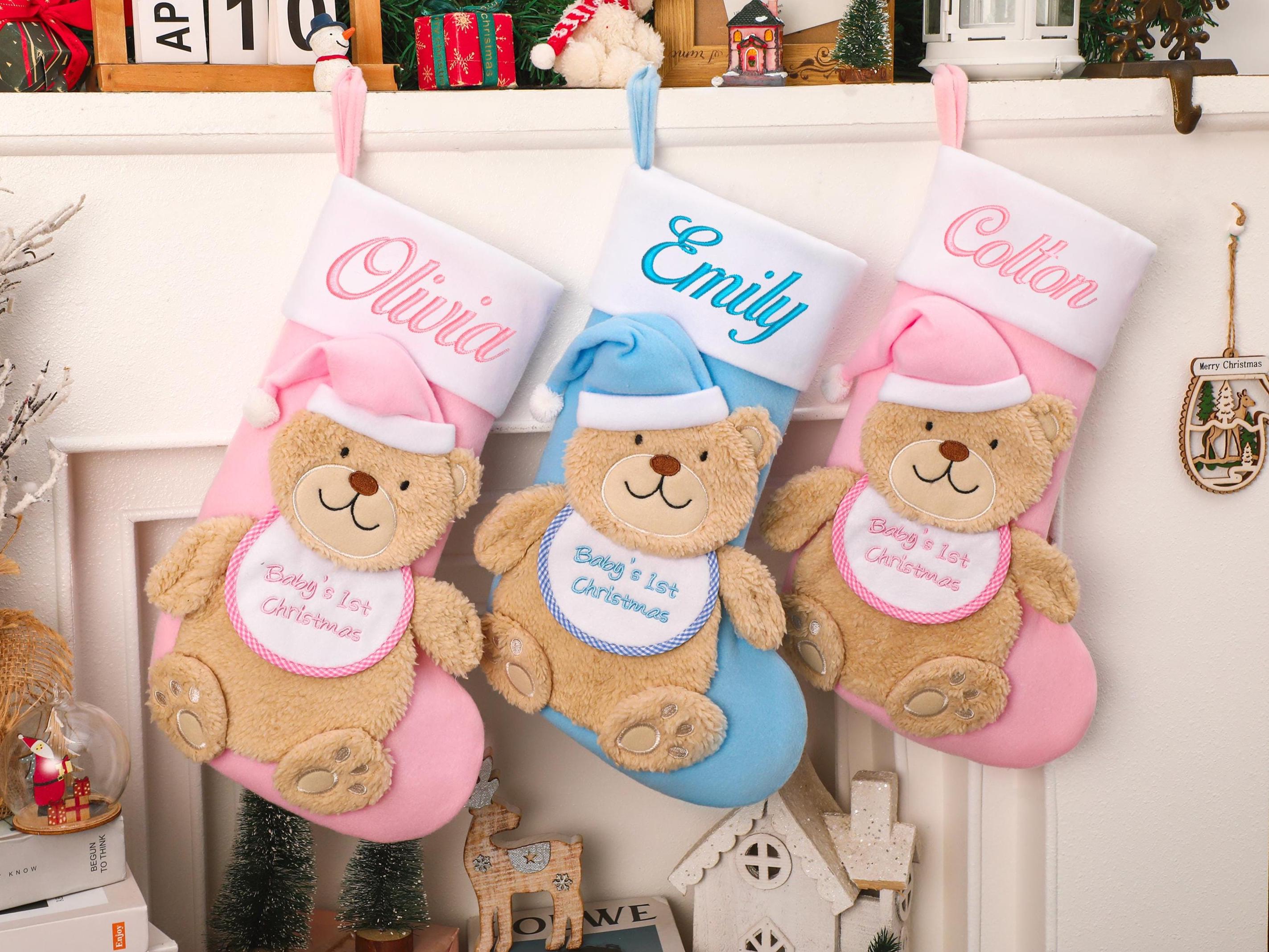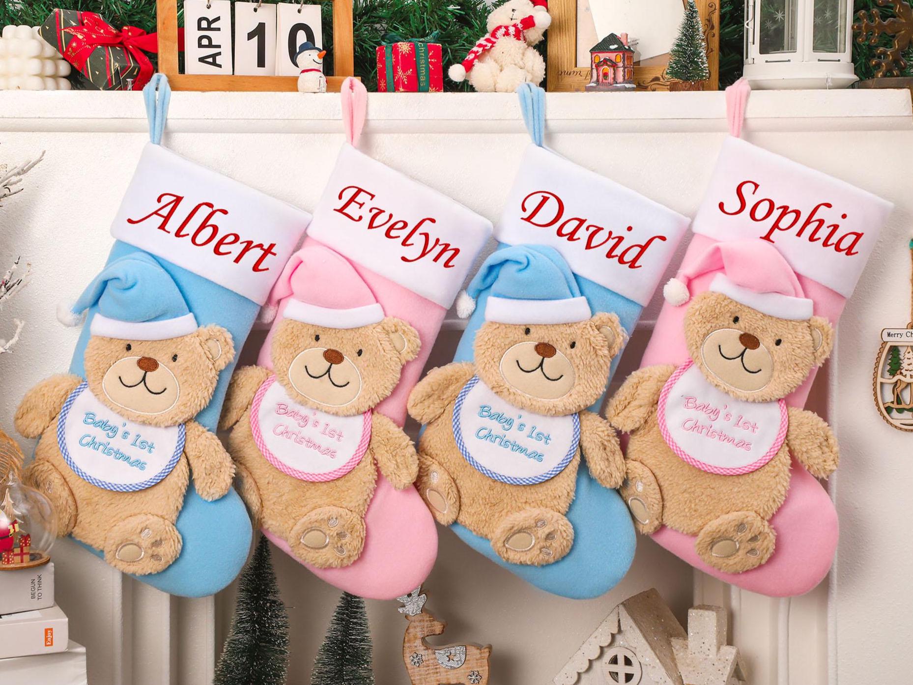 Our 3D Teddy Bear Christmas Stocking, featuring a cute, three-dimensional teddy bear design, instantly captures children's hearts. This Christmas, let the teddy bear say “I love you” for Santa Claus! Hang it by the bed or under the Christmas tree—it's not just holiday decor, but the first joyful scream of delight when your child wakes up in the morning! Made from Class A infant-grade skin-friendly fabric, free from fluorescent agents and using eco-friendly dyeing, it won't shed even when chewed or torn. Moms can rest assured, and babies will be happy—let Christmas gifts start with socks filled with tender care!
