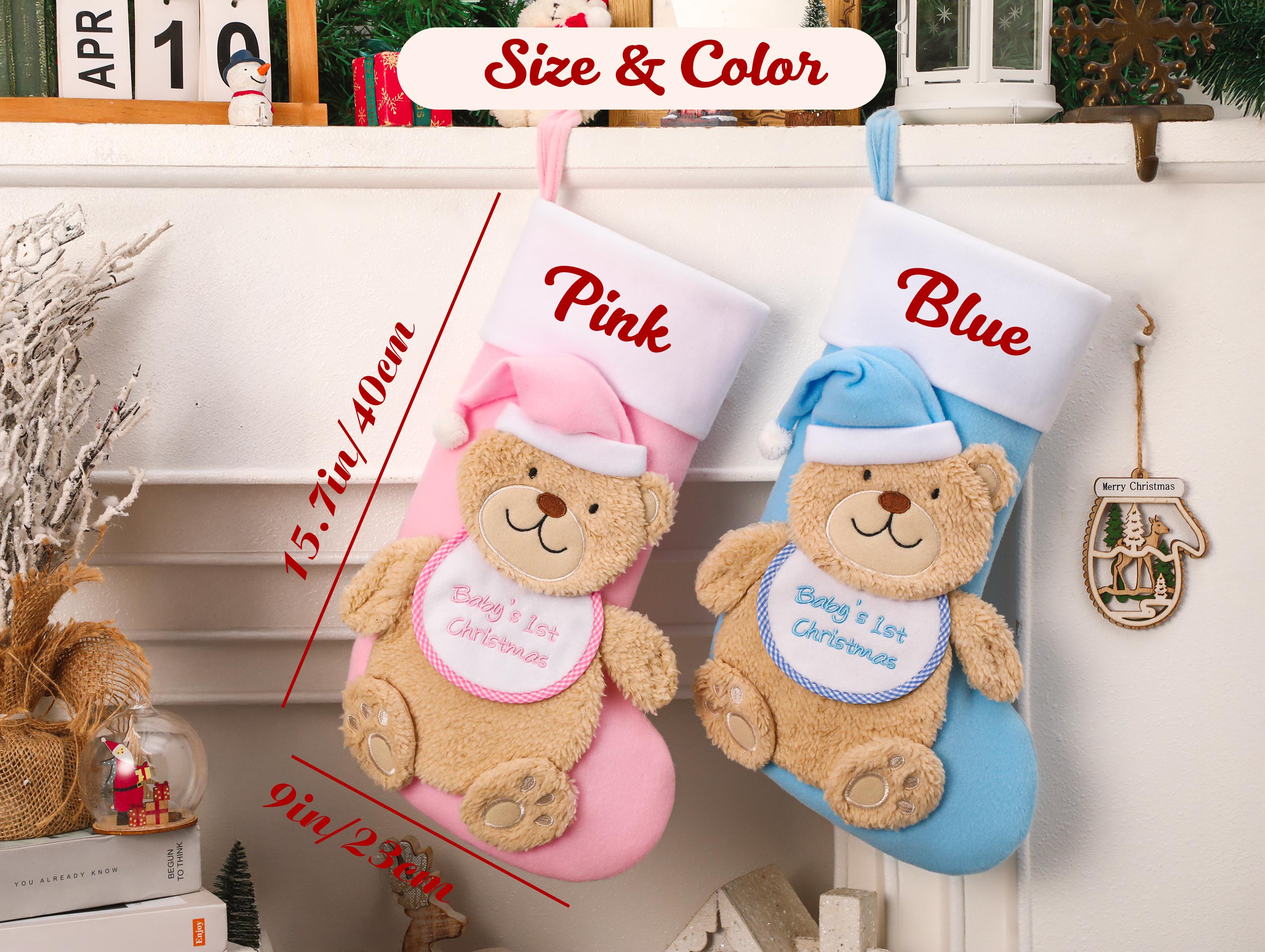 Two color styles: Two adorable Christmas stockings in pink and blue, so both sons and daughters can have their favorite color.