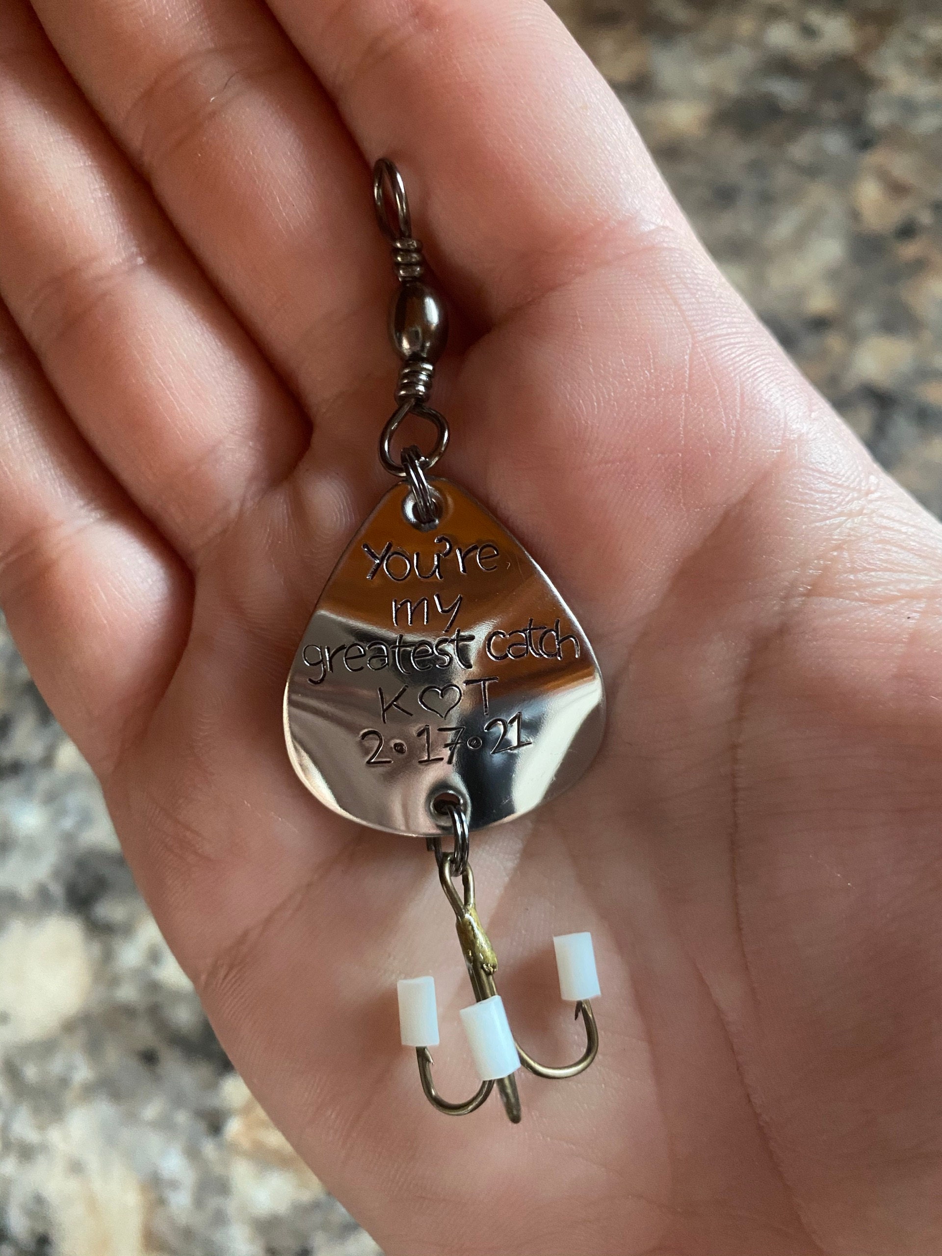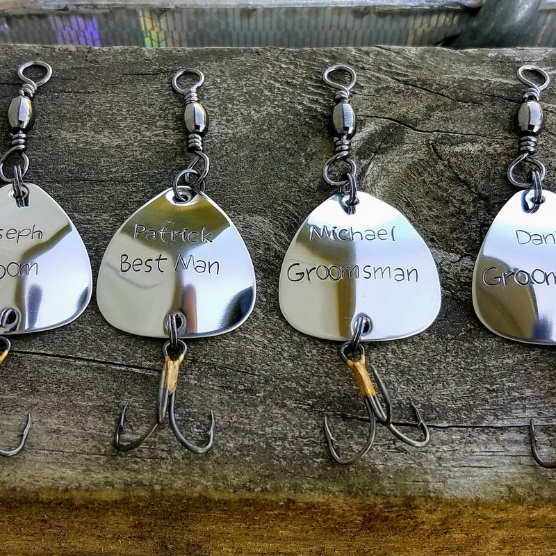 These are a great way to give a special gift to the fishing fan in your life. They are also perfect for best man or best woman gifts too! Get them personalized with your special message or date on them. Just remember... as long as it fits I can personalize it with any words or dates!