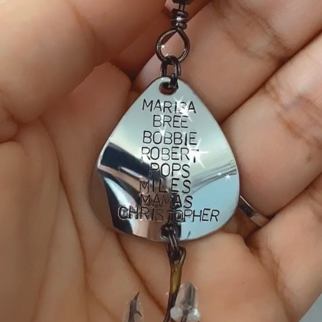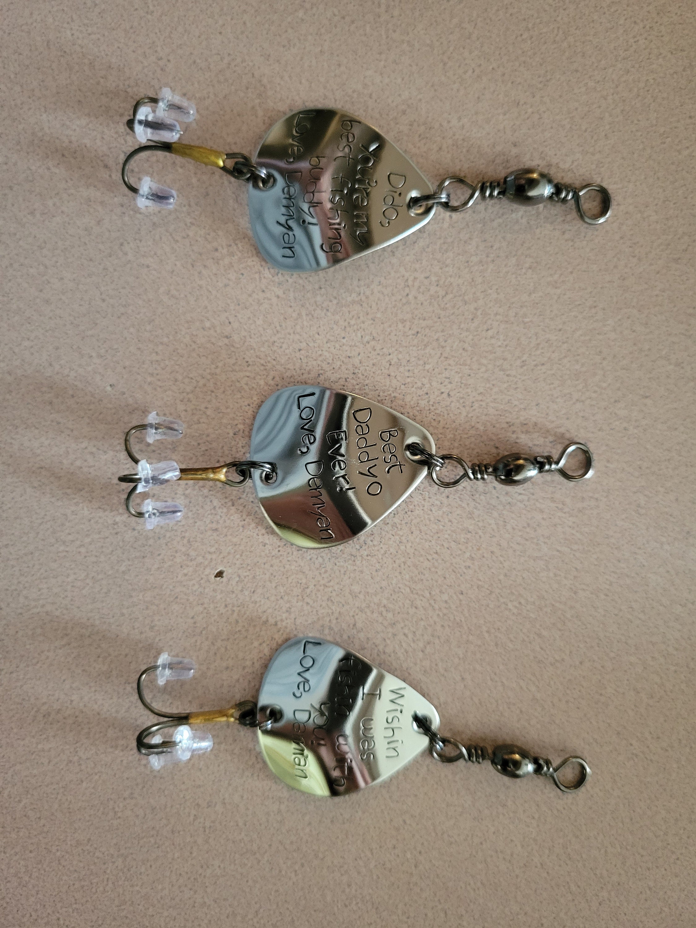 Names or phrase that you would like stamped (Exactly as you want them stamped) on each lure.