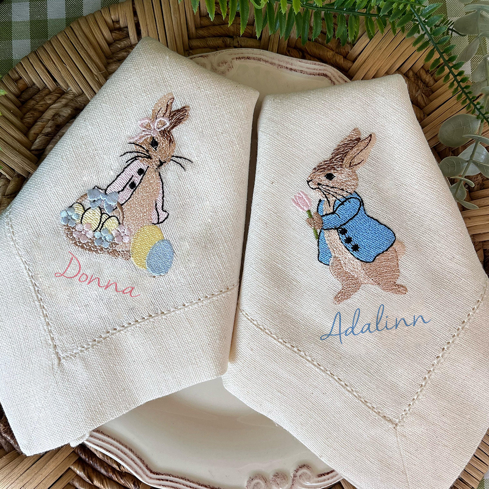 Elegant Embroidery: Each napkin features a delightful Peter Rabbit design, perfect for adding a classic touch to your Easter celebration.