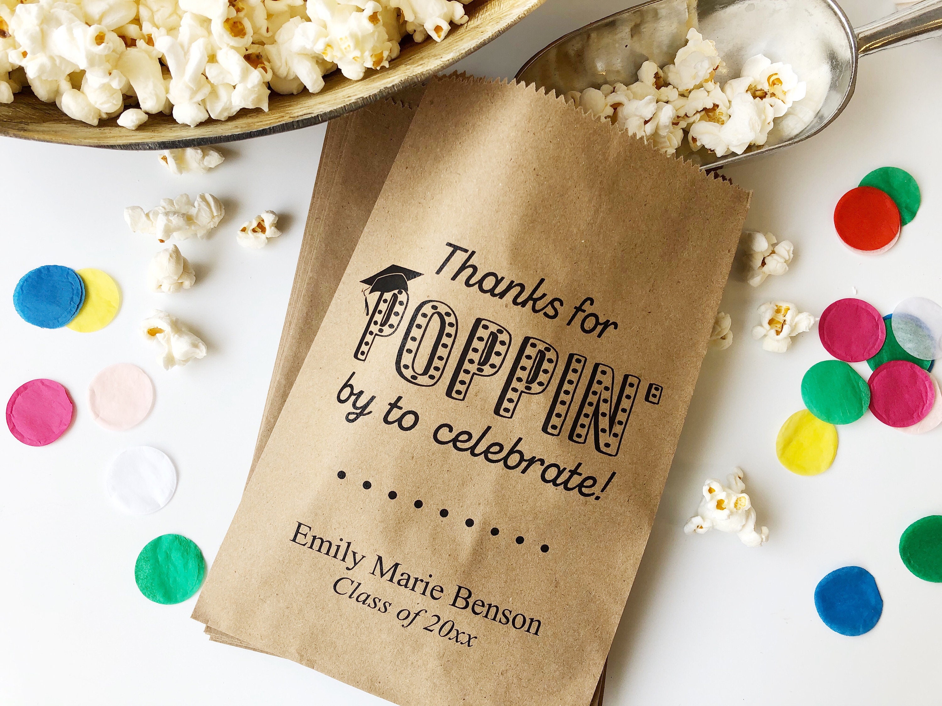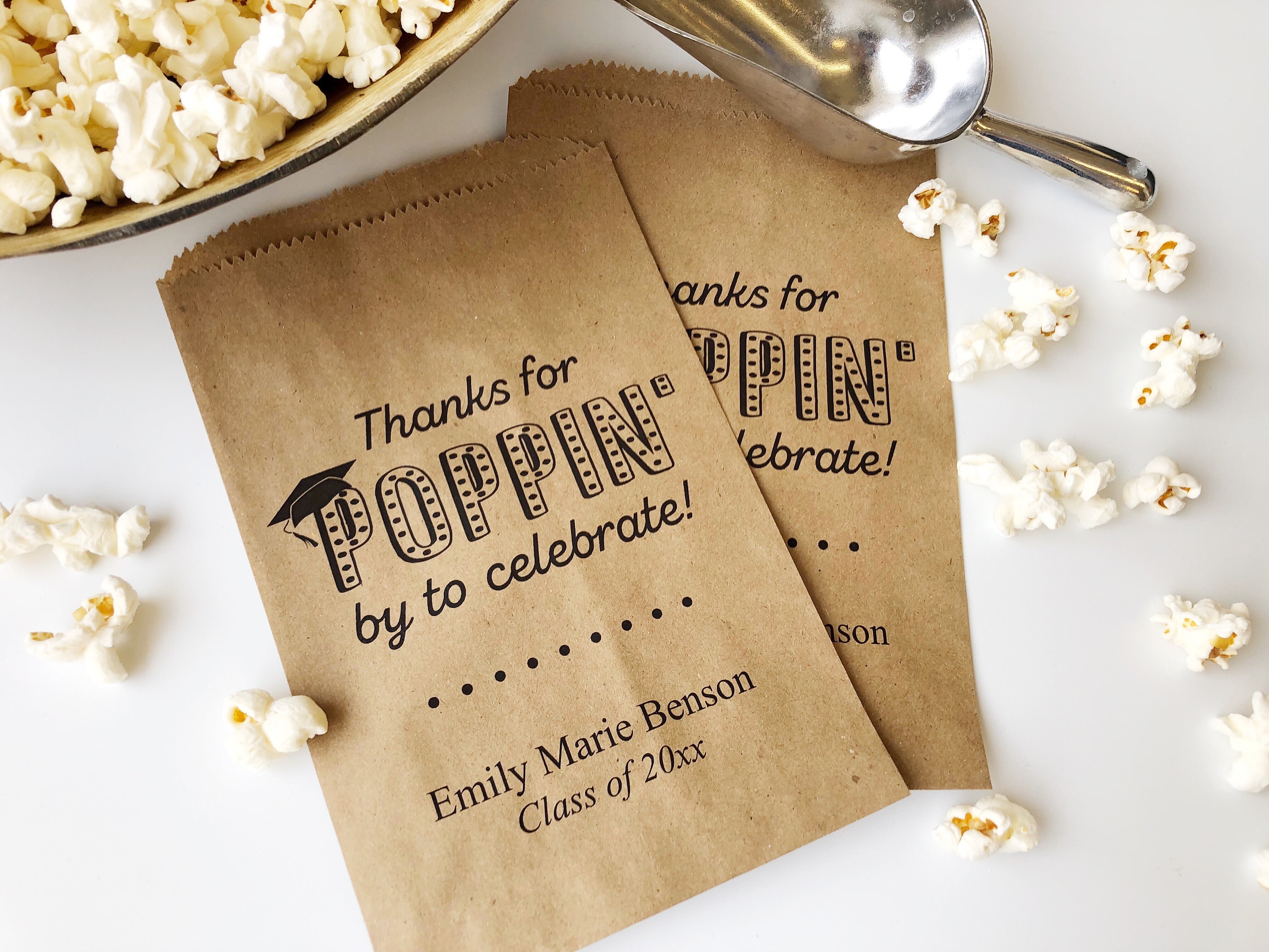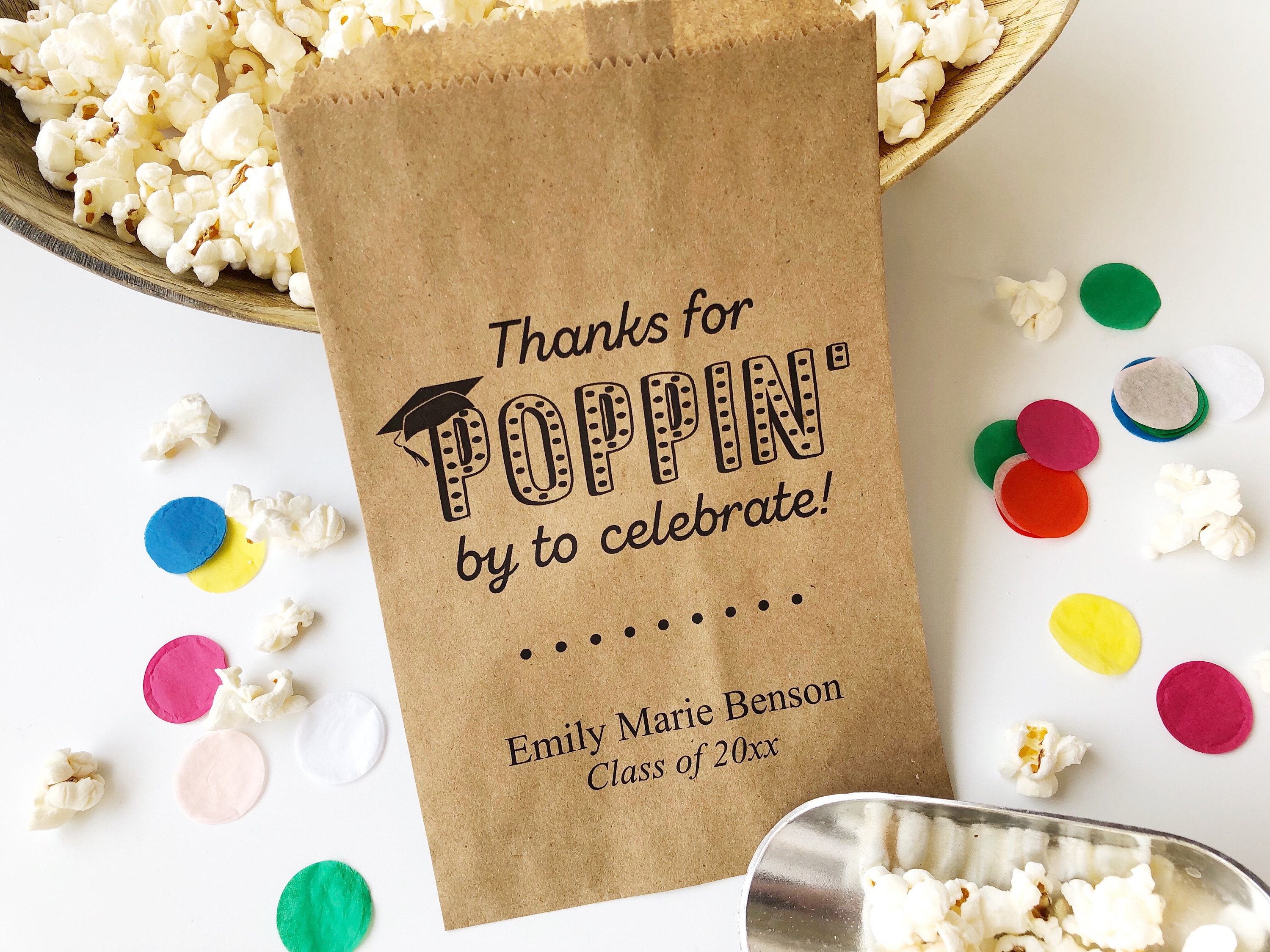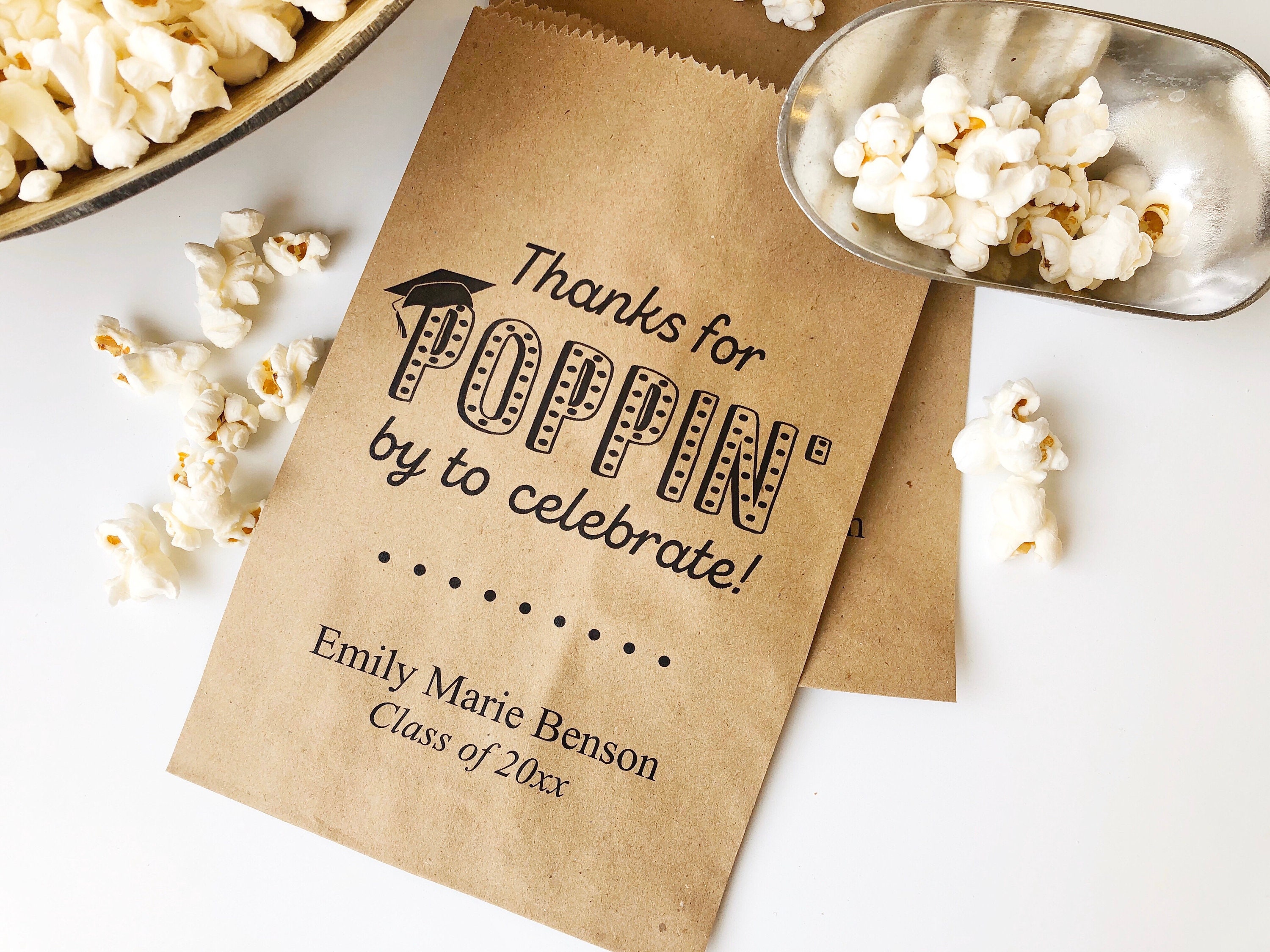 Make your graduation party extra special with these personalized popcorn bags. These party favor bags are the perfect addition to your graduation decorations. Whether you are celebrating a boy or girl's graduation, these bags are a great graduation party idea. Fill them with delicious popcorn or use them as cracker bags. They are the best popcorn bags for your popcorn bar and make perfect popcorn favors. Get these popcorn favor bags and make your graduation party a memorable one!