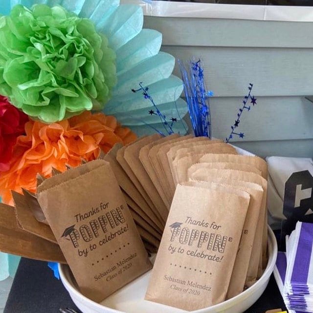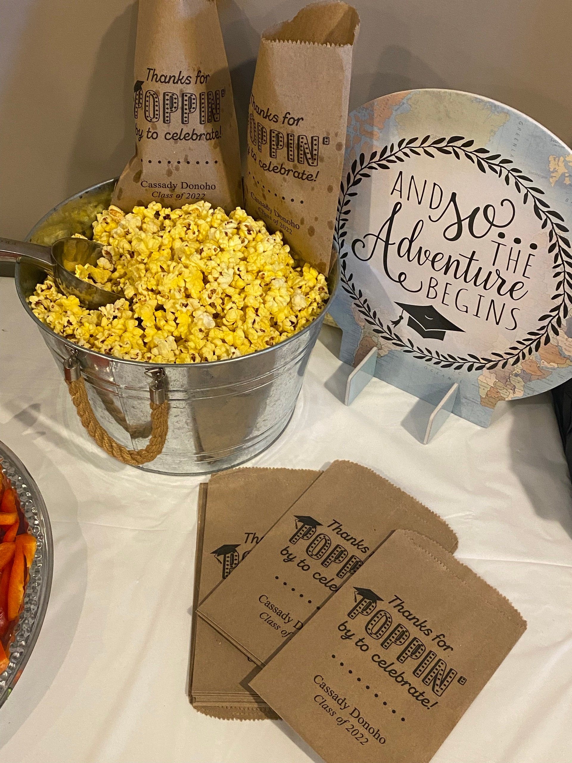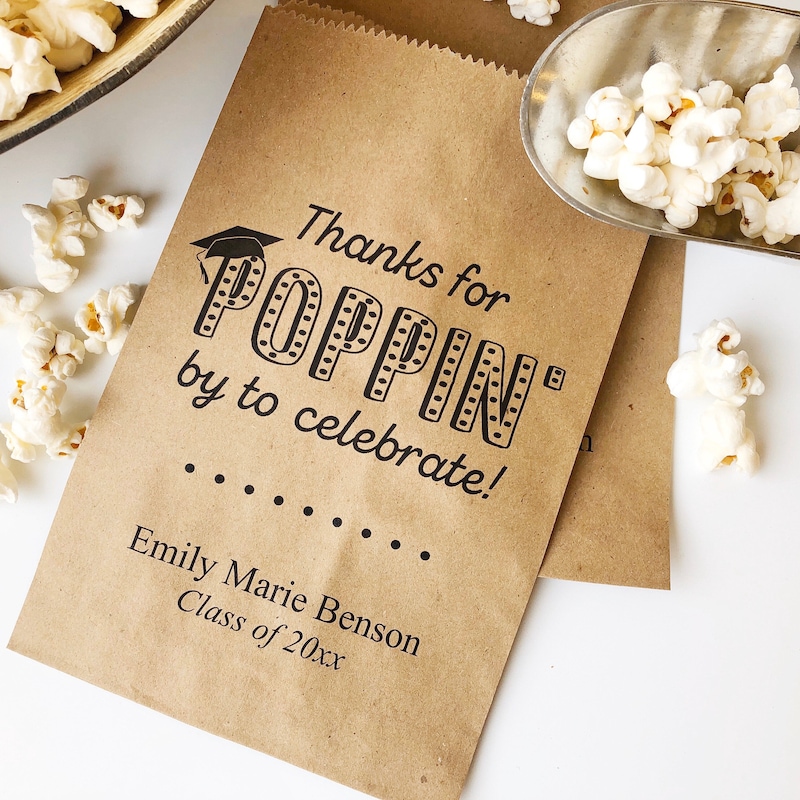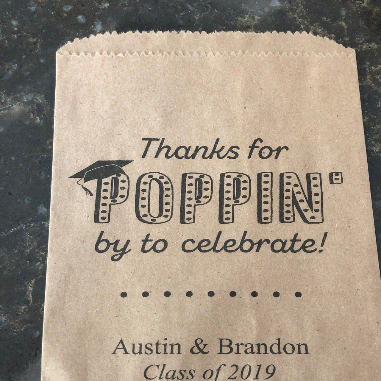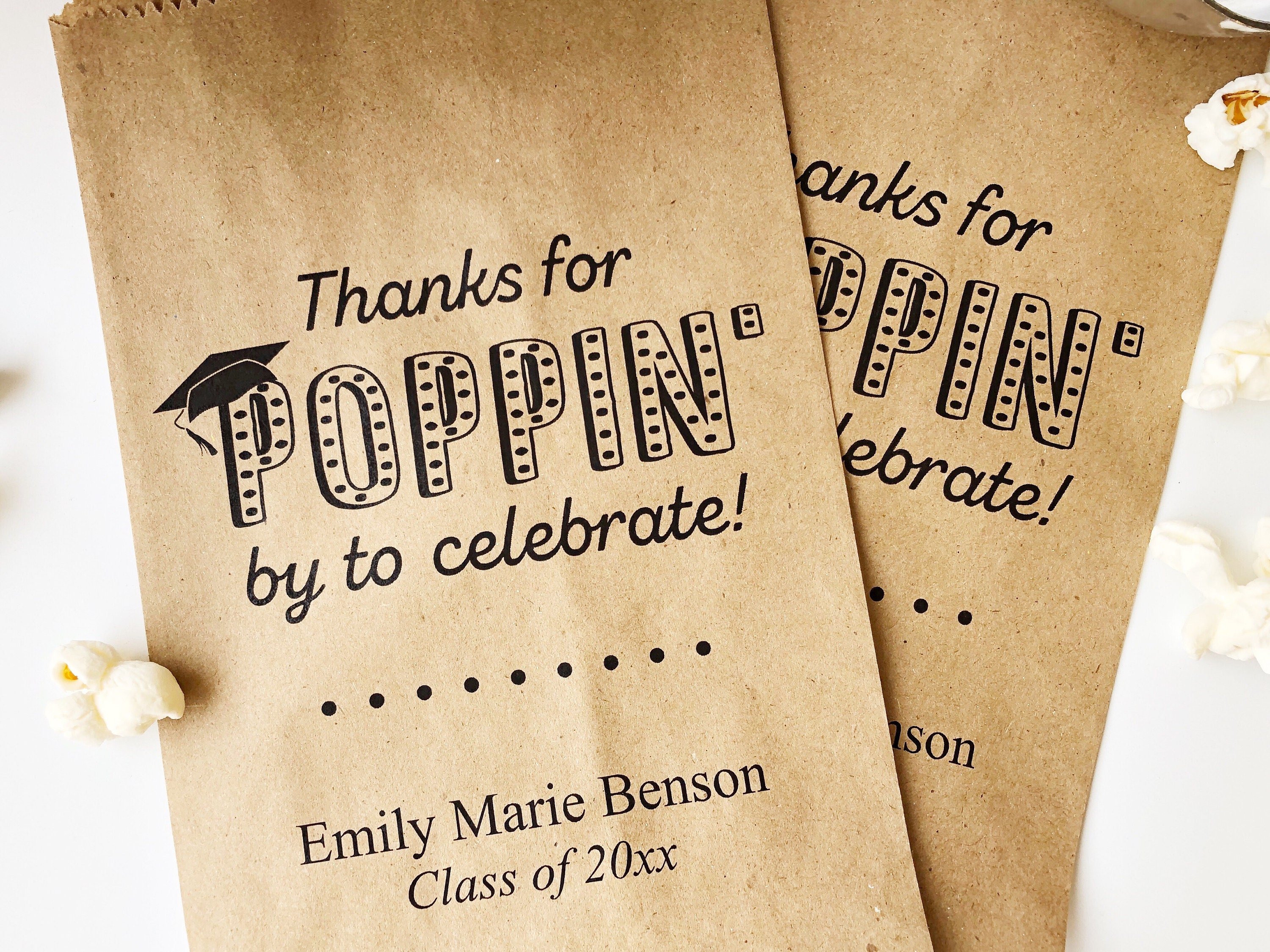 Make your graduation party extra special with these personalized popcorn bags. These party favor bags are the perfect addition to your graduation decorations. Whether you are celebrating a boy or girl's graduation, these bags are a great graduation party idea. Fill them with delicious popcorn or use them as cracker bags. They are the best popcorn bags for your popcorn bar and make perfect popcorn favors. Get these popcorn favor bags and make your graduation party a memorable one!