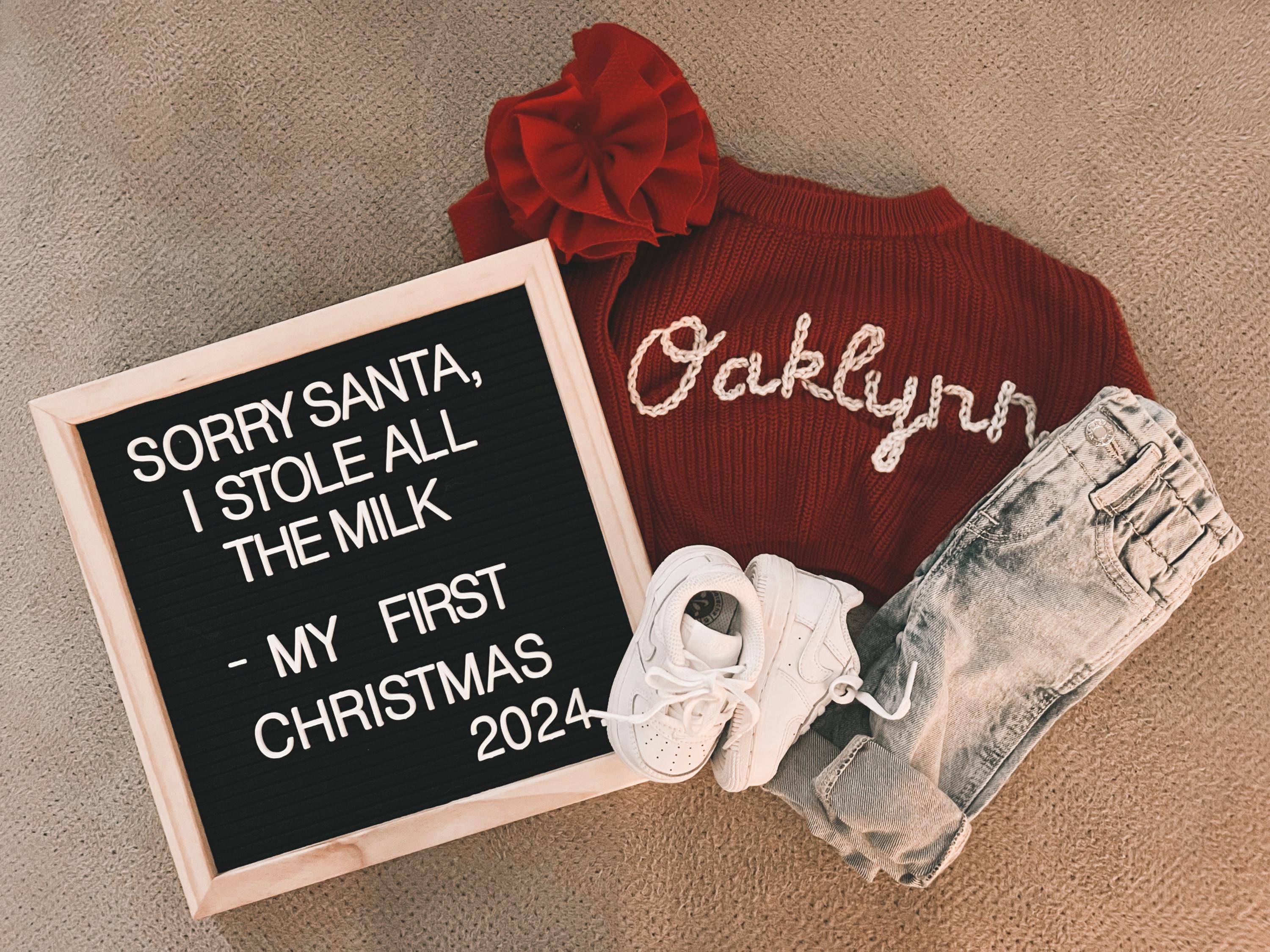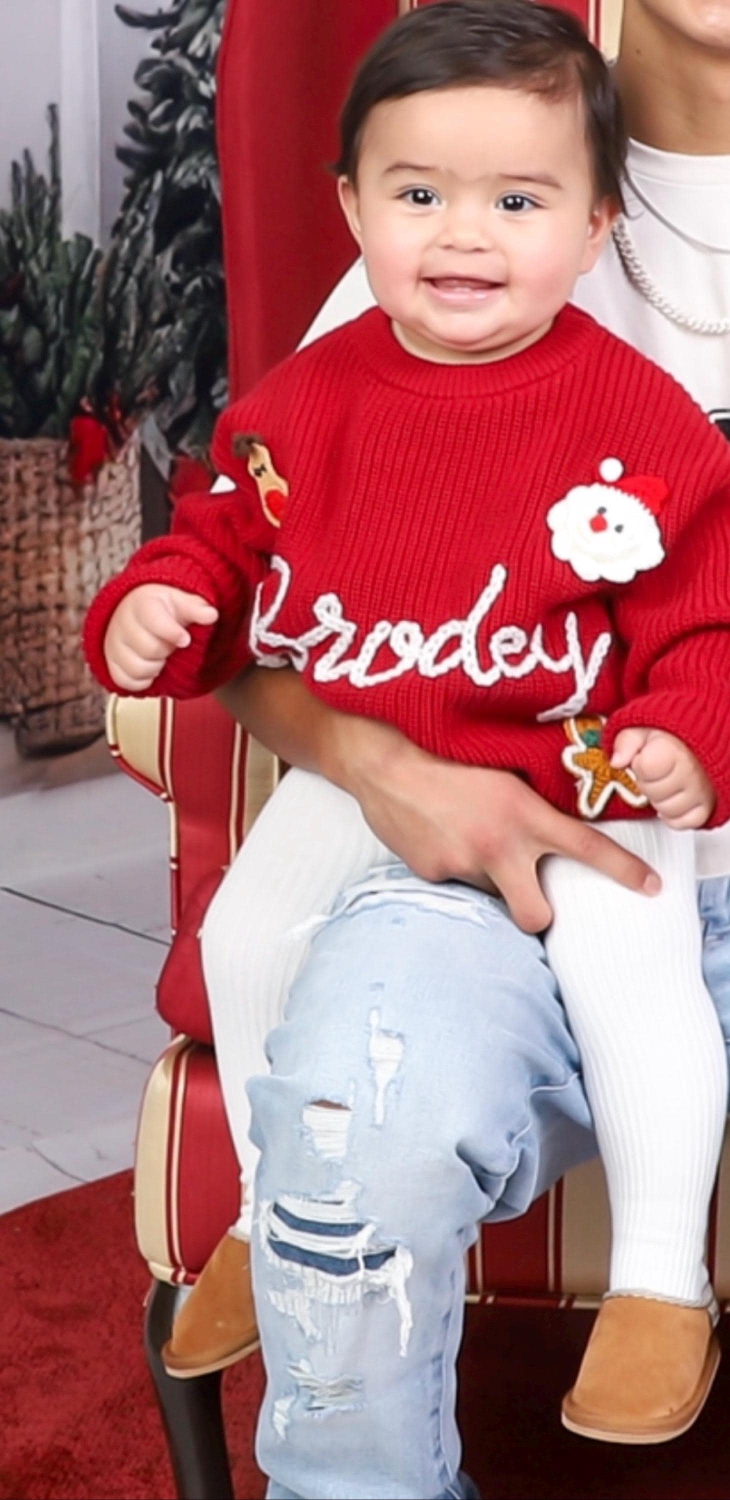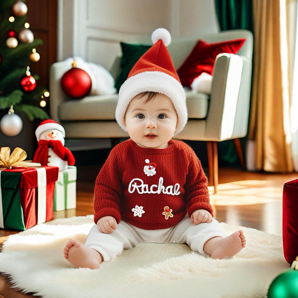 Personalized Name Embroidery: Make this Christmas outfit truly unique by adding your baby’s name! We’ll stitch the name onto the sweater using beautiful embroidery, creating a one-of-a-kind piece for your little one. ✨