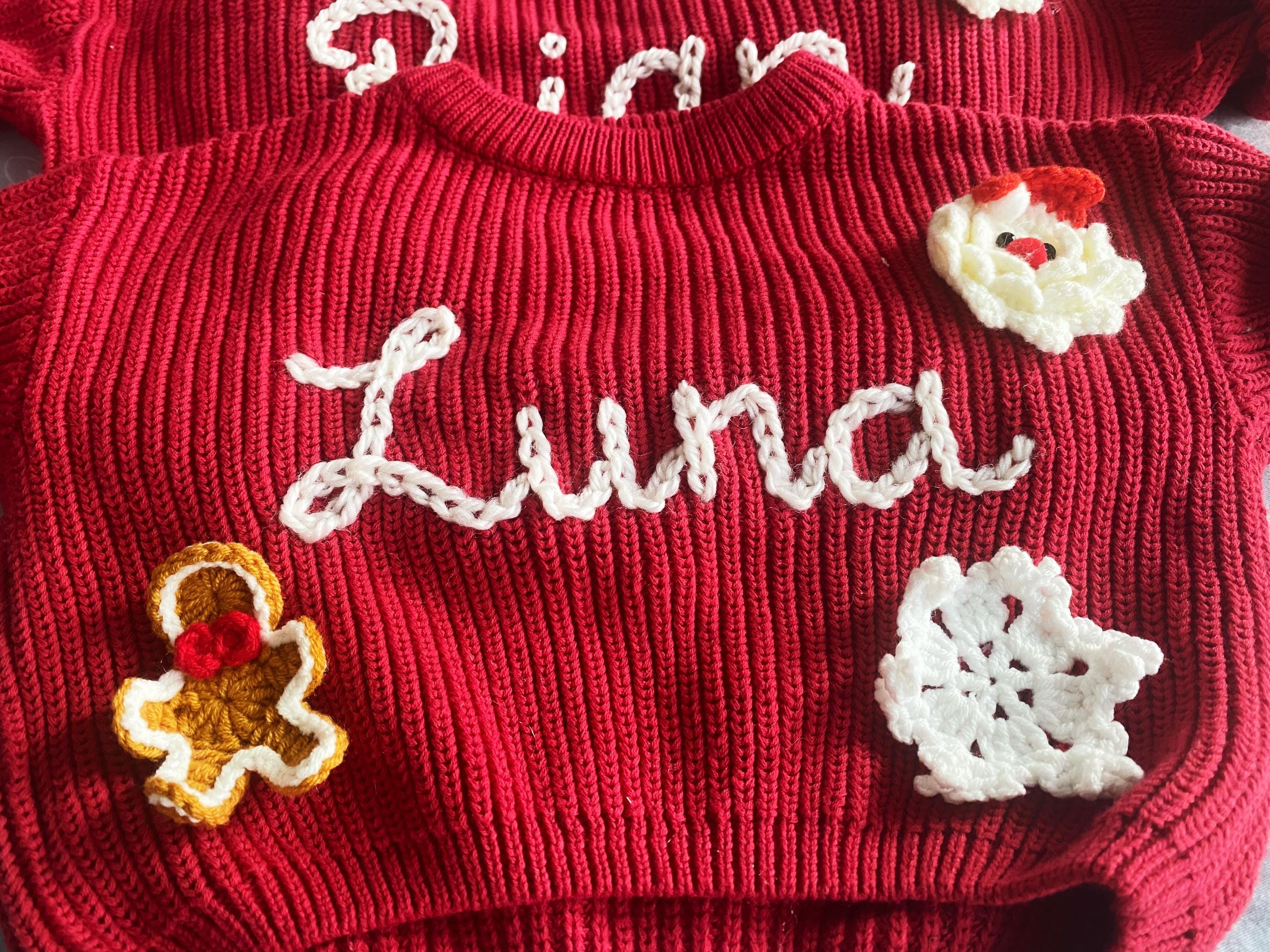 Red Baby Christmas Sweater|Personalized Santa Sweater with Name|Holiday Knit Outfit for Babies|Baby's First Christmas Outfit|Christmas Gift