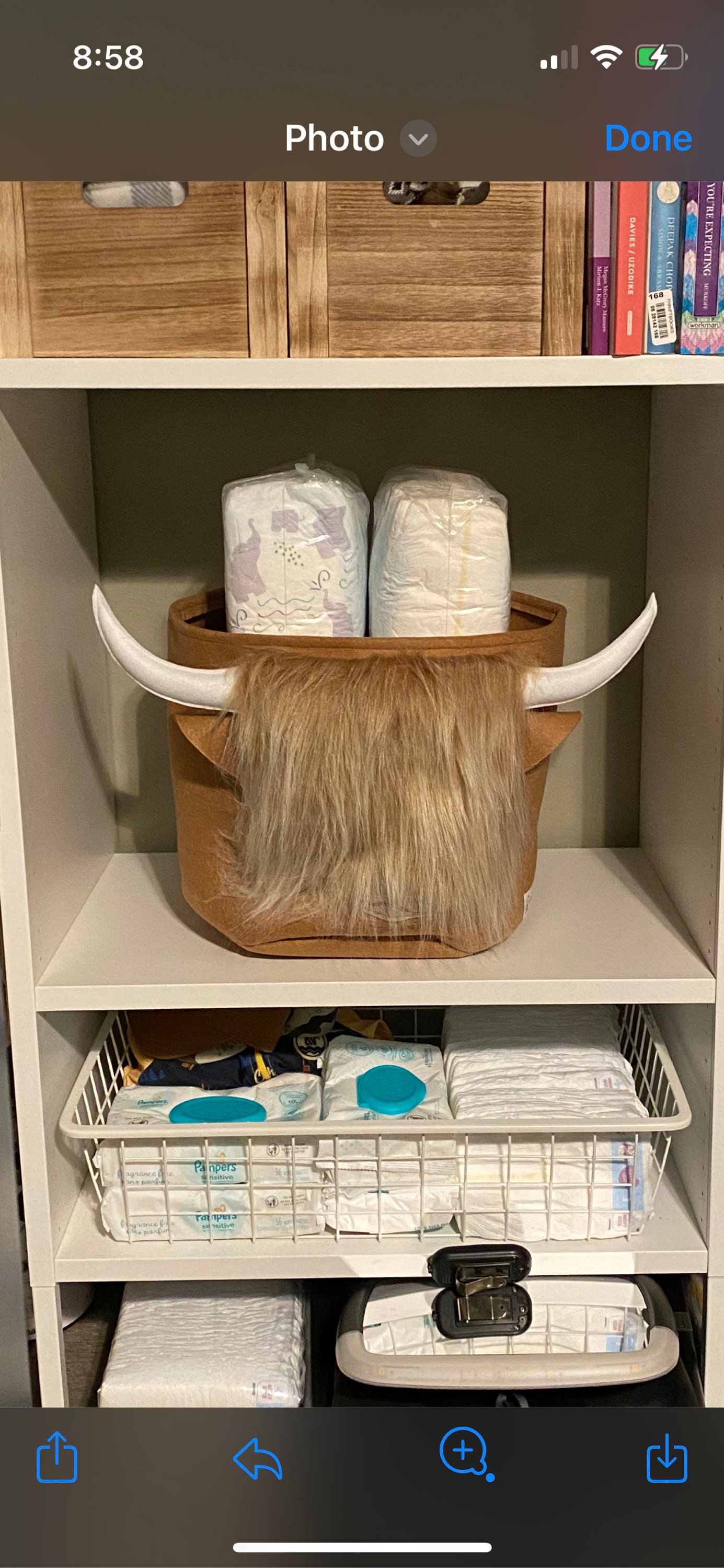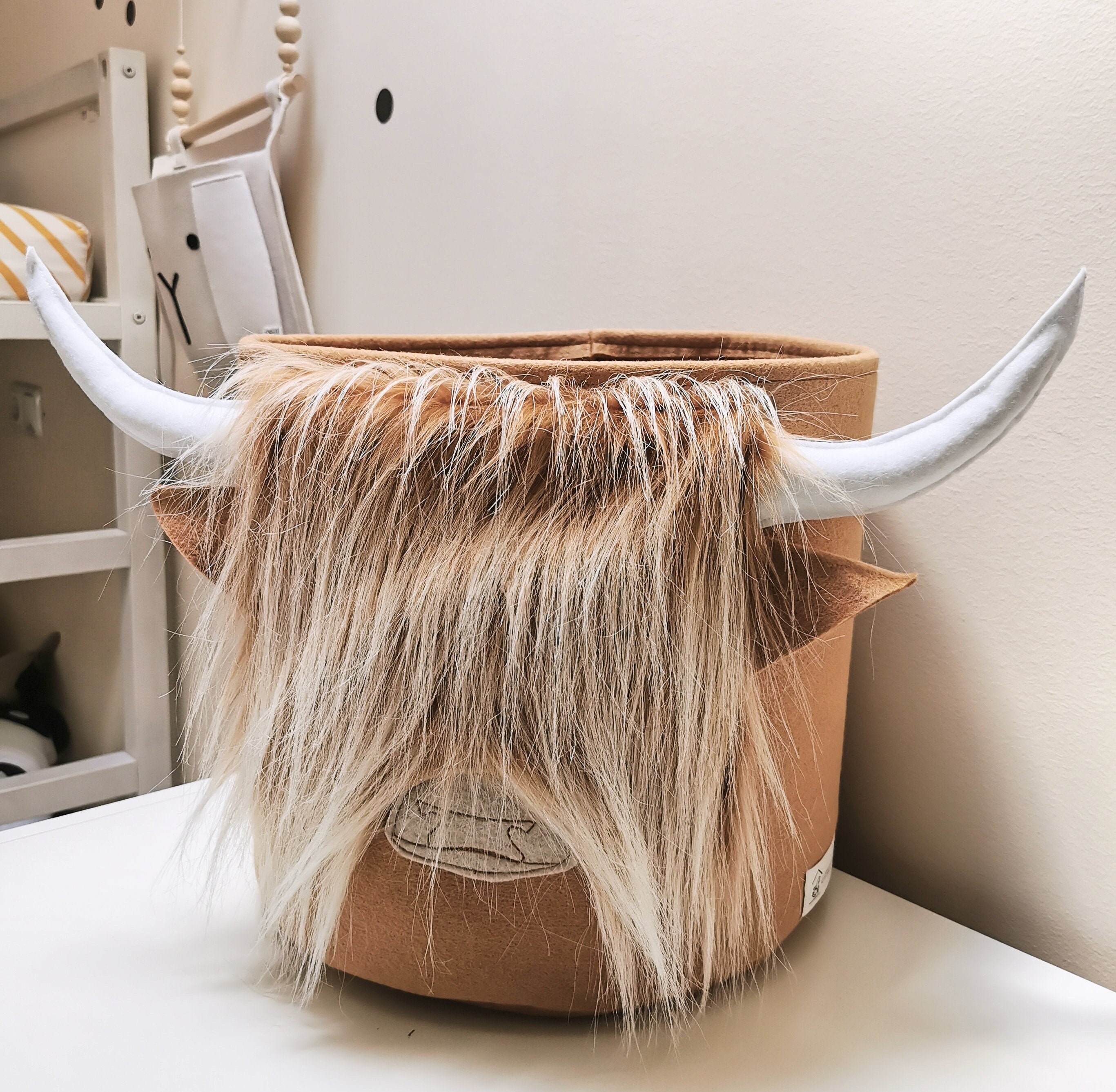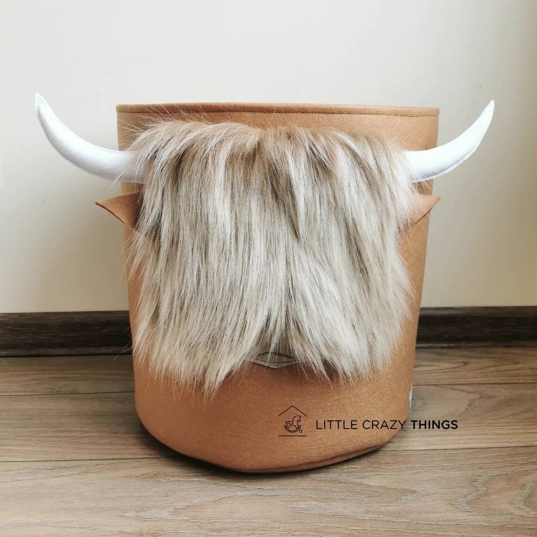 Perfect for kids room, nursery storage, childrens playroom. This funny basket at the same time is beautiful woodland or village room decor. The size is perfect, you can use it on the floor or on the shelf. It is great for small toys, lego, stuff or diapers. It could be amazing gift for baby.