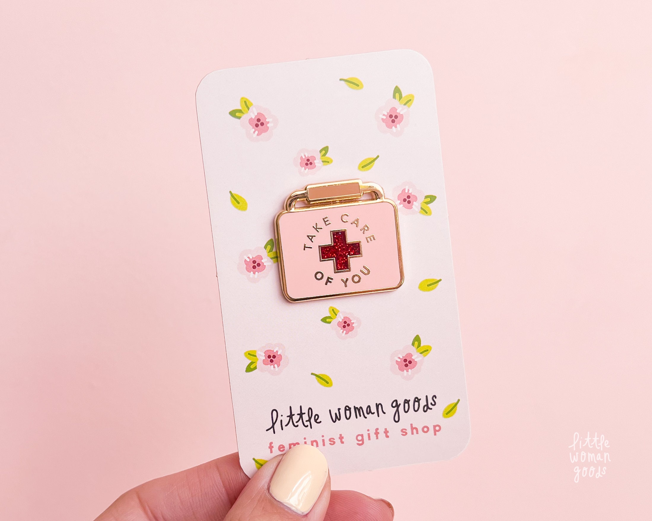 Self Care - Take Care Of You Enamel Pin. Original Feminist Artwork.