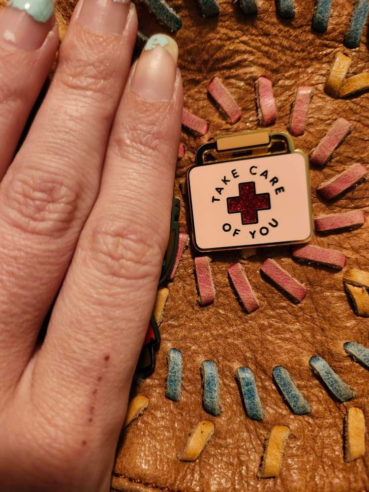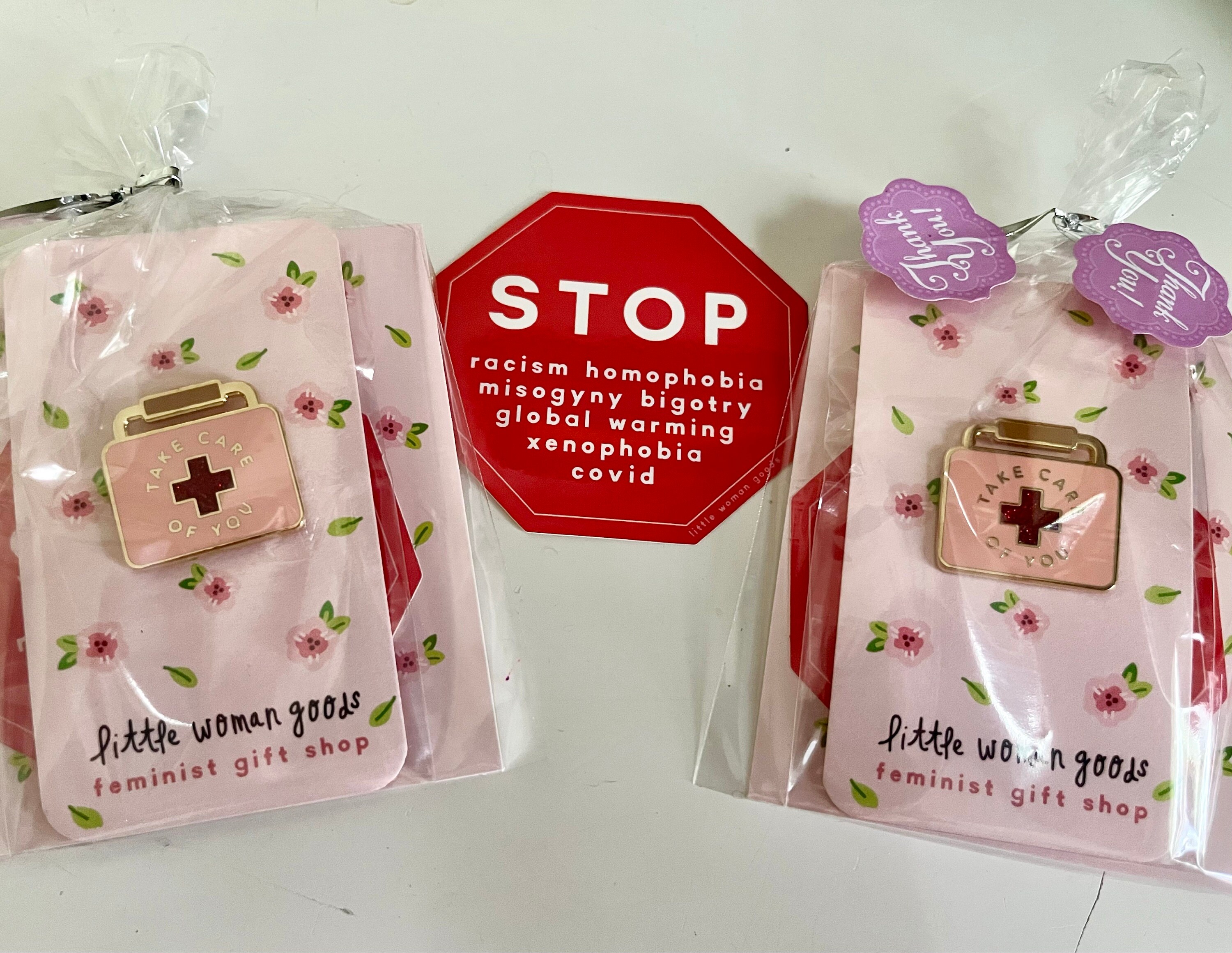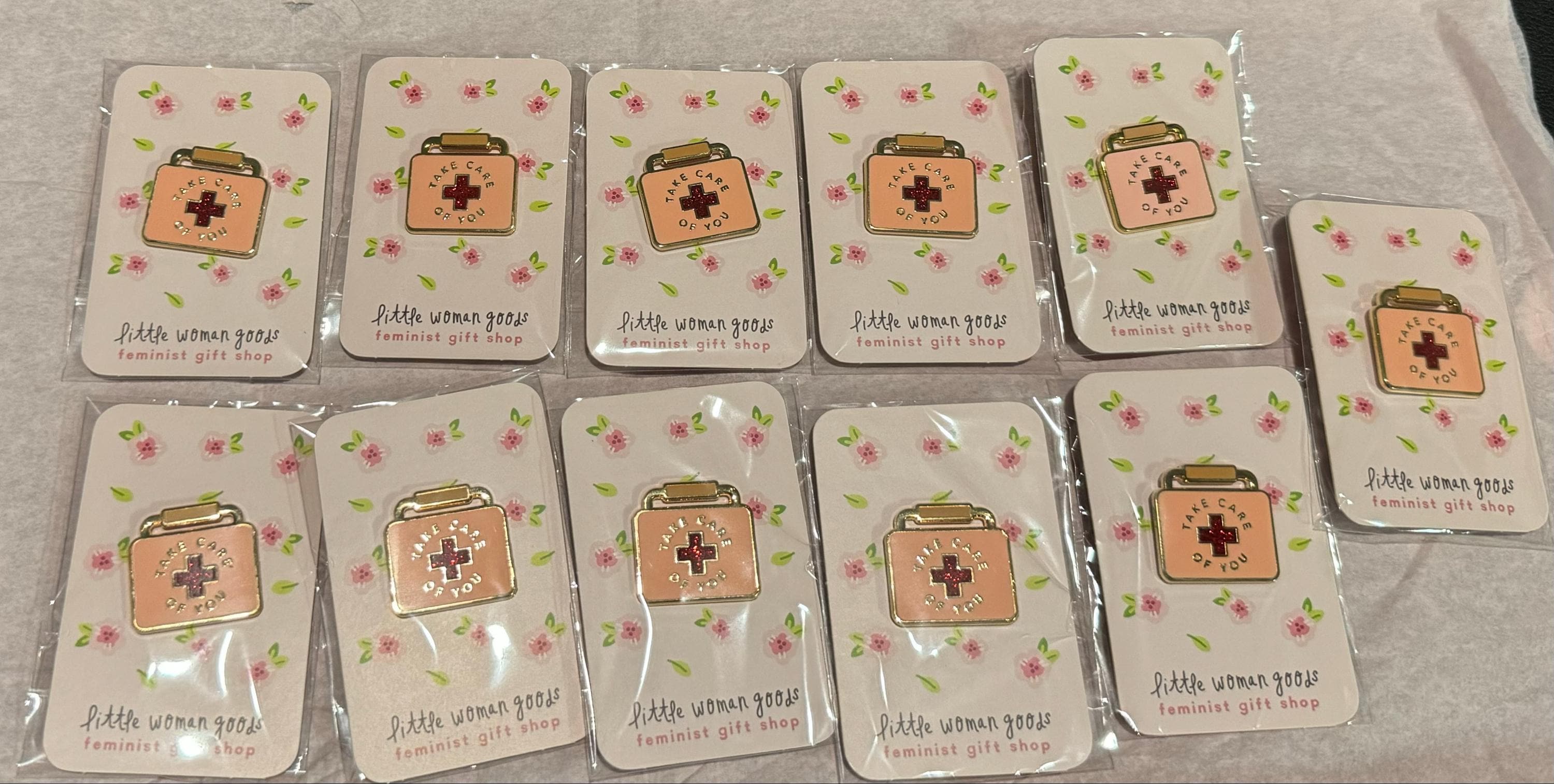 Take Care of You Enamel Pin Set: Buy One, Get One Free, 50% Off! Buy two pins for only $18, one for yourself and one for a friend! Pin Set includes 2 pins of the same design (Take Care of You Enamel Pin).
