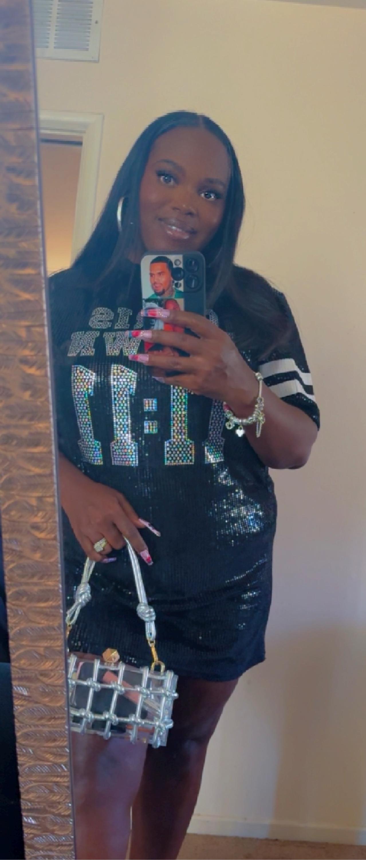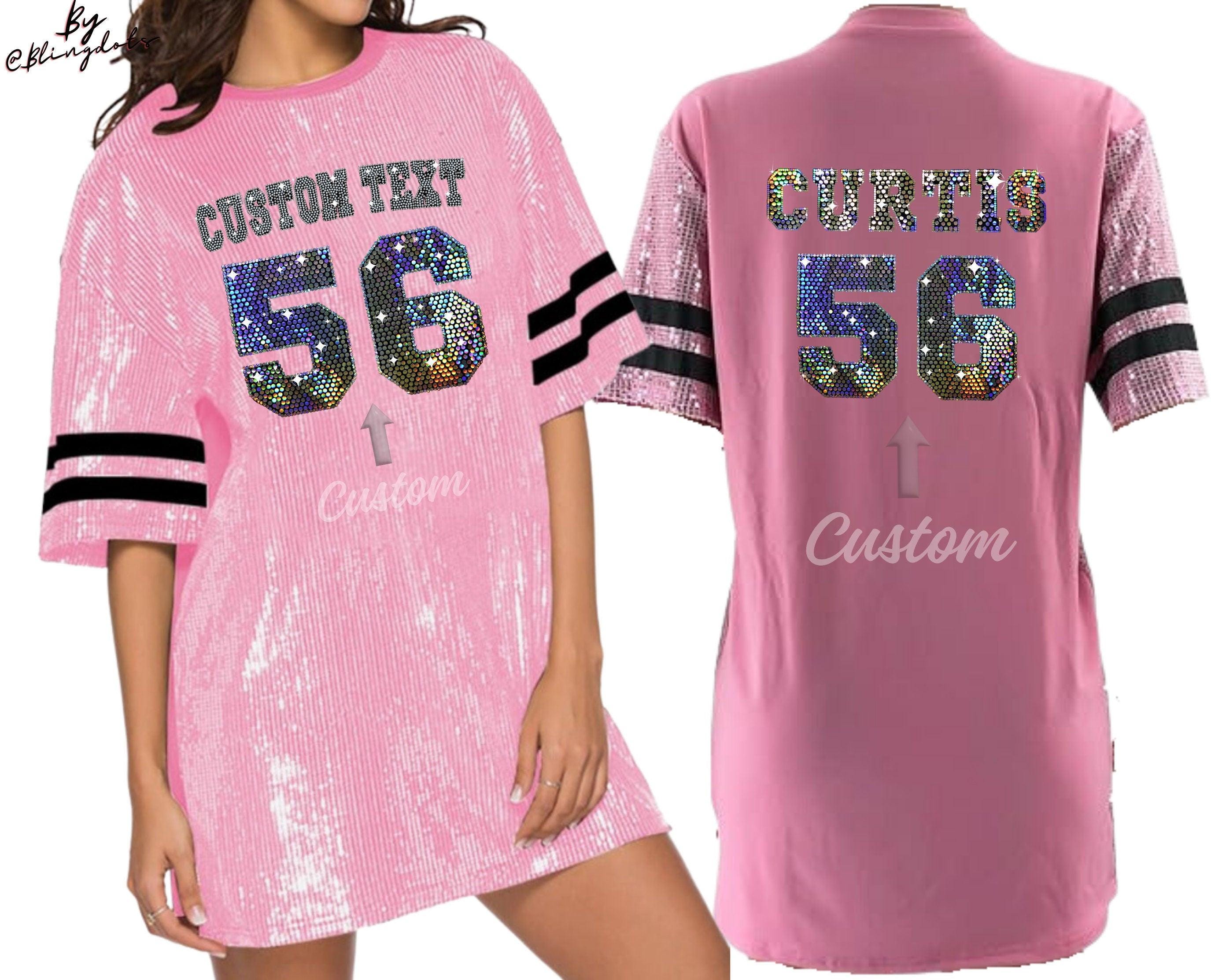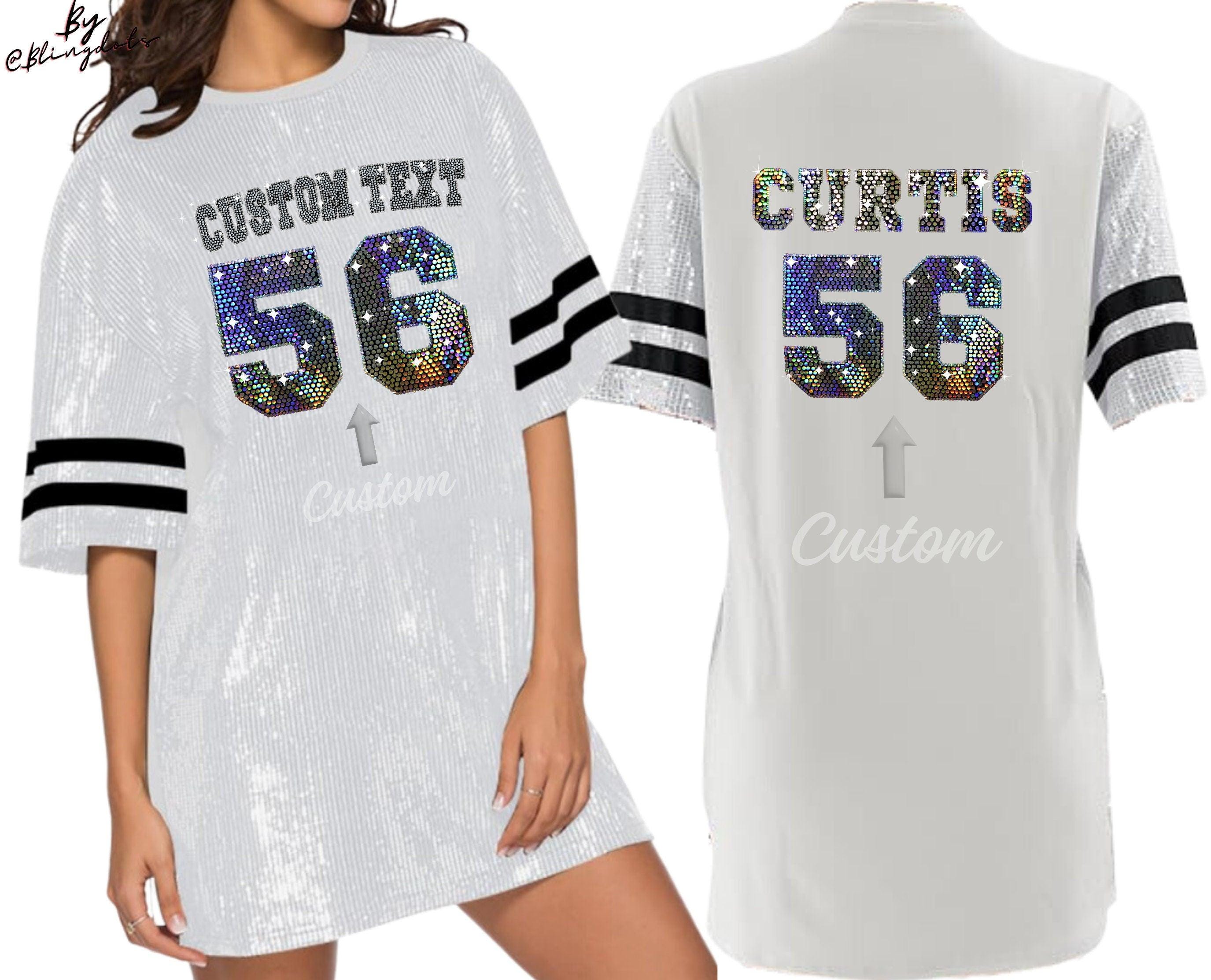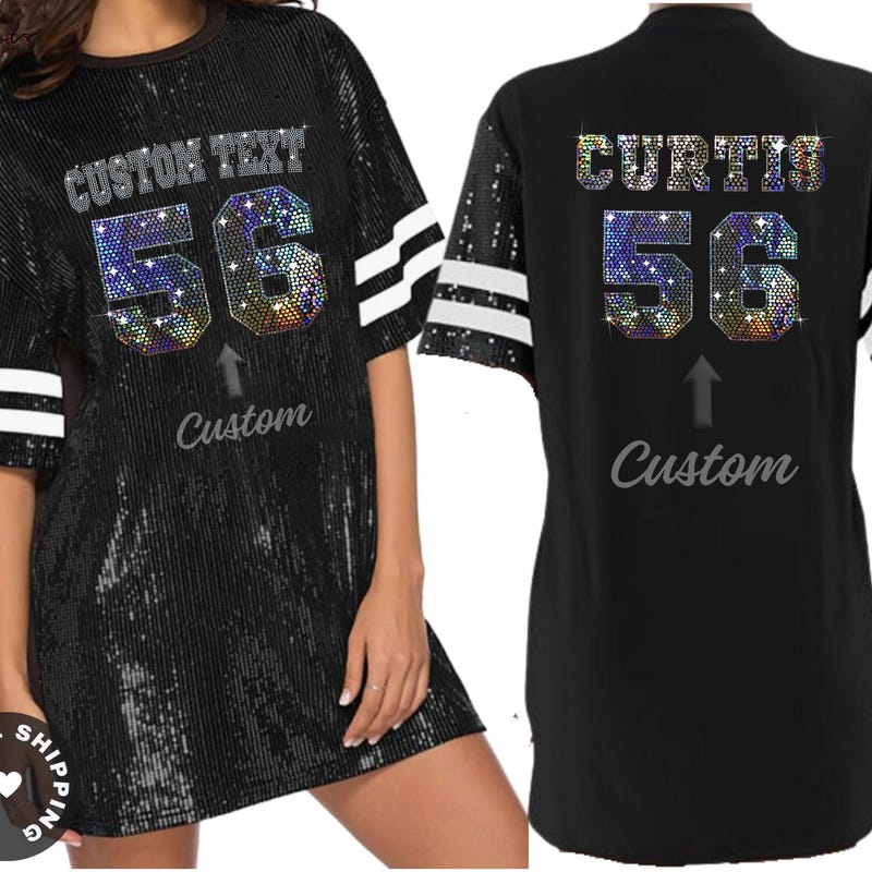 This is a versatile and comfortable piece that can be worn as a t-shirt or dress. It has sequins on the front and solid color on the back, short sleeves, and is both stretchy and breathable. It is suitable for various occasions, such as parties, concerts, clubs, casual wear, college spirit days, game days, etc. It can be paired with high heels, sneakers, scarves, coats, and cardigans, suitable for all seasons. Check the size chart for best fit