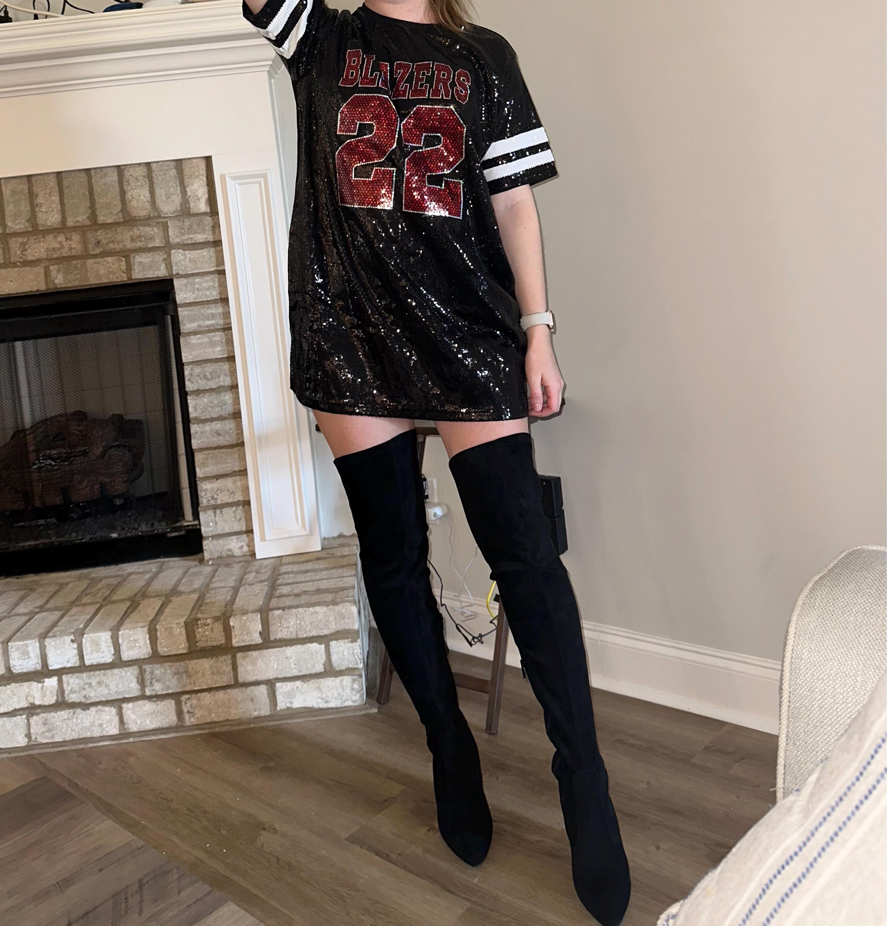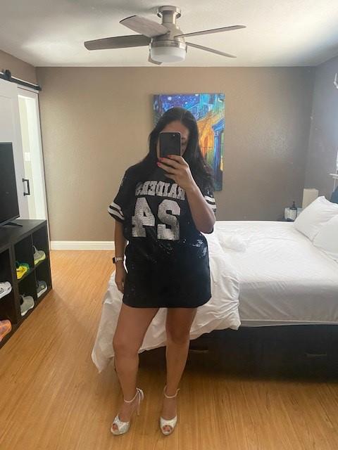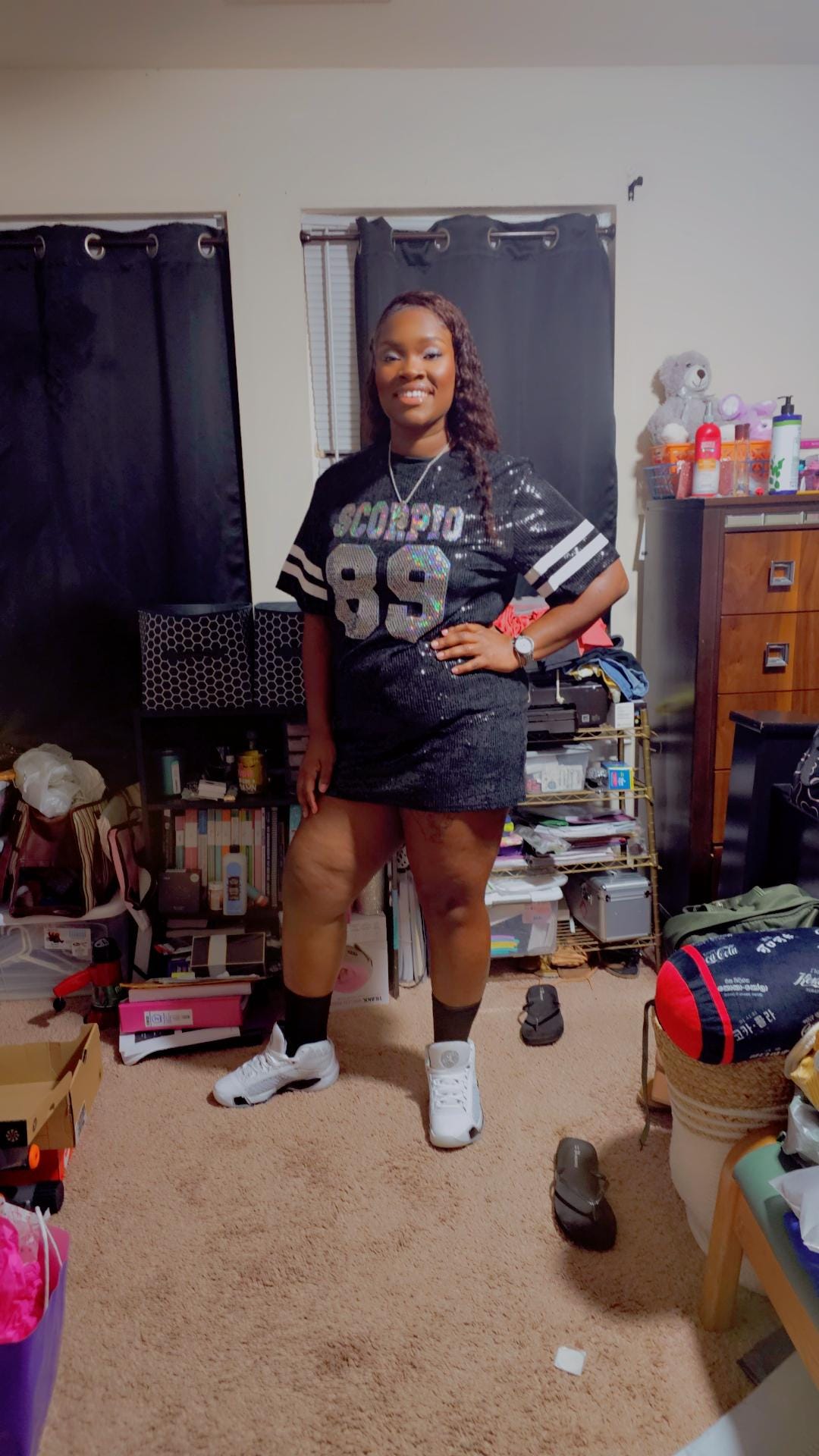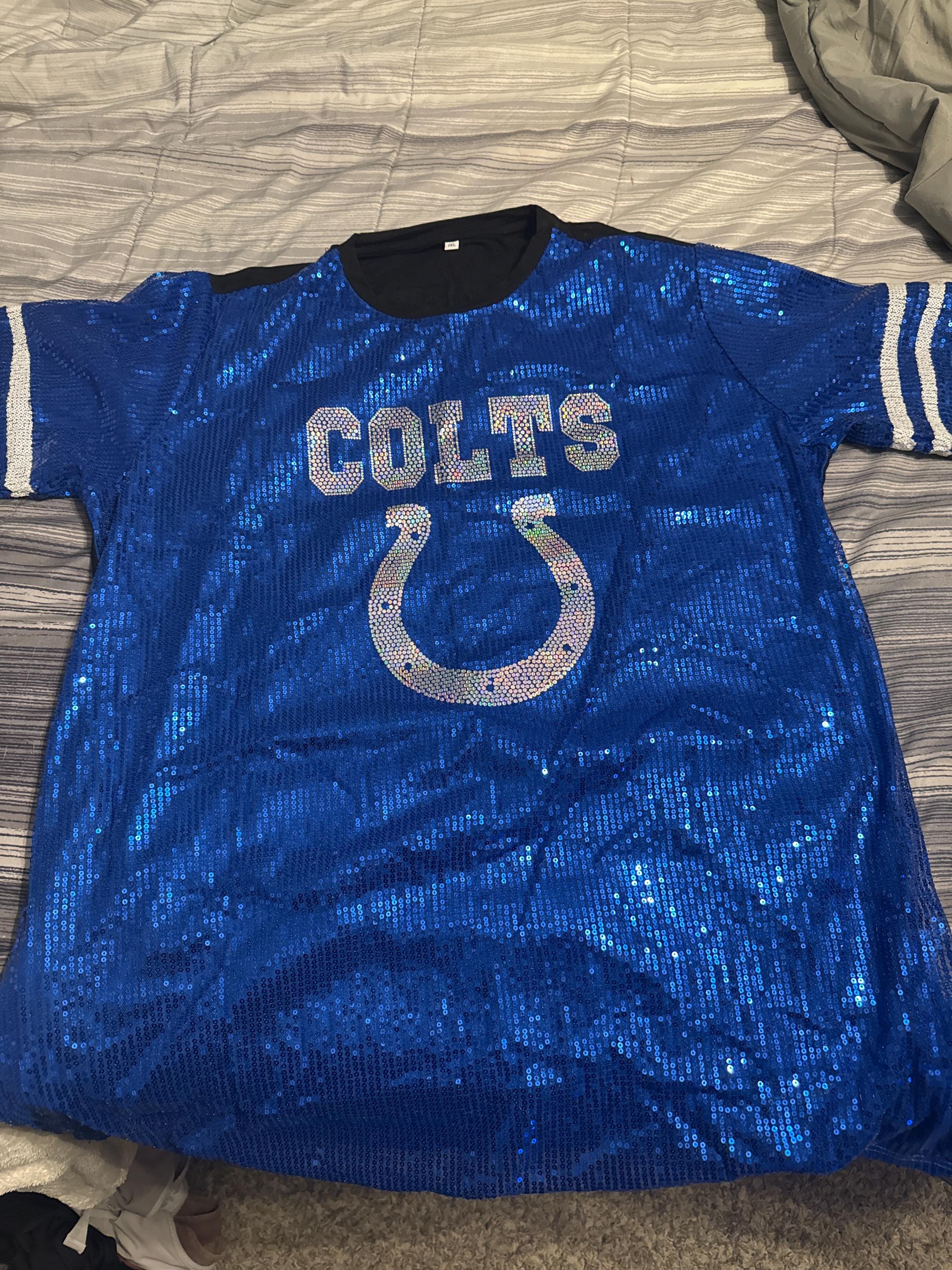 This is a versatile and comfortable piece that can be worn as a t-shirt or dress. It has sequins on the front and solid color on the back, short sleeves, and is both stretchy and breathable. It is suitable for various occasions, such as parties, concerts, clubs, casual wear, college spirit days, game days, etc. It can be paired with high heels, sneakers, scarves, coats, and cardigans, suitable for all seasons. Check the size chart for best fit