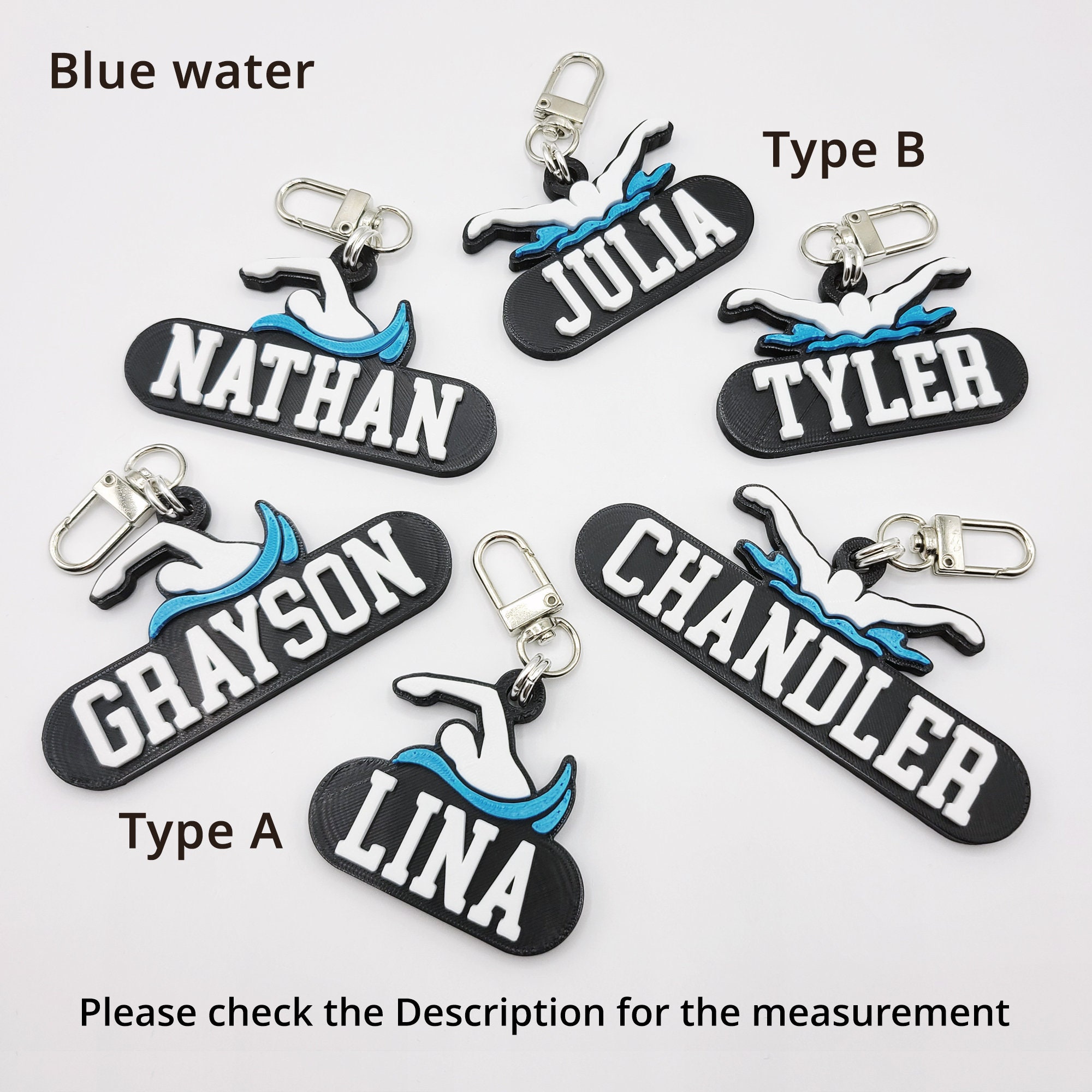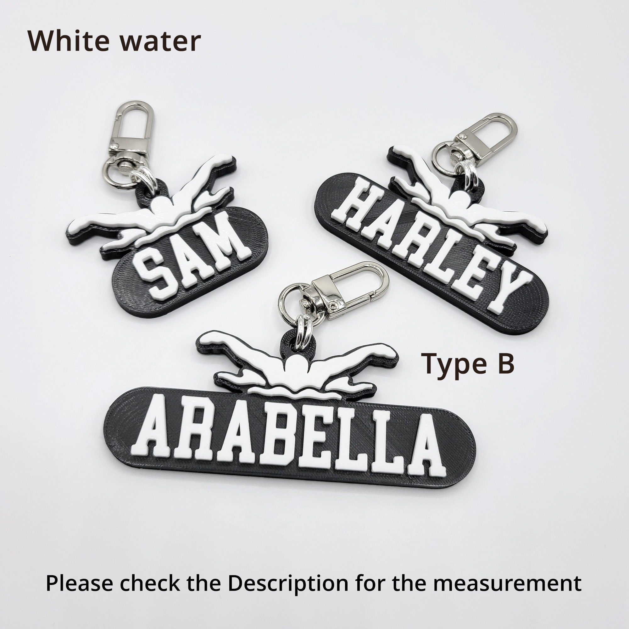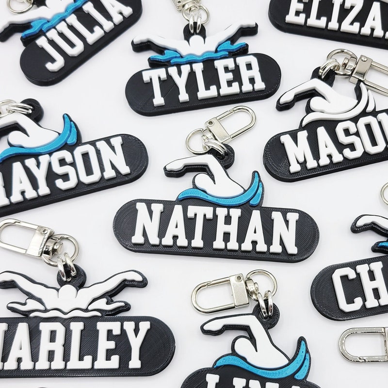 Perfect gifts for swimming lovers and fans! -Personalized Name: Max 10 characters, UPPERCASE ONLY, No special characters -made of hard plastic (PLA filament)