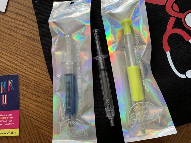 These super fun Syringe Pens and Highlighters have bright colors and a lot of attitude. These are perfect for doctors, nurses, and mad scientists! Makes a great gift or a countertop accessory at your call station!