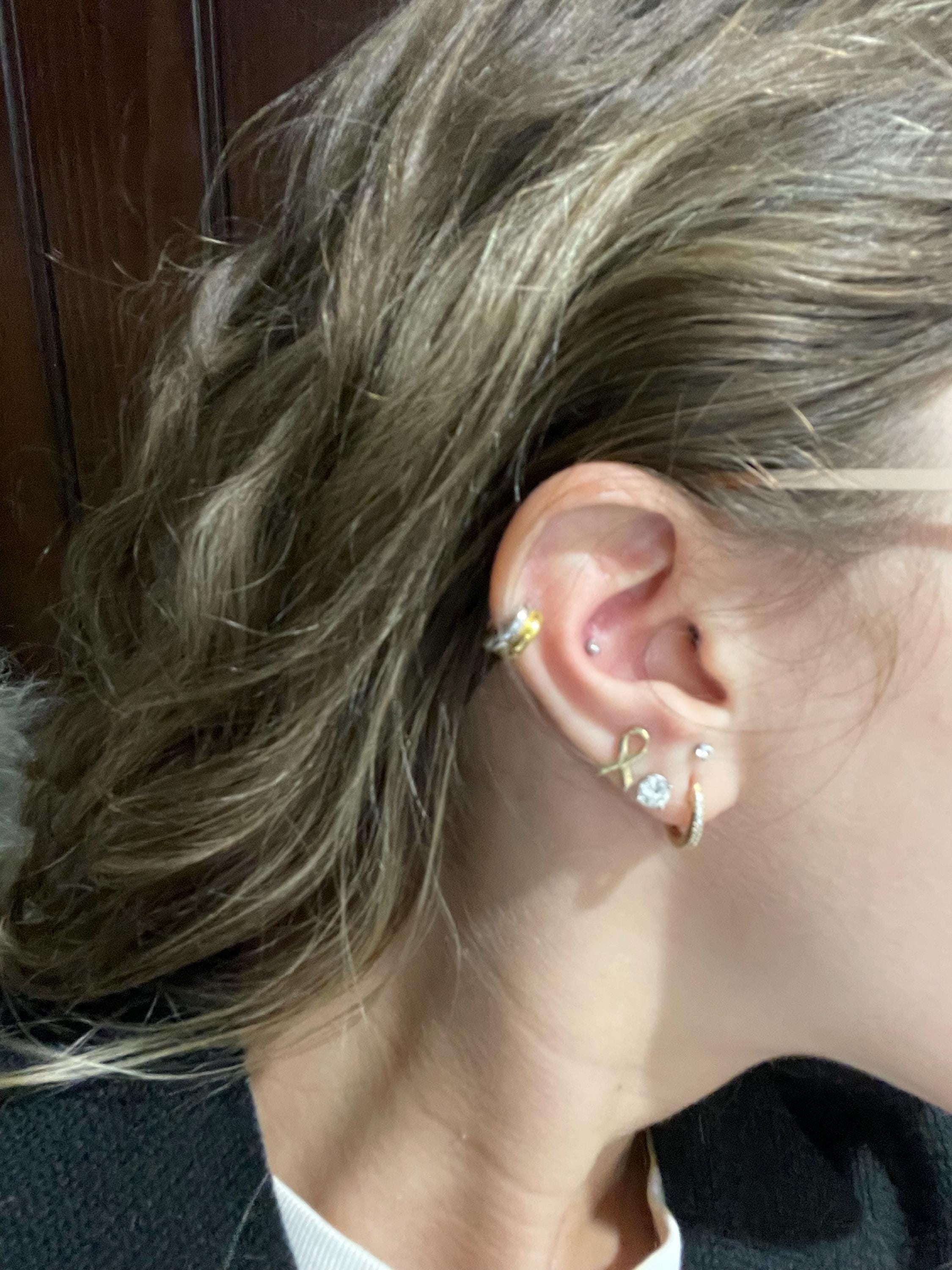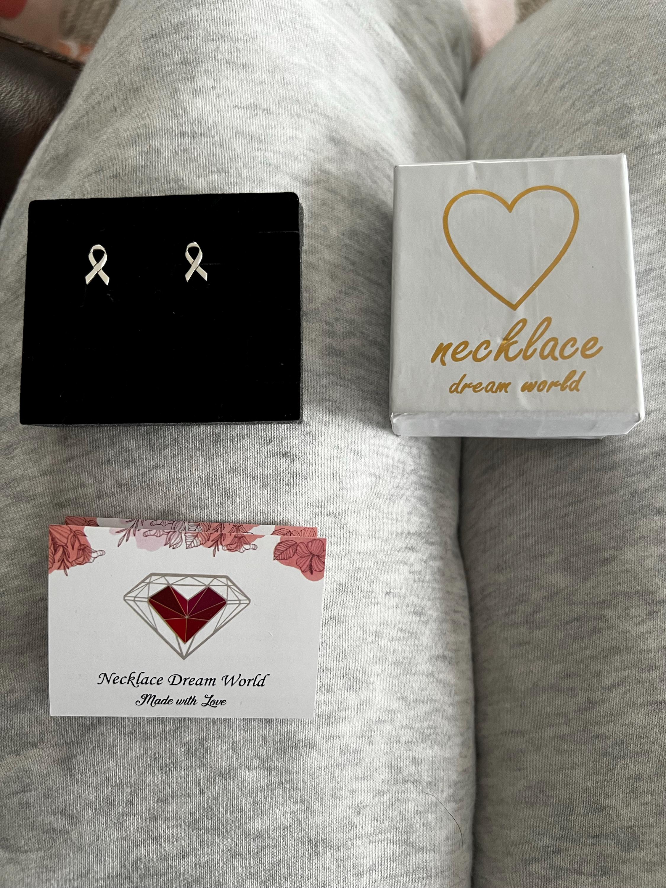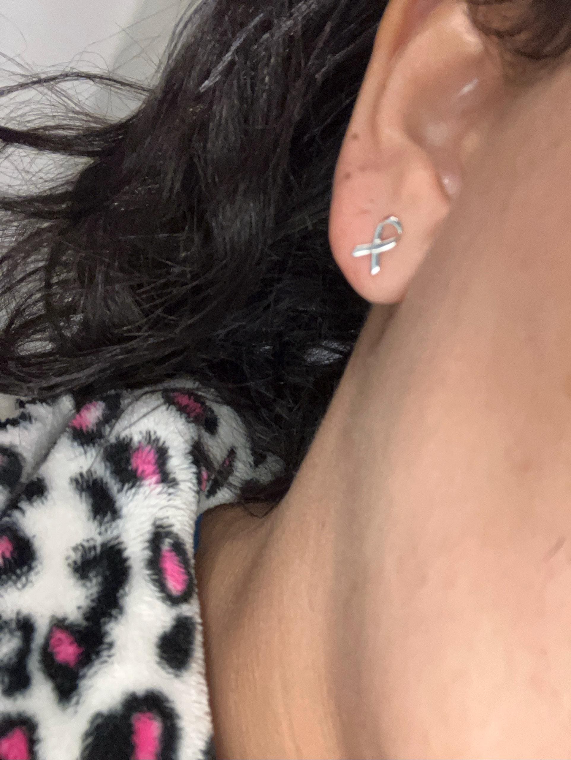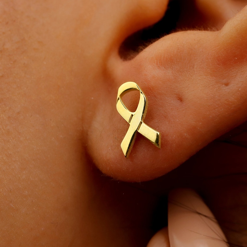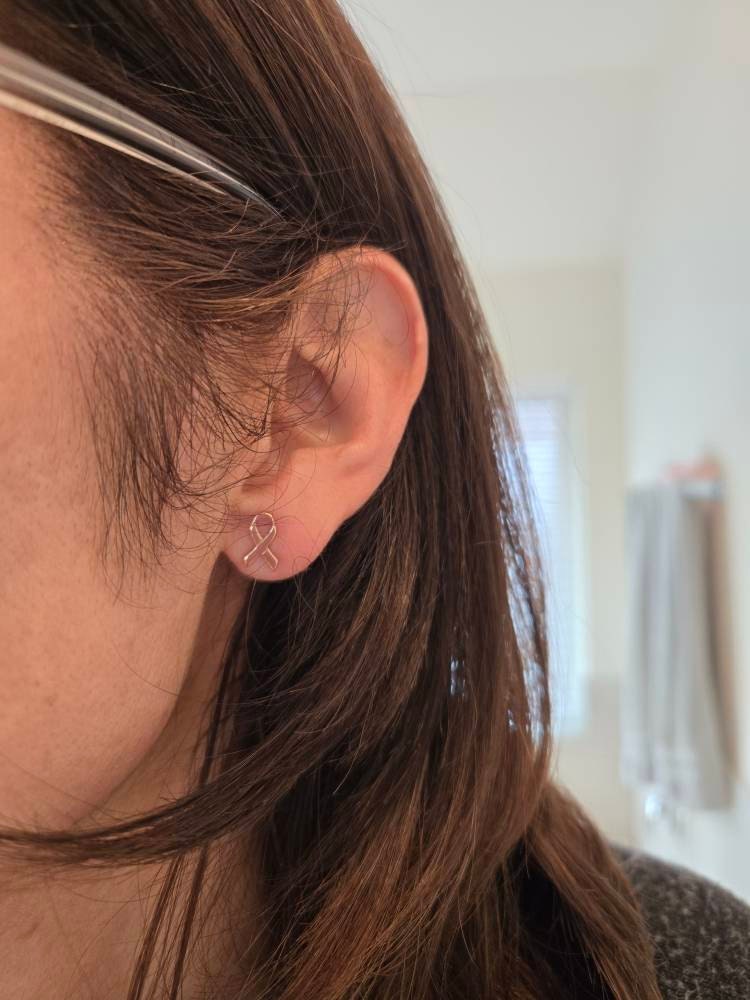 Micro ribbon stud earrings, crafted in sterling silver, 14K gold, and rose gold, raise breast cancer awareness. • A gift for cancer survivors and strong women. • A unique piece of jewelry for you and your loved ones ♥