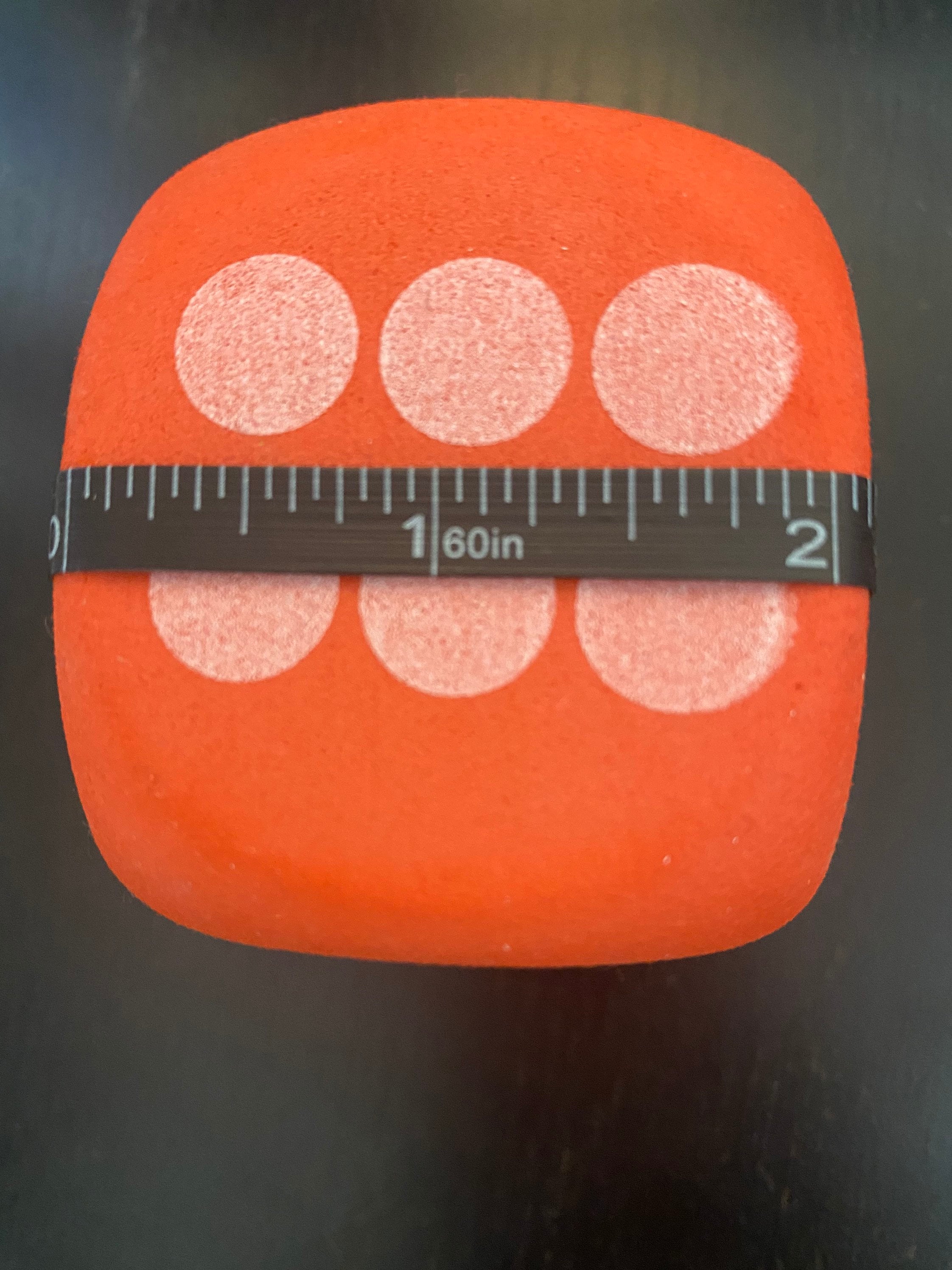 Six child-size 2" x 2" foam dice (color and shape may vary)