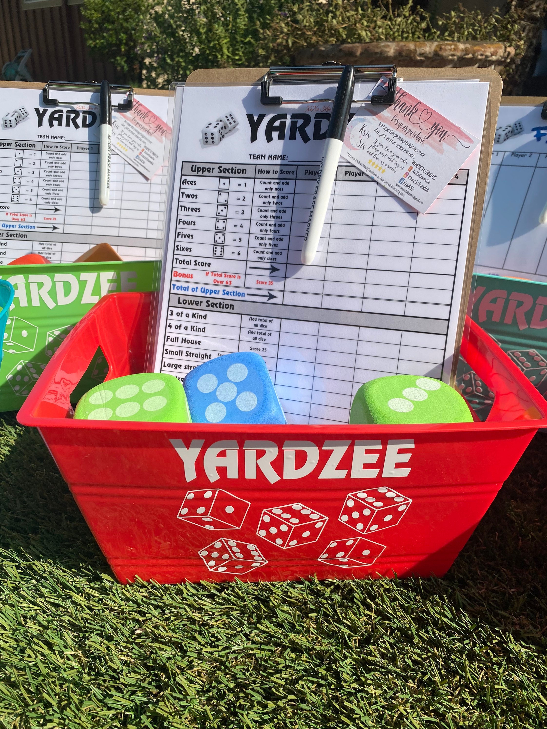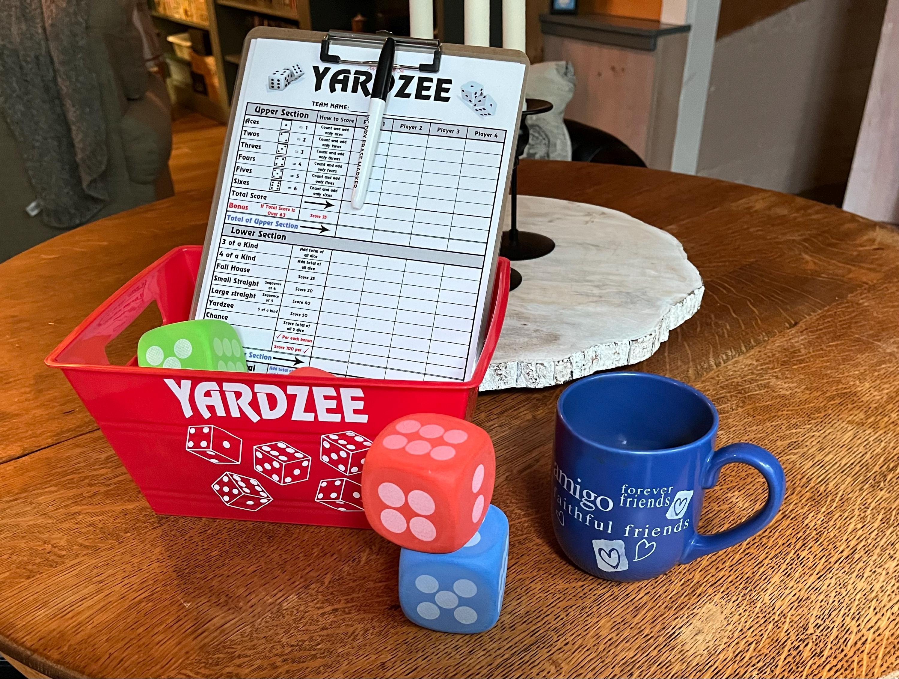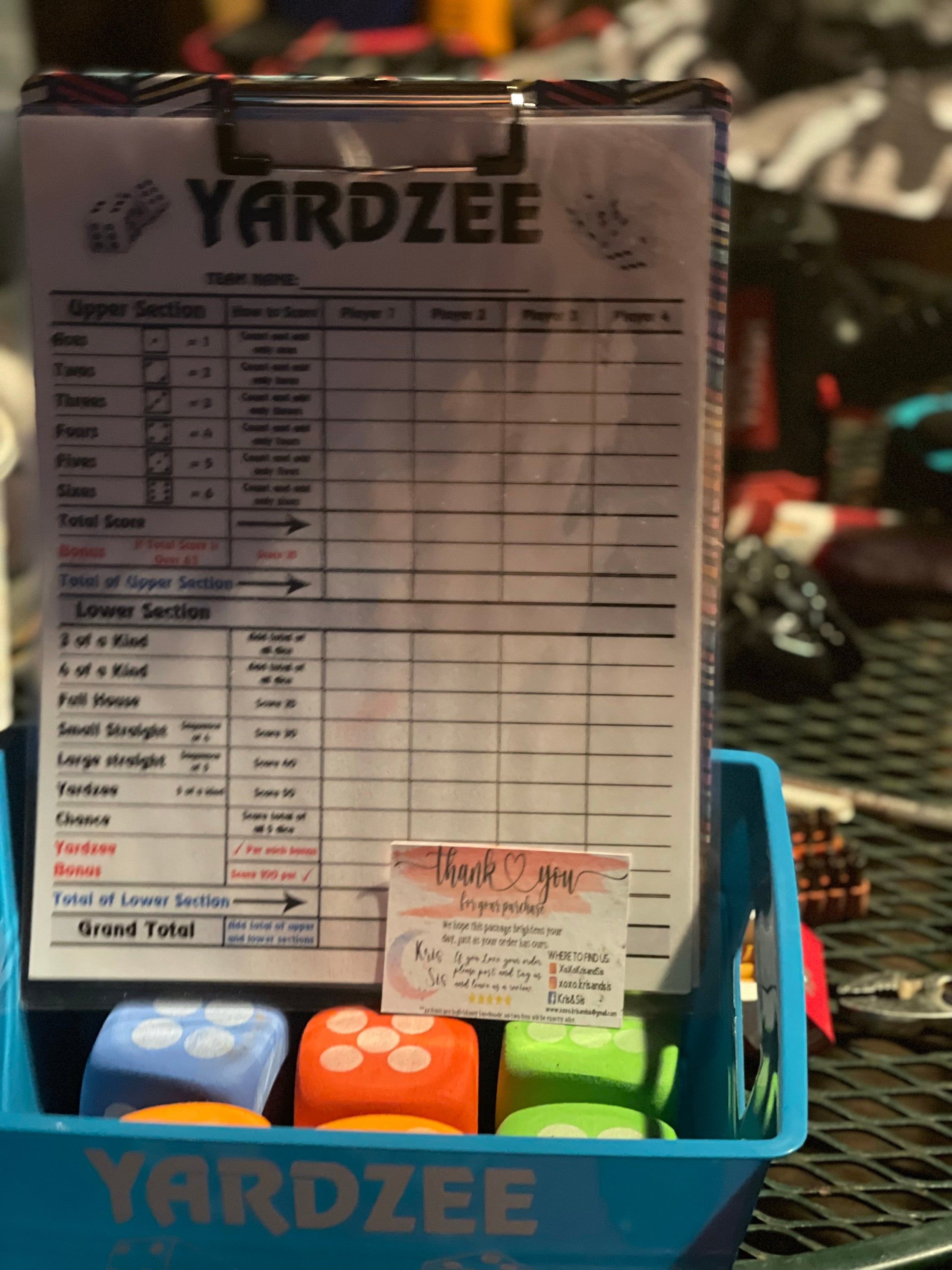 Reusable Yardzee laminated scorecard and rules, plus bonus Farkle rules and scorecard